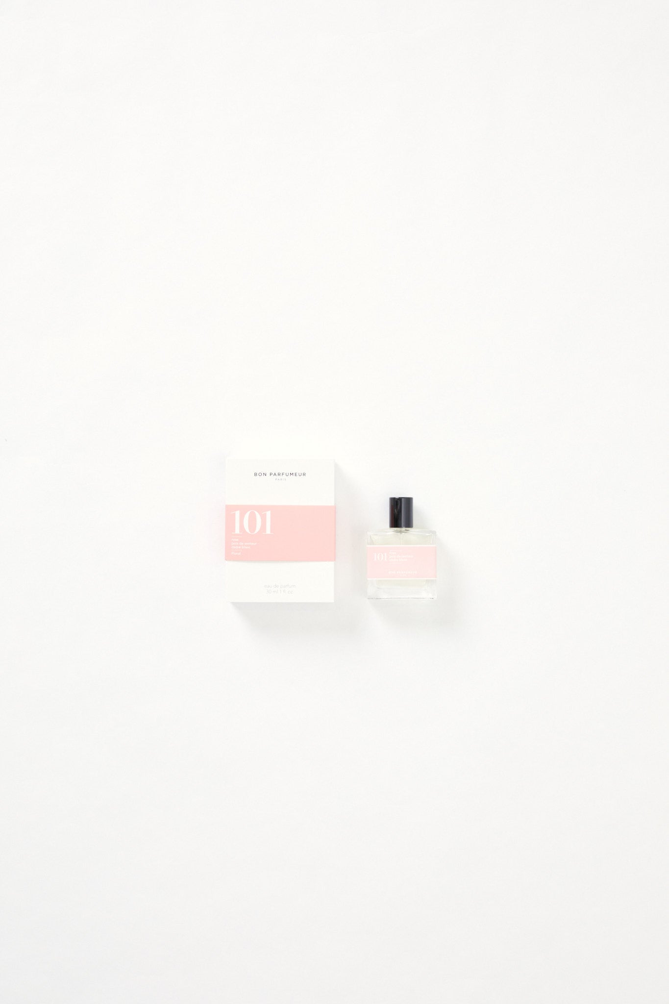 With Damask rose essence and absolute, this fragrance reveals fresh and floral notes. Bon Perfumeur's perfumer Alexandra Monet added green and spicy cardamom to the top notes. In the heart notes, rose is enveloped in a sweet pea accord and delicate lily of the valley to accentuate the floral touch. Musk and white cedar lend a very powdery, cottony softness to the base notes, while patchouli gives 101 definite character.