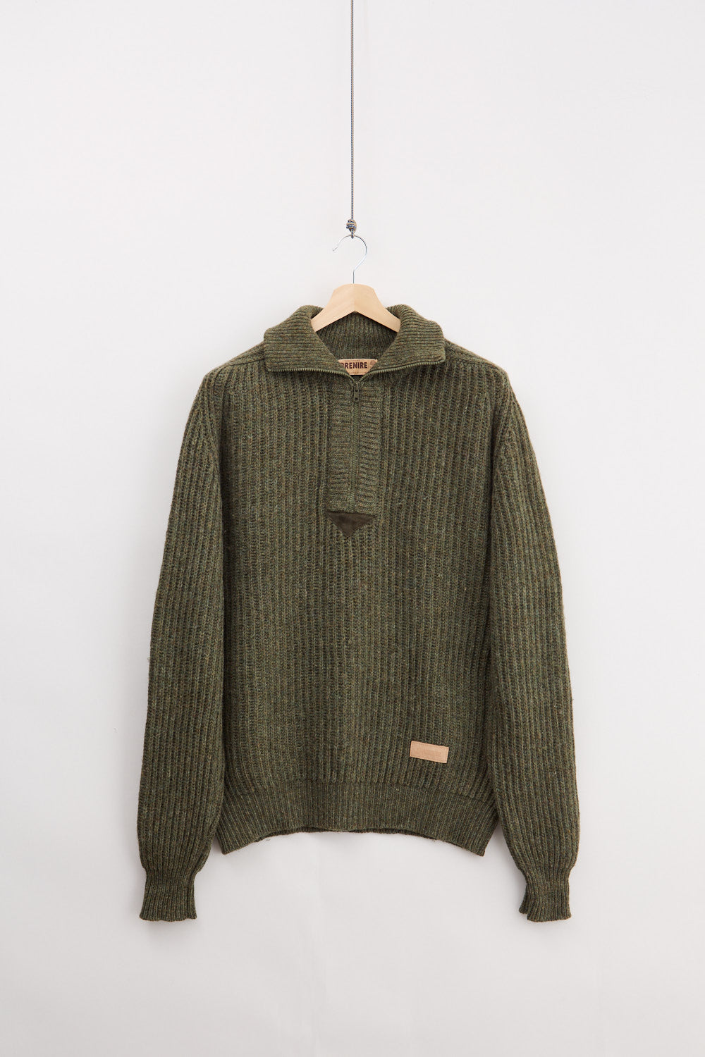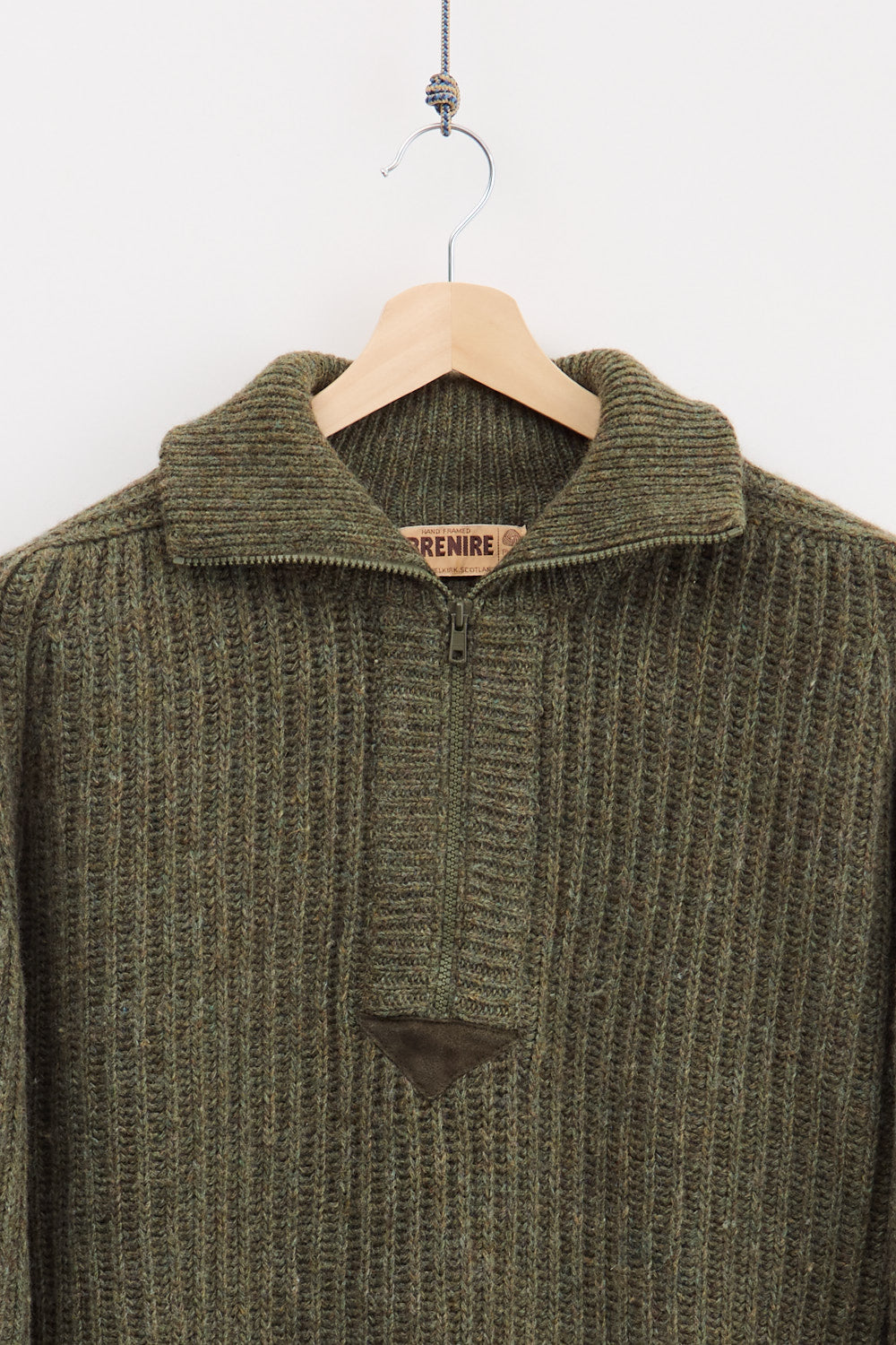 100% Wool. Made by Brenire, a small family-owned company in Selkirk, Scotland, where the sweater is also produced