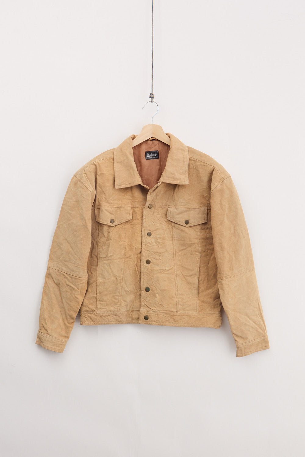 Made by Woodpecker. Light shoulderpads. Features inside pockets. With it being a leather product, it features some marks that gets into the leather from usage.