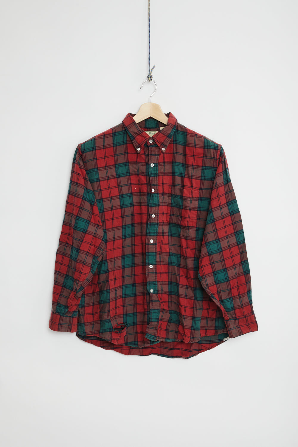 Great vintage flannel shirt from legendary outdoors brand L.L. Bean. Worn down to a super soft handfeel, and perfectly faded from decades of wear. Still in great shape, except for a rip close to the bottom hem where the shirt has been tucked by the original owner. We see it as a detail that just adds to the character of the shirt. Size L