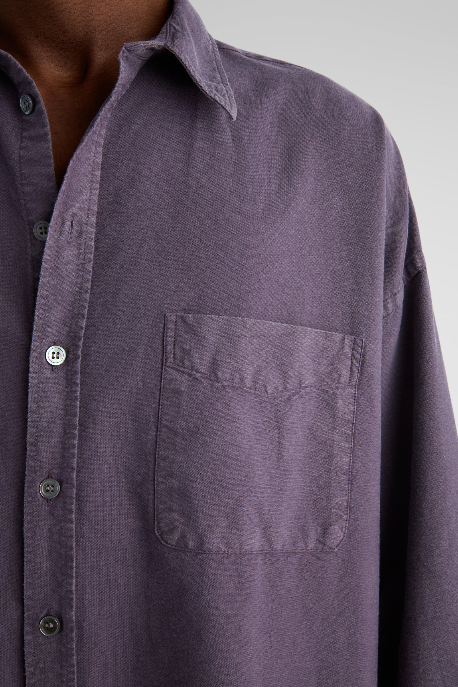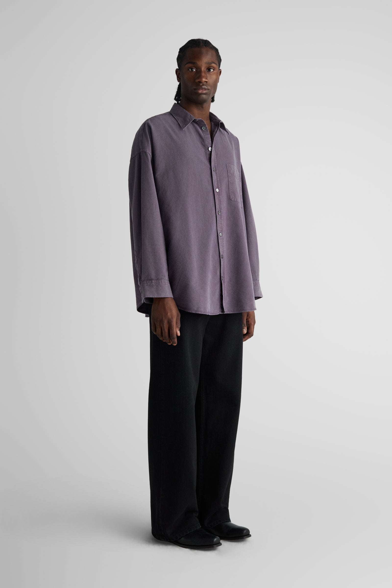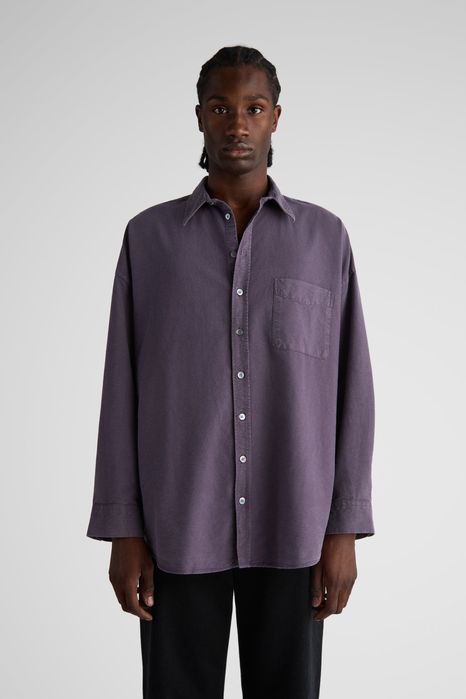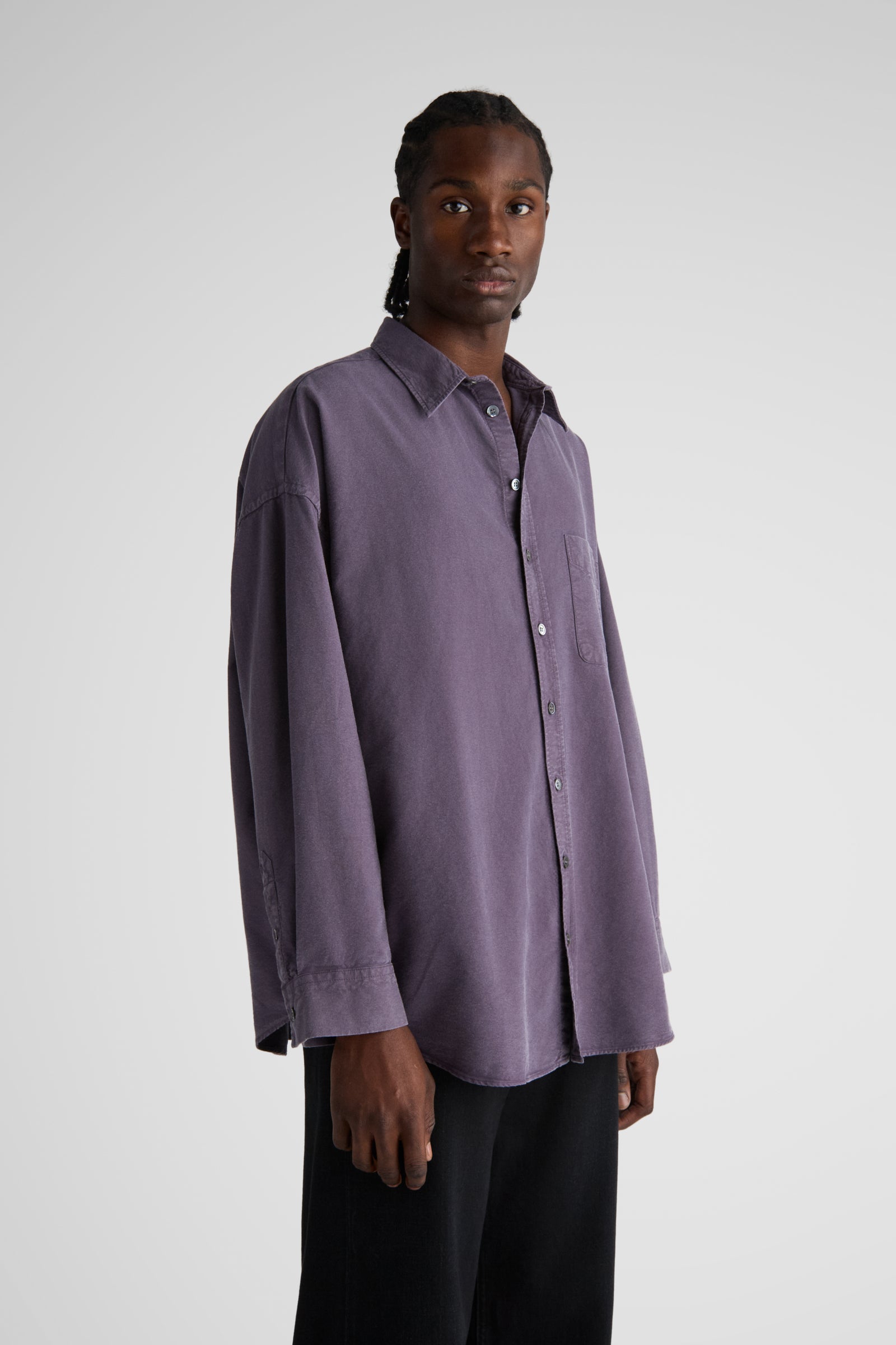Aiden, our unisex big shirt. A super oversized shirt, featuring very dropped shoulders, very wide body and long curved hems. The wider sleeves gather nicely at the cuffs. Made in a solid heavy oxford cloth, woven by Somelos i Portugal exclusively for Livid.
