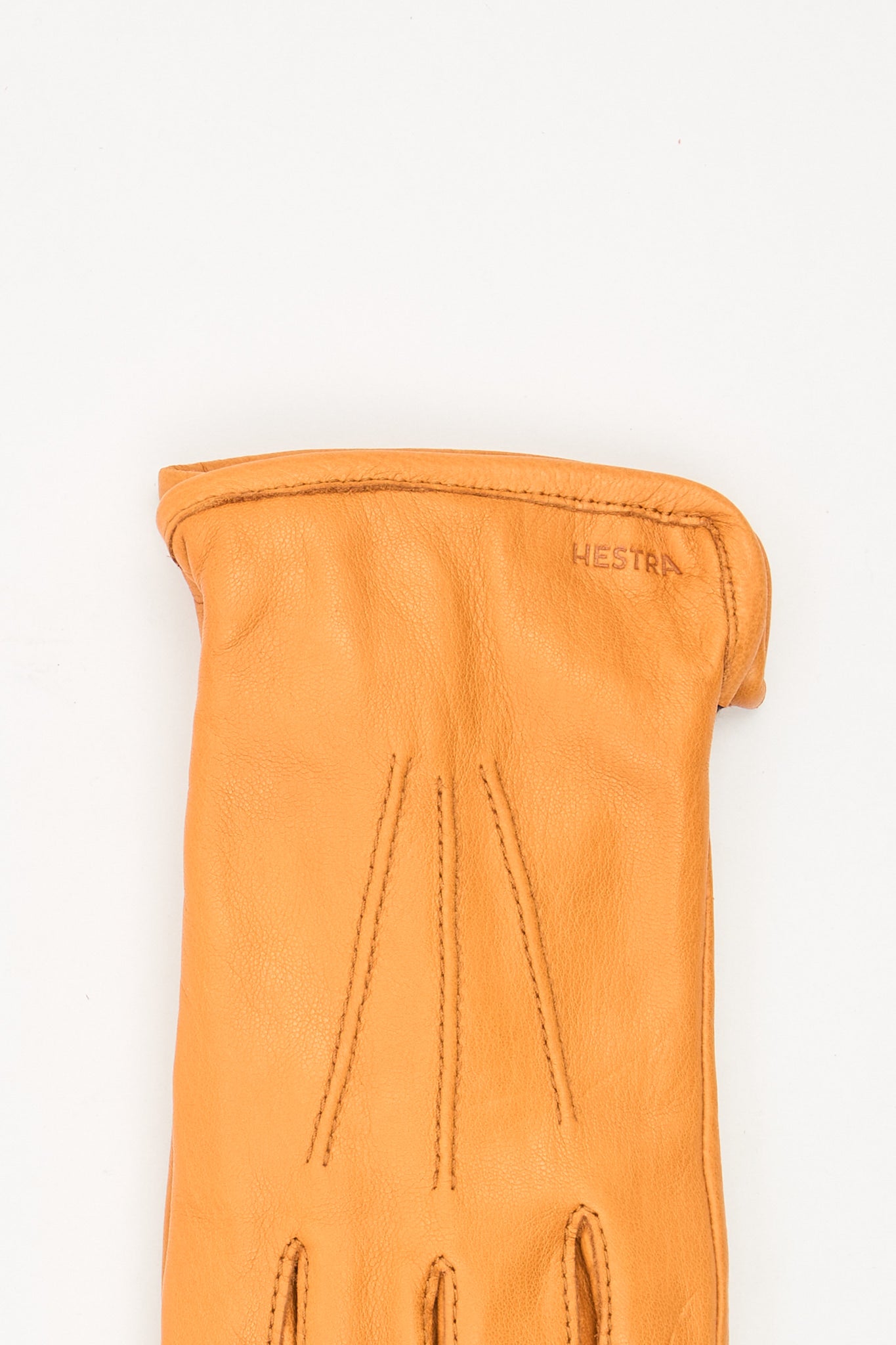 A warm, comfortable leather glove in a timeless men’s design. Cut from one piece of deerskin, a supple, insulating leather with a beautiful grain.