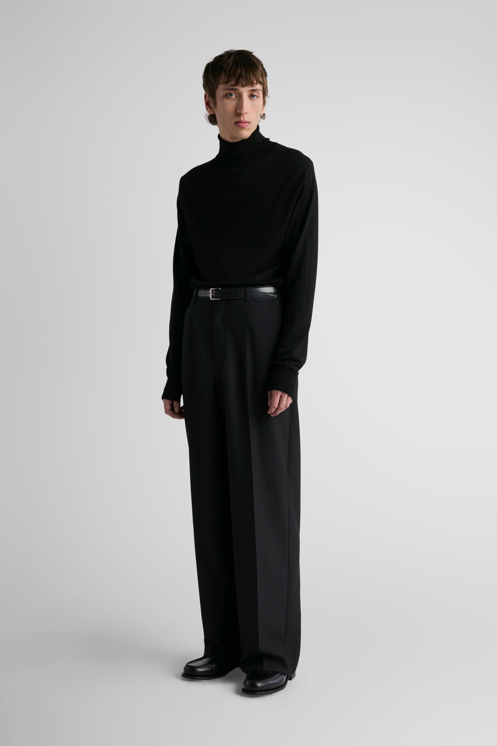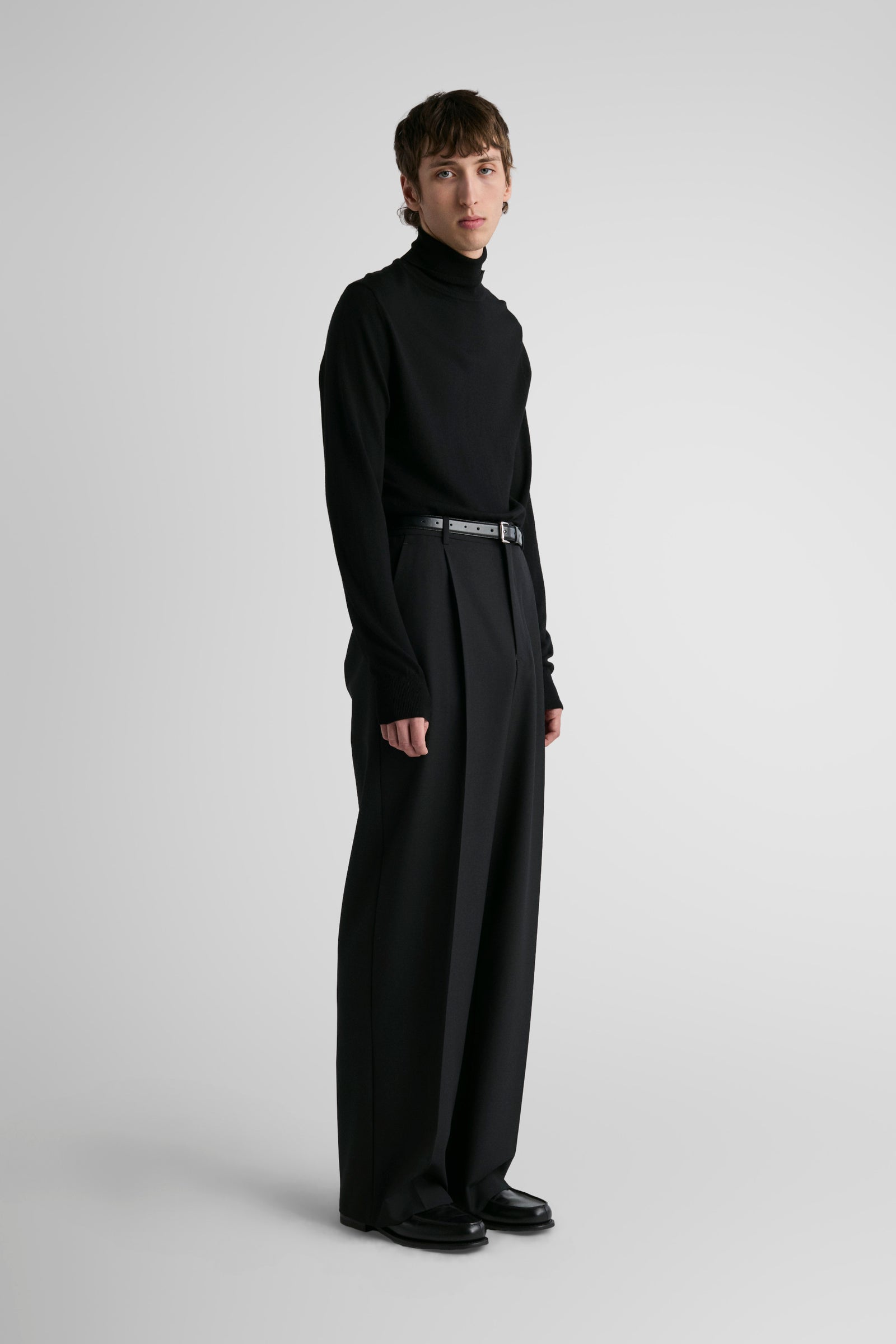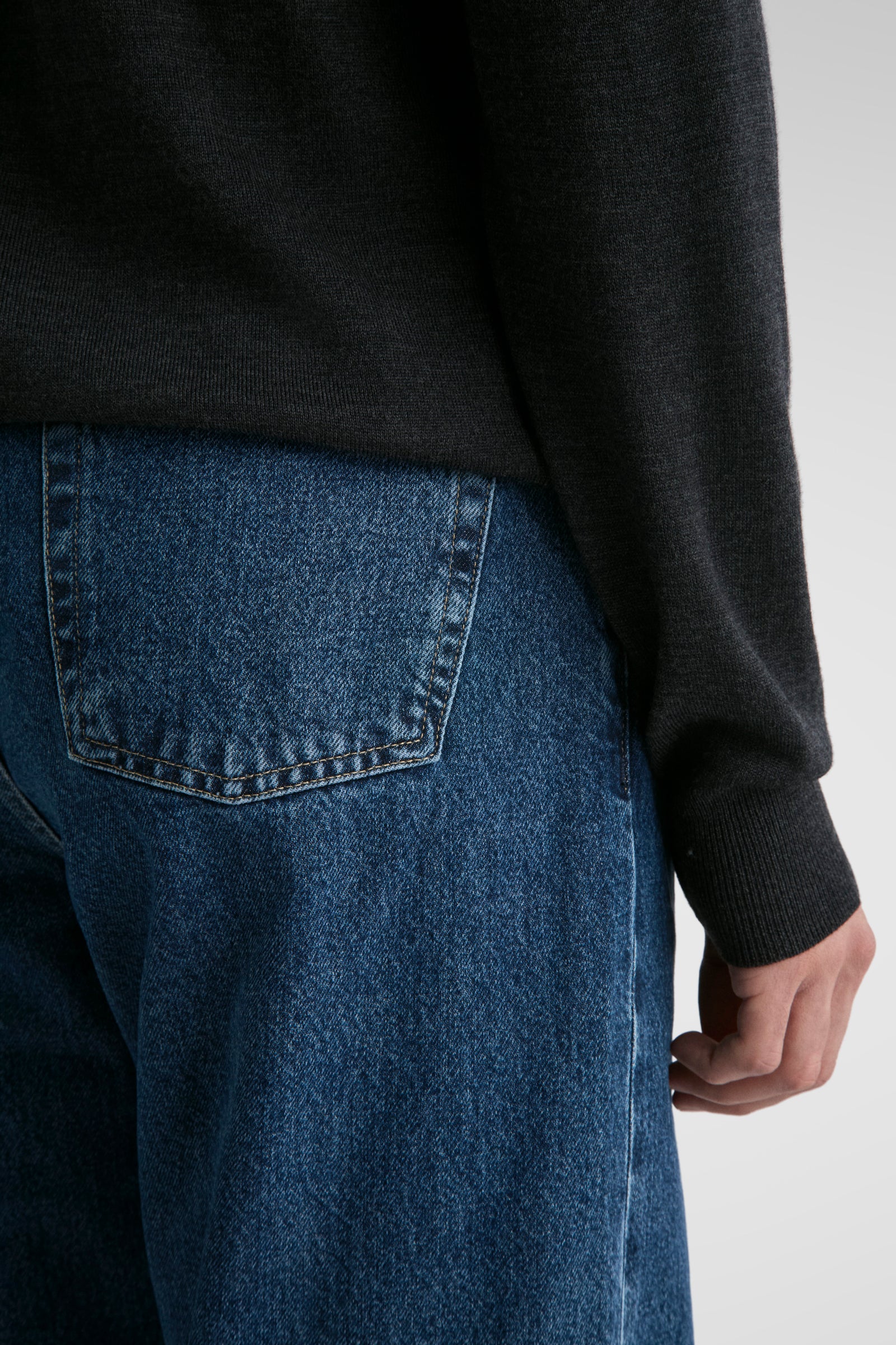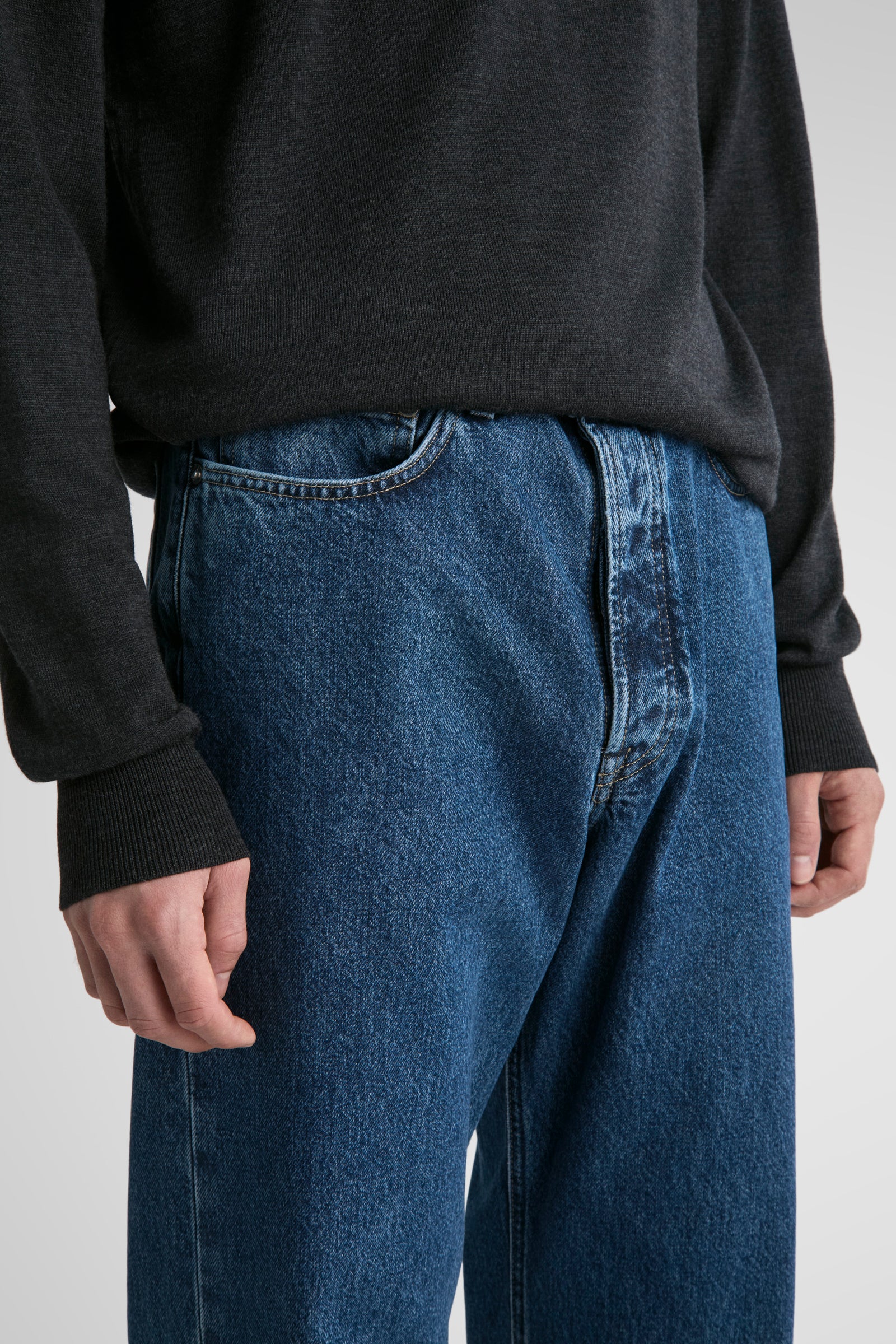 Our high-rise wide straight, Barnes. Built with a narrow waistband, a high front- and back rise, widely curved across the seat and wide from the thigh down ending in a wide leg opening of 24 cm in a 31” waist.