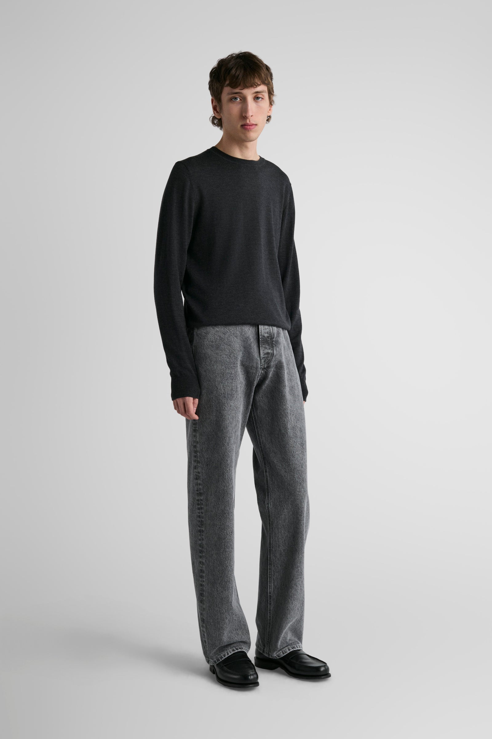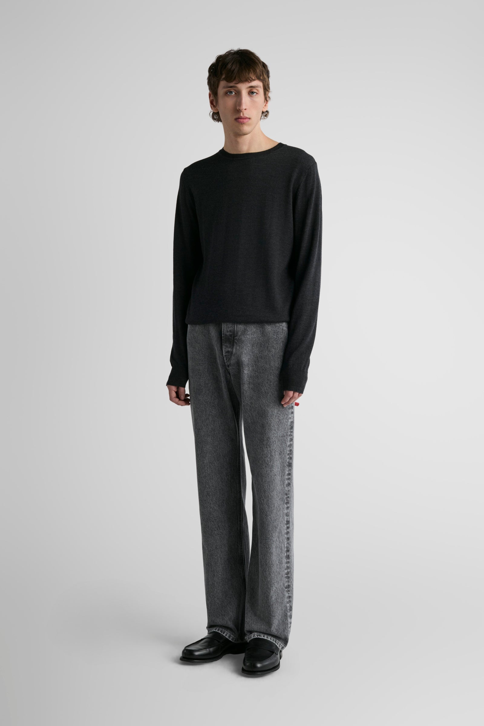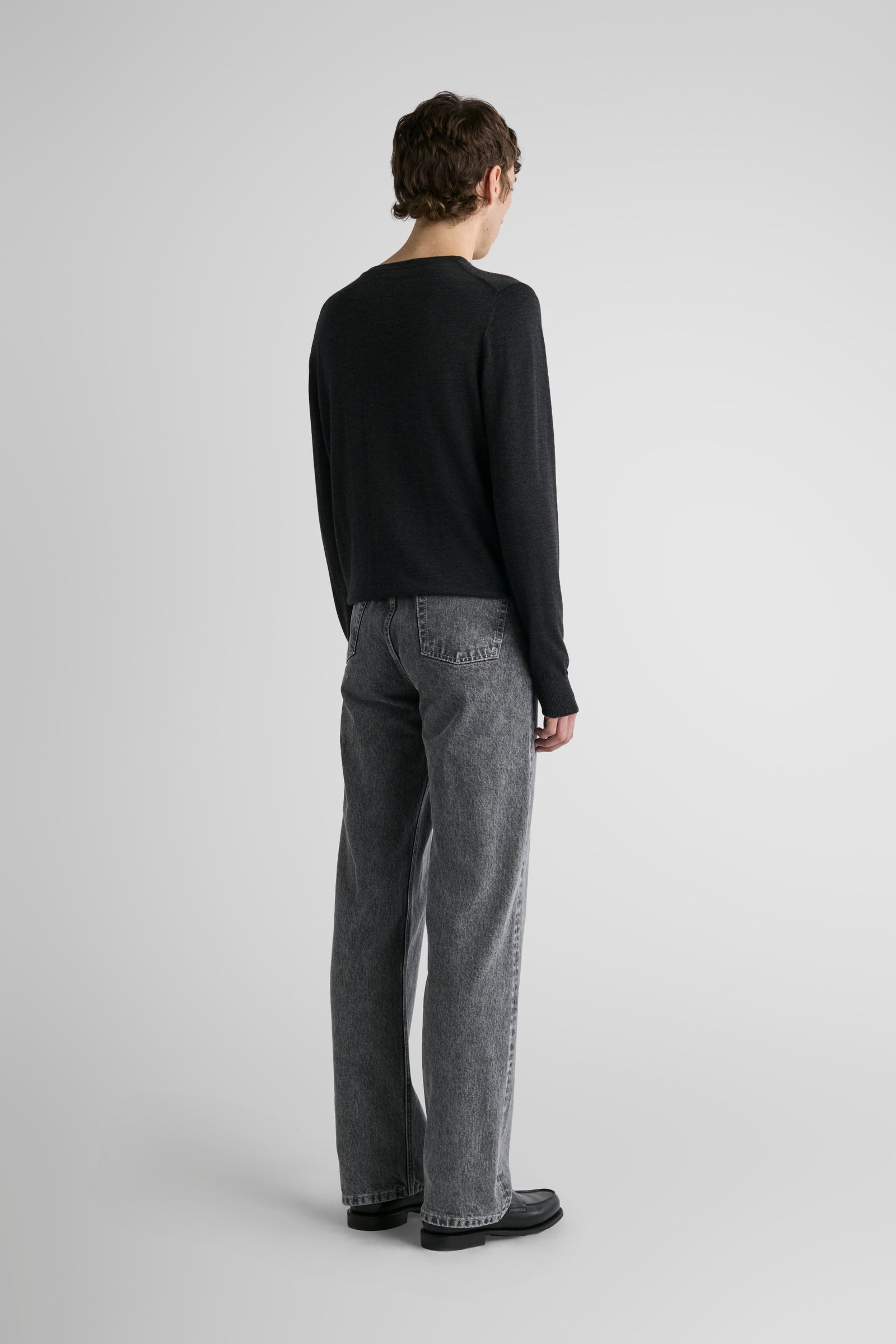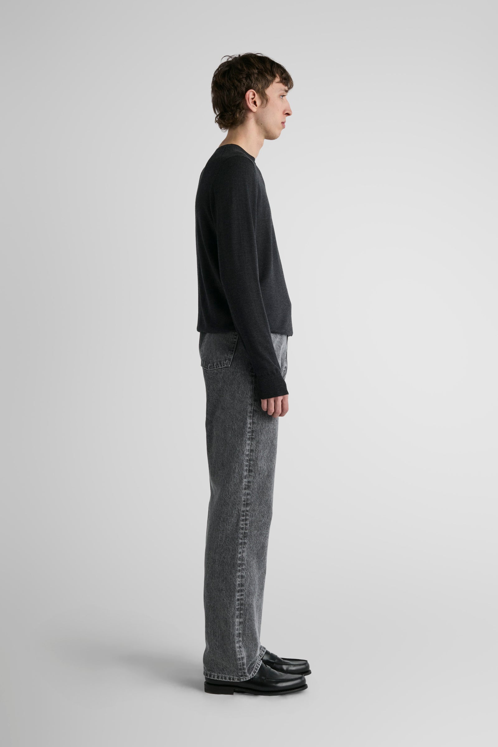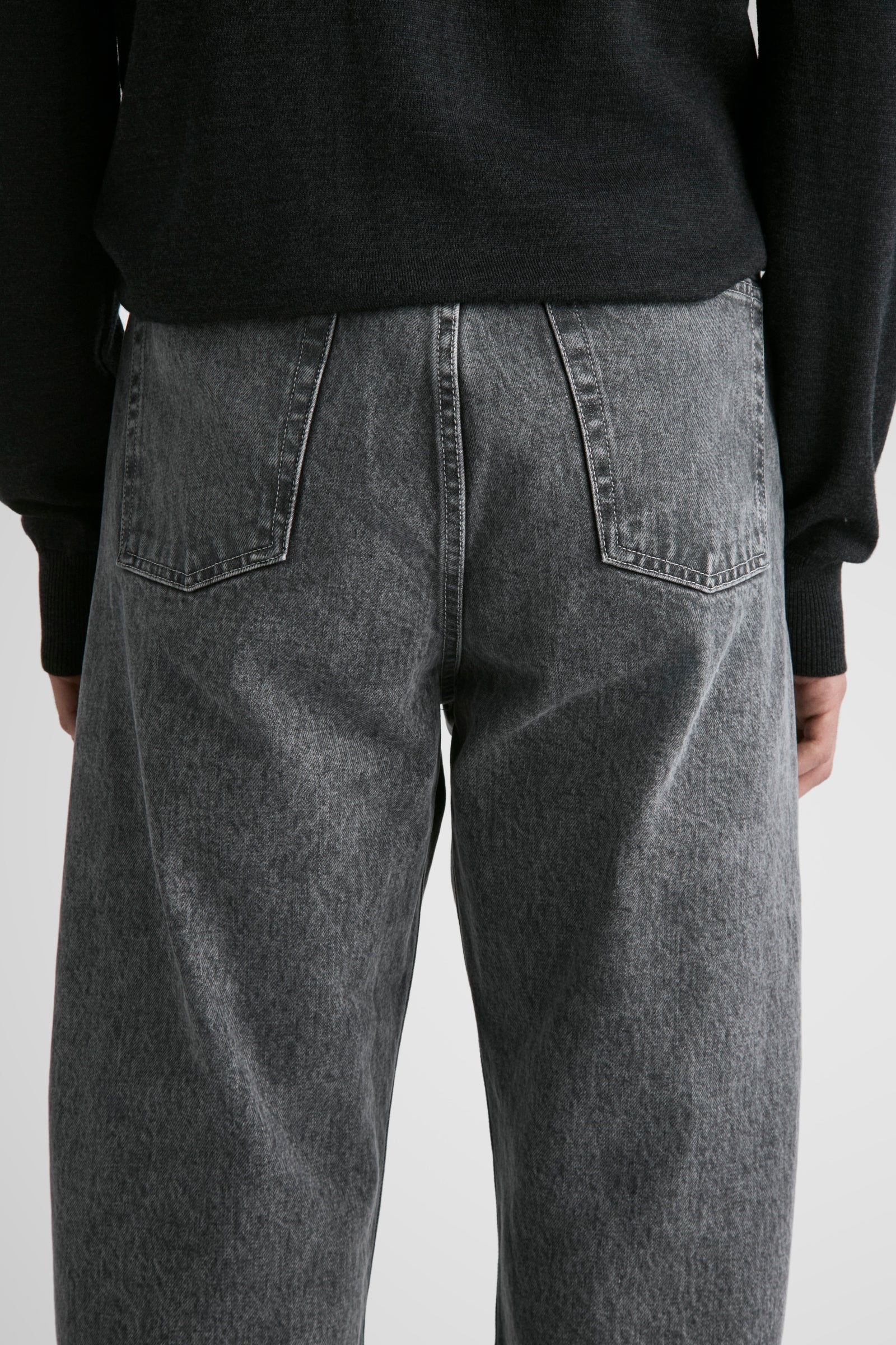 Our high-rise wide straight, Barnes. Built with a narrow waistband, a high front- and back rise, widely curved across the seat and wide from the thigh down ending in a wide leg opening of 24 cm in a 31” waist.