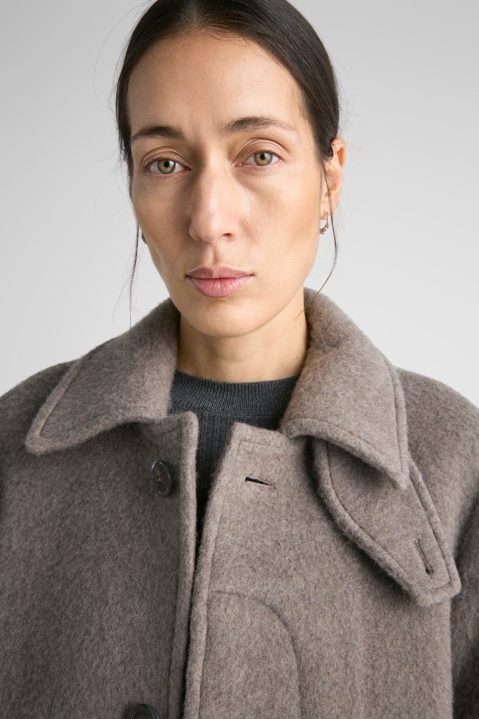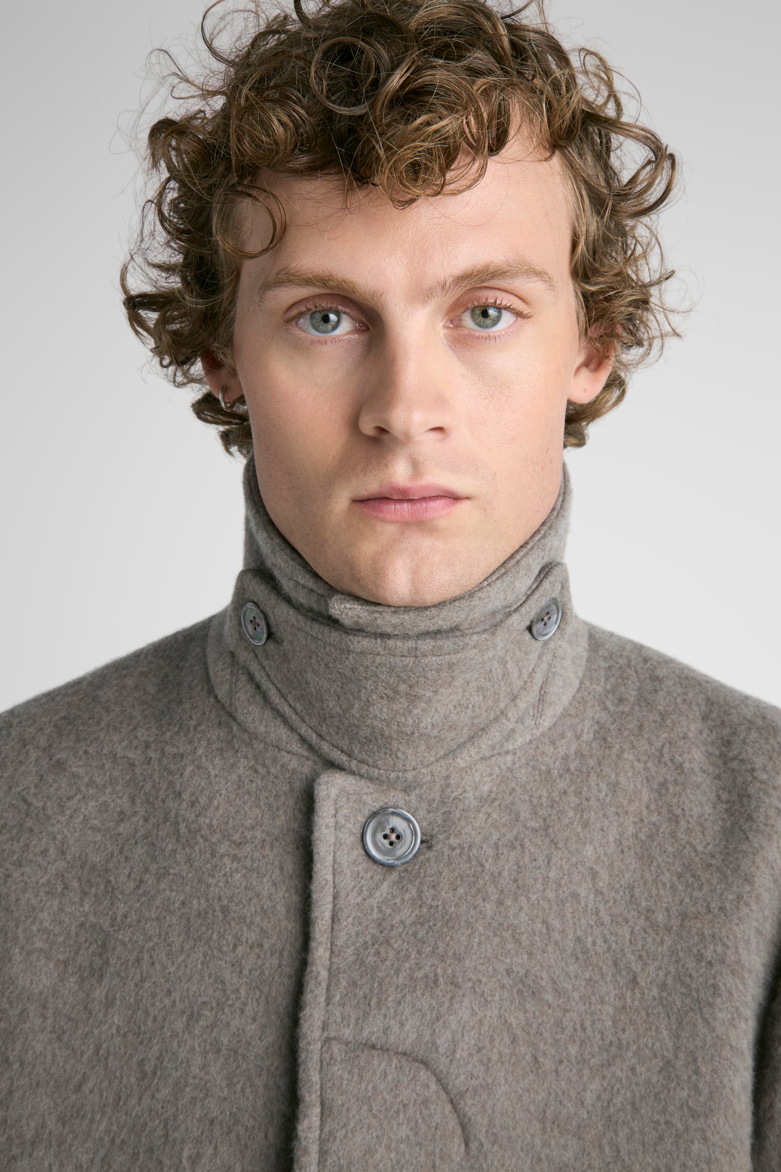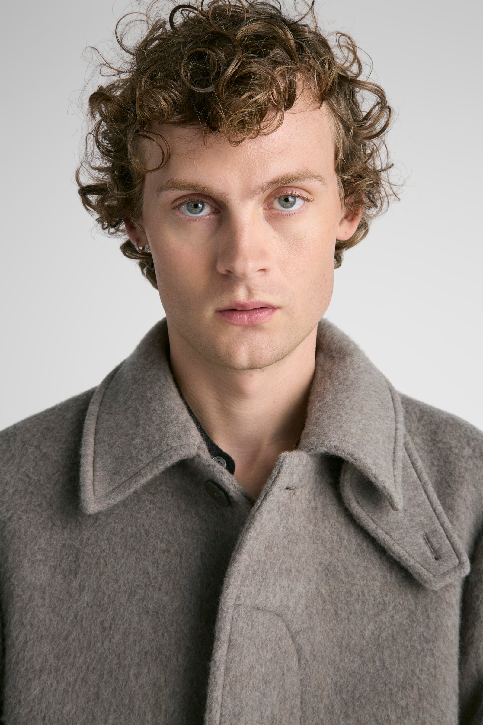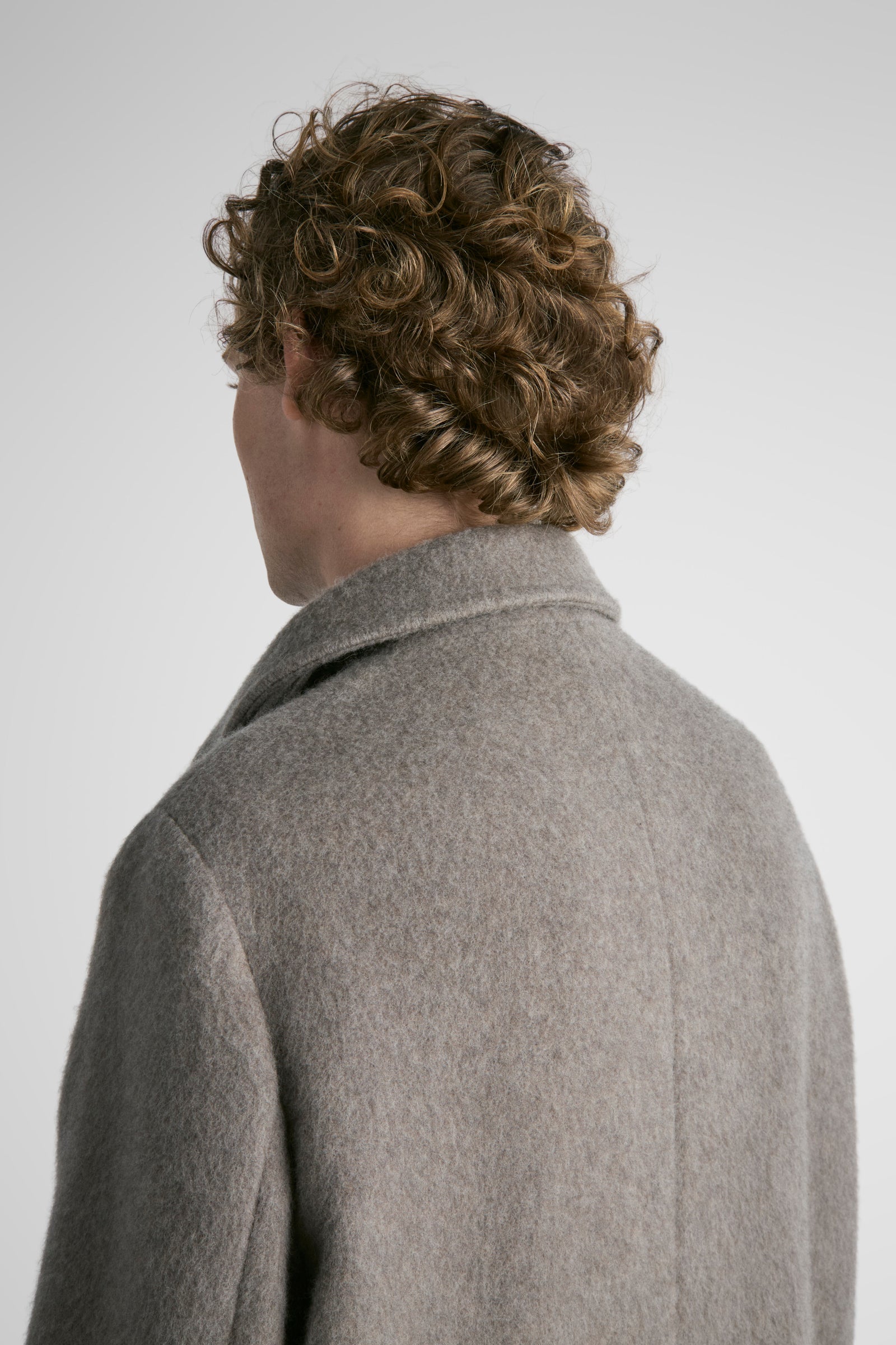 Made in an incredibly soft, brushed 100% recycled superfine wool fabric made by Manteco in Tuscany, Italy, resulting in a hefty, warm but still lightweight coat. Recycled superfine wool fibres are carded and spun with traditional methods, and the fabric is woven with a special construction that allows for the strong brushing process creating the long hair finish.