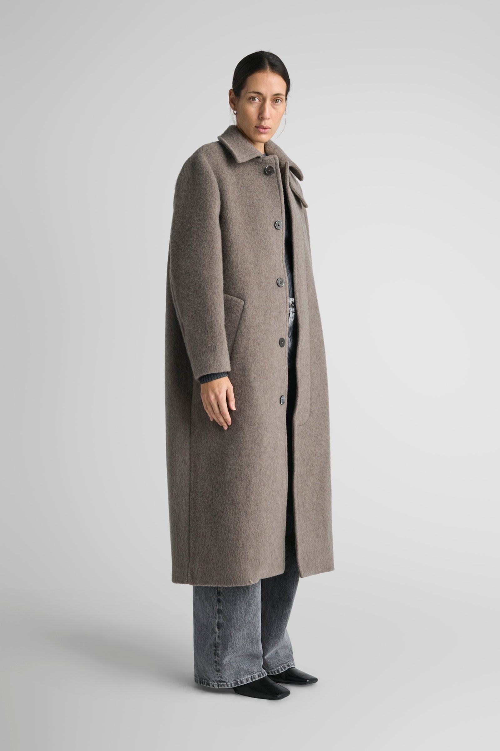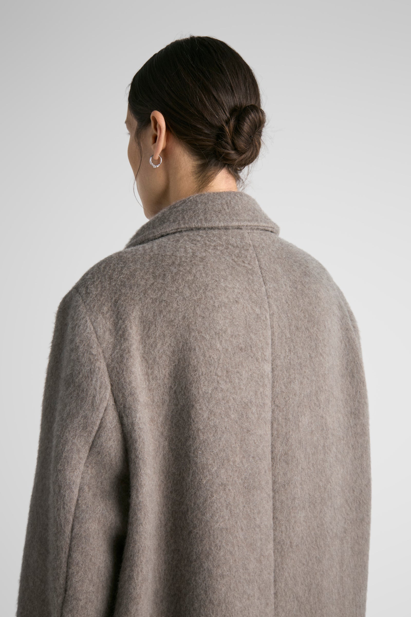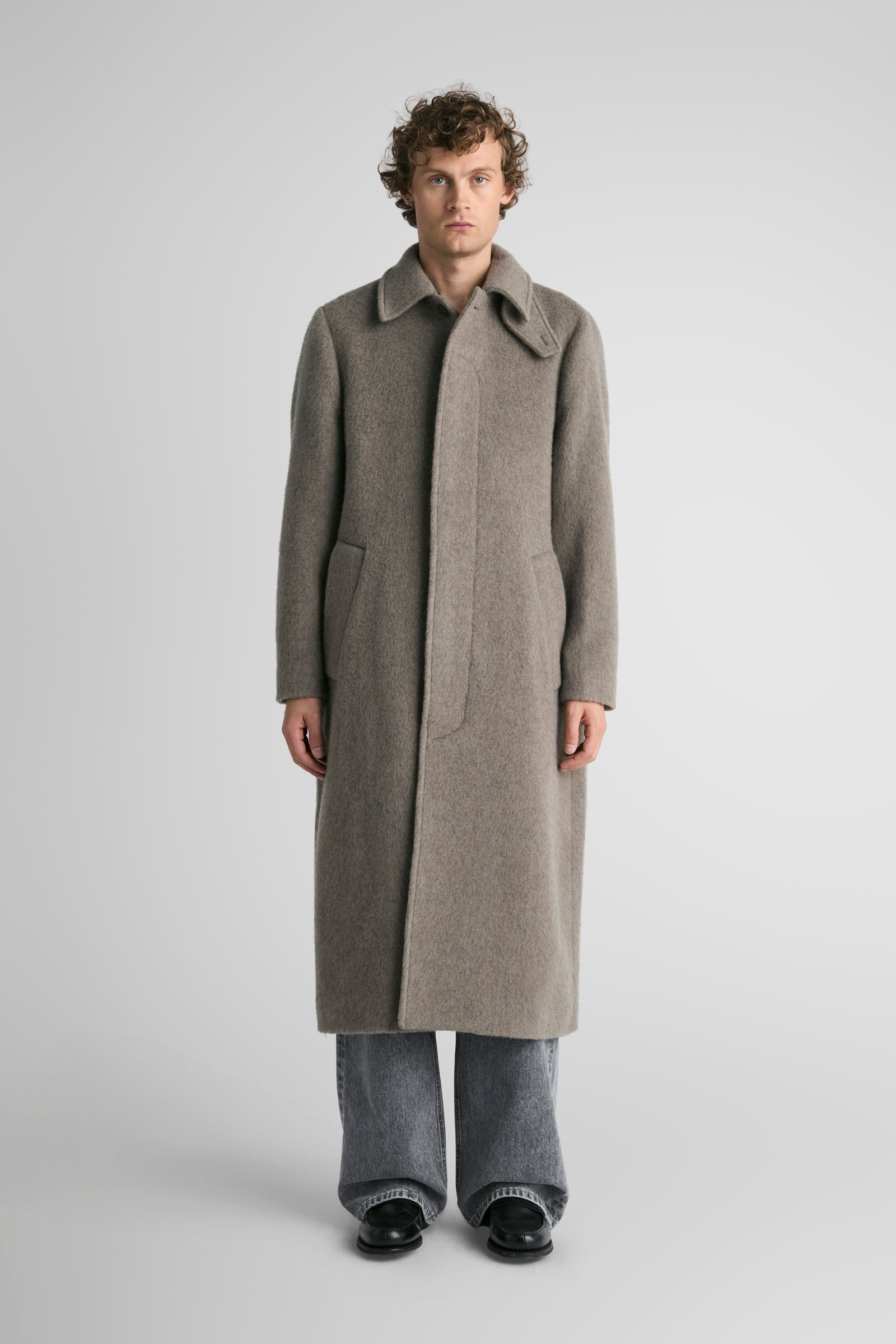 Made in an incredibly soft, brushed 100% recycled superfine wool fabric made by Manteco in Tuscany, Italy, resulting in a hefty, warm but still lightweight coat. Recycled superfine wool fibres are carded and spun with traditional methods, and the fabric is woven with a special construction that allows for the strong brushing process creating the long hair finish.