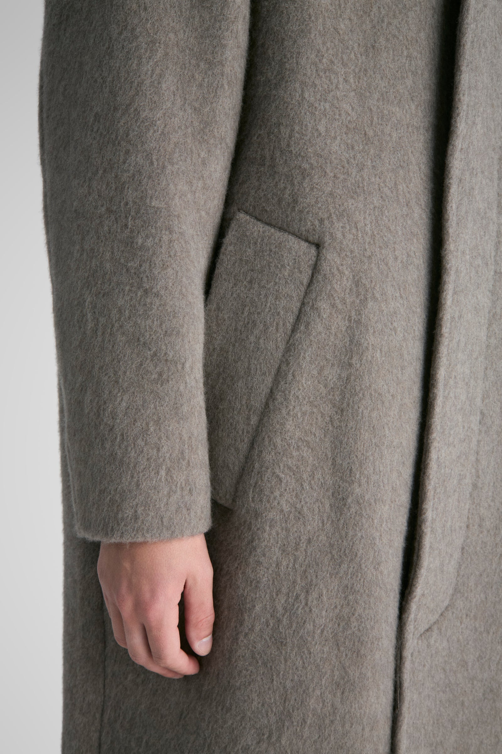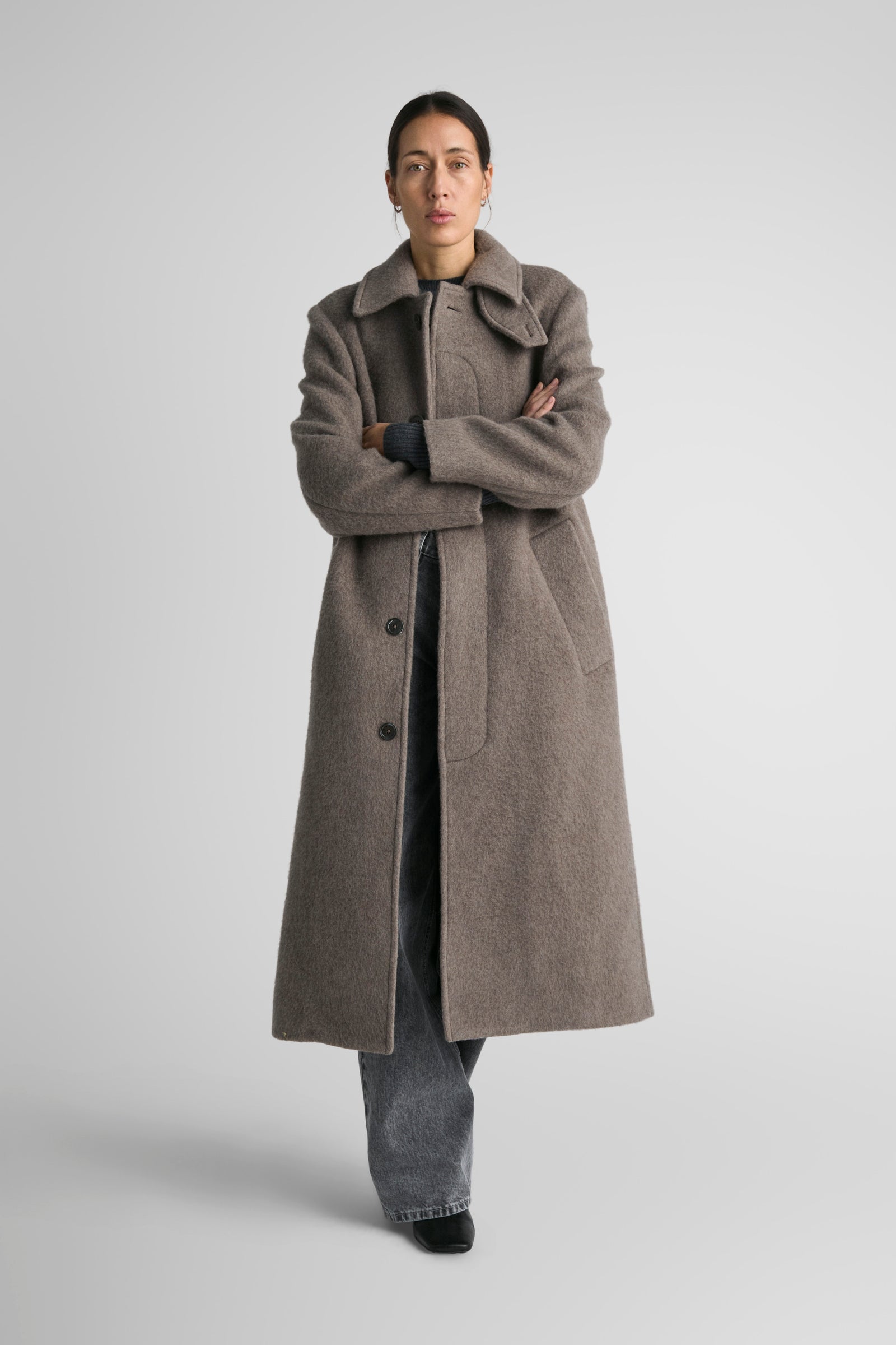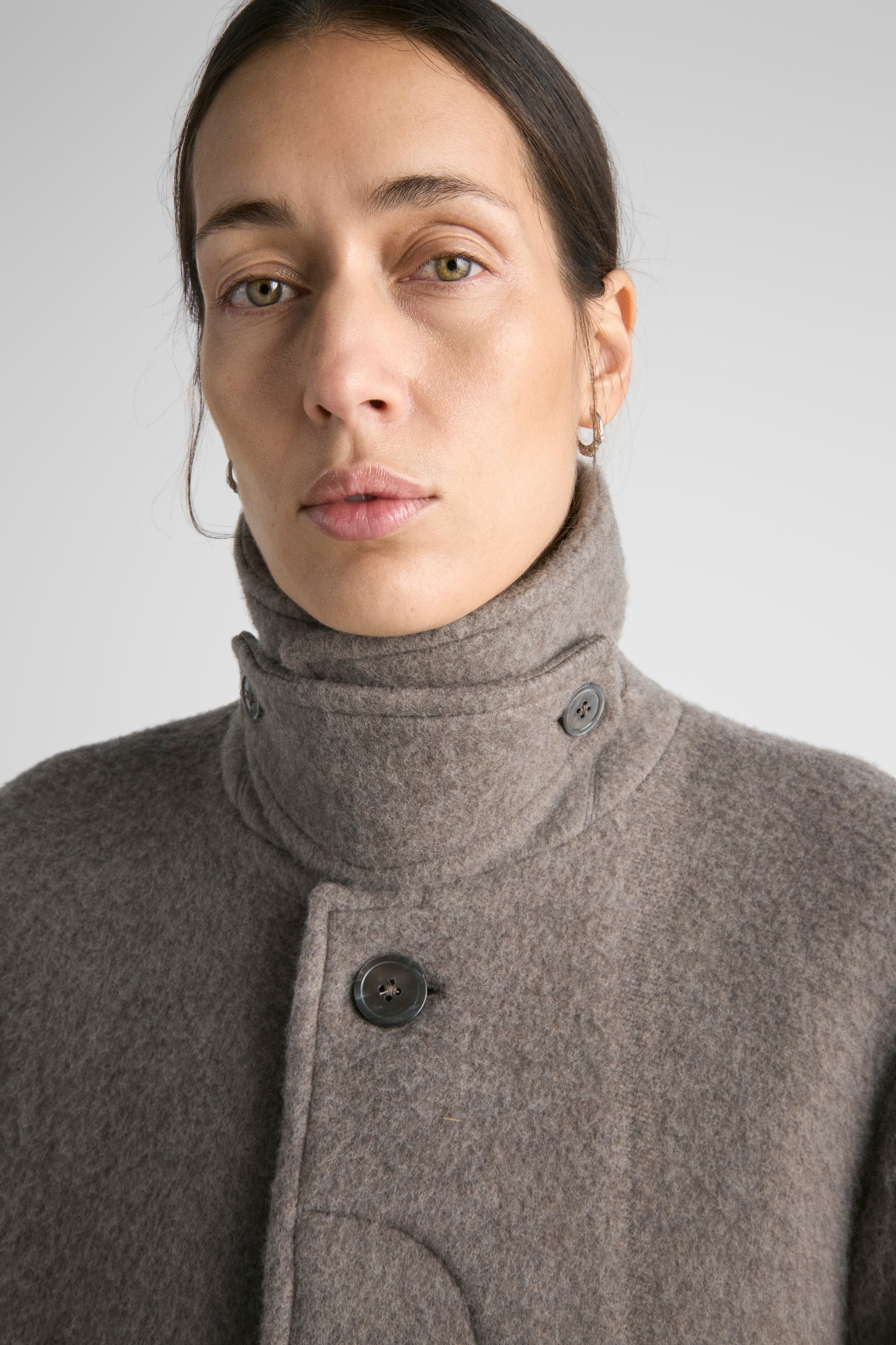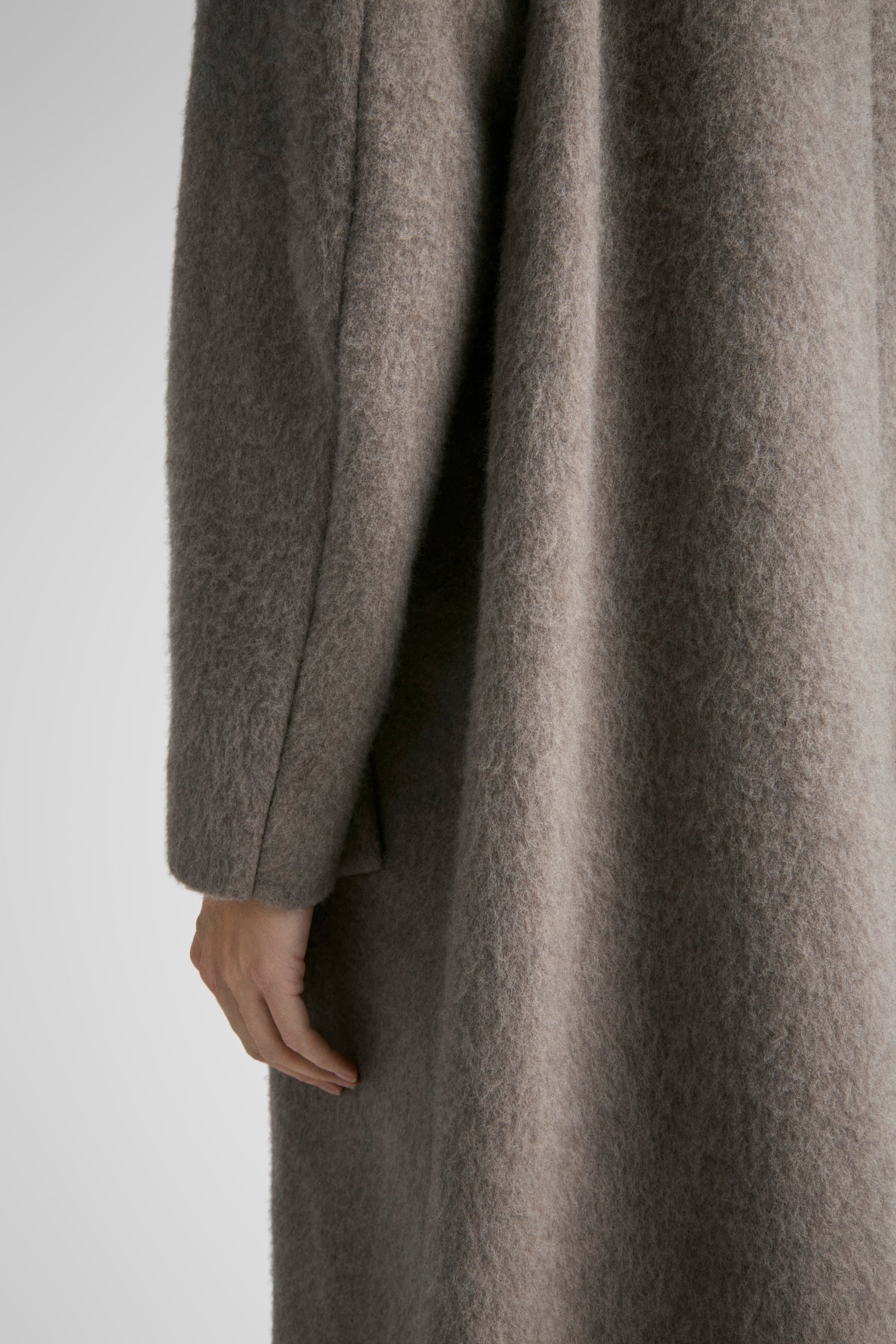 Made in an incredibly soft, brushed 100% recycled superfine wool fabric made by Manteco in Tuscany, Italy, resulting in a hefty, warm but still lightweight coat. Recycled superfine wool fibres are carded and spun with traditional methods, and the fabric is woven with a special construction that allows for the strong brushing process creating the long hair finish.