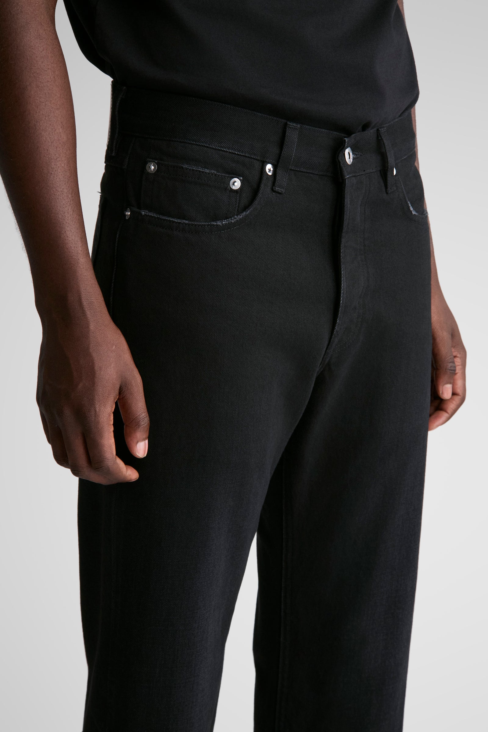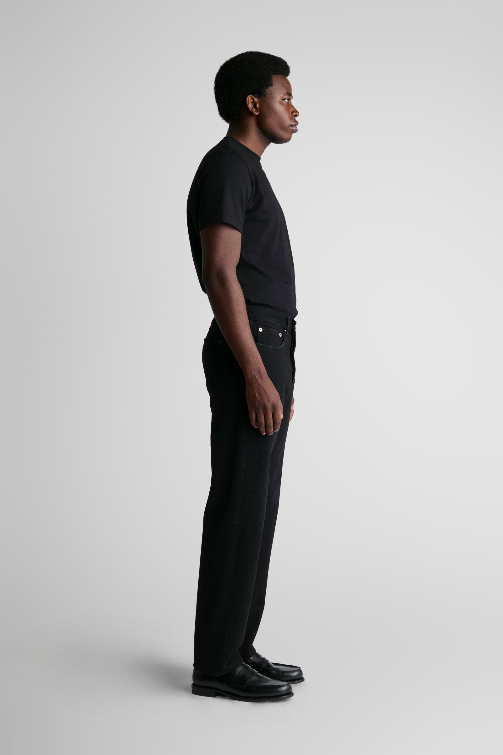 Our regular straight, Fuller, in a slightly washed black.