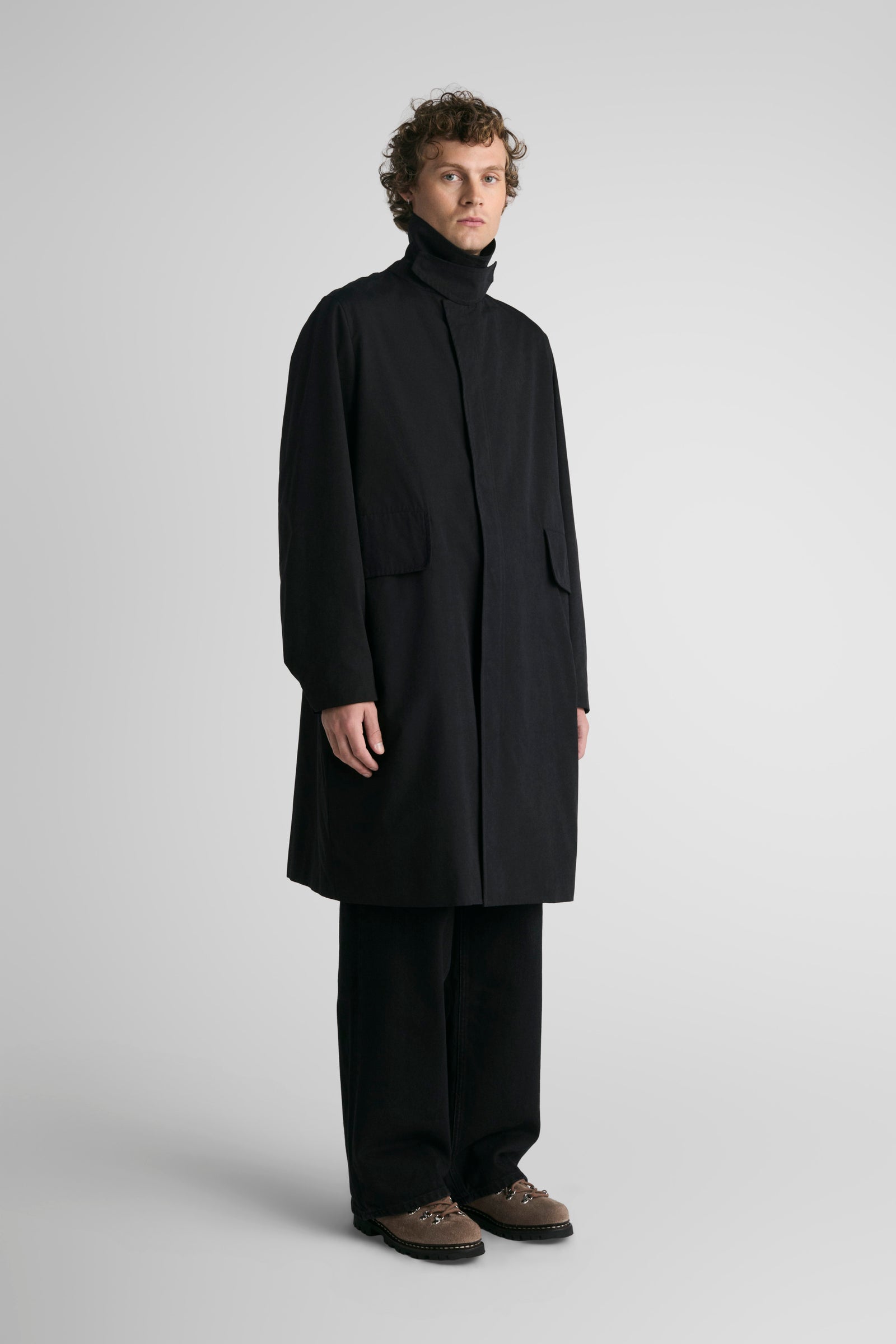 Gillish, our long technical wax coat. Made in a technical fabric from Olmetex in Italy, with a soft wax coating, protecting against the elements. Lined with a custom flannel lining.