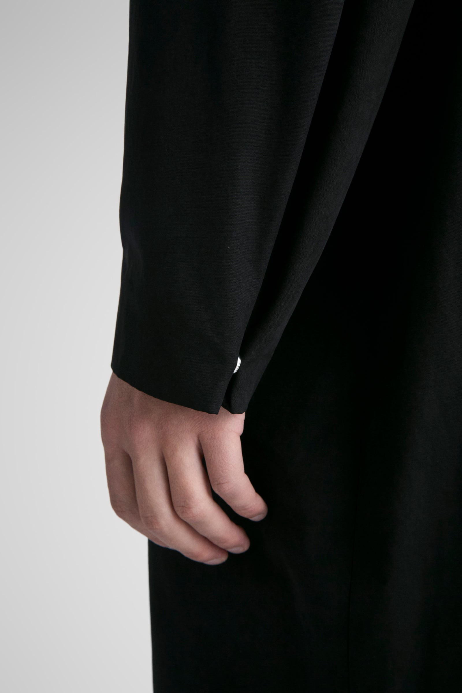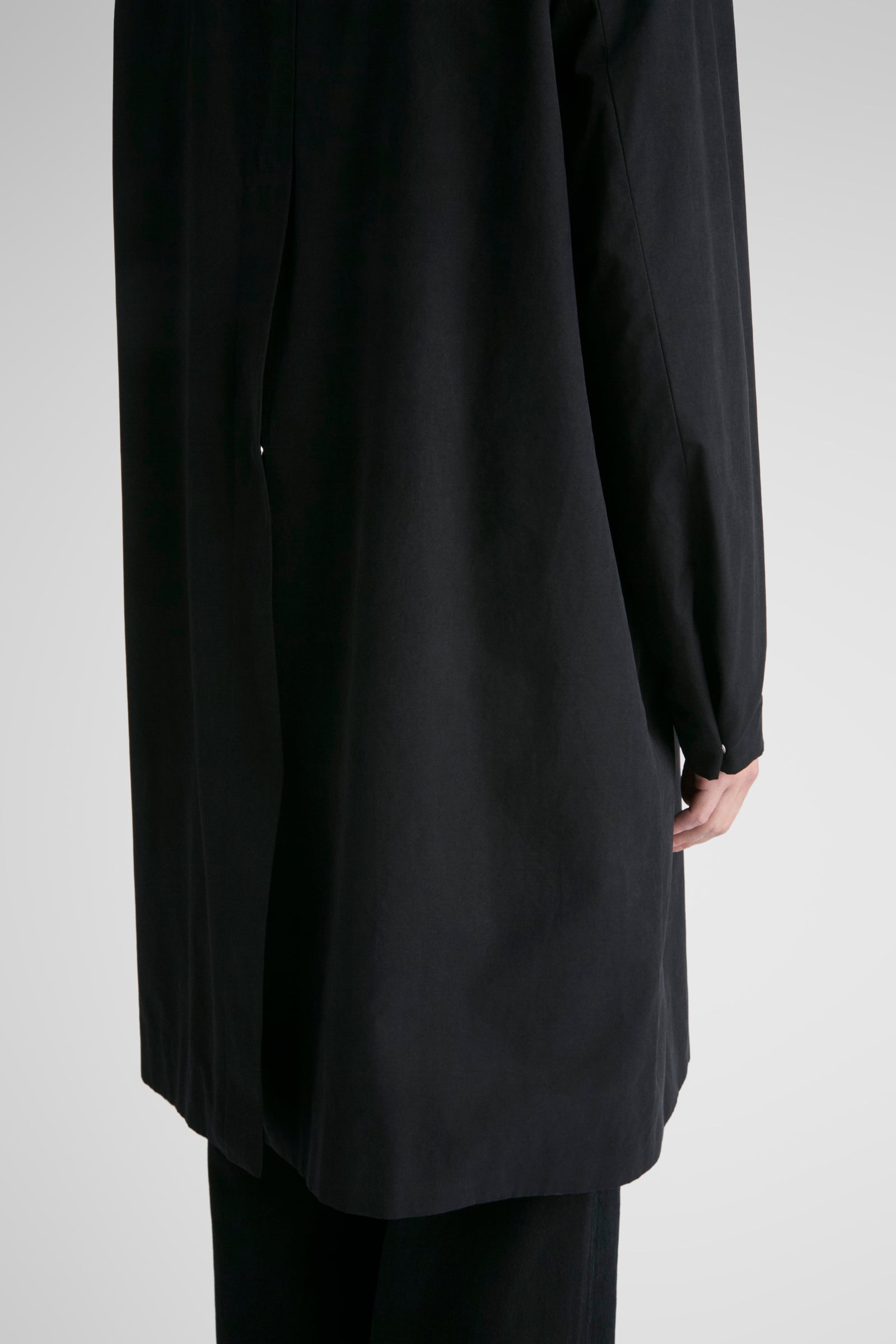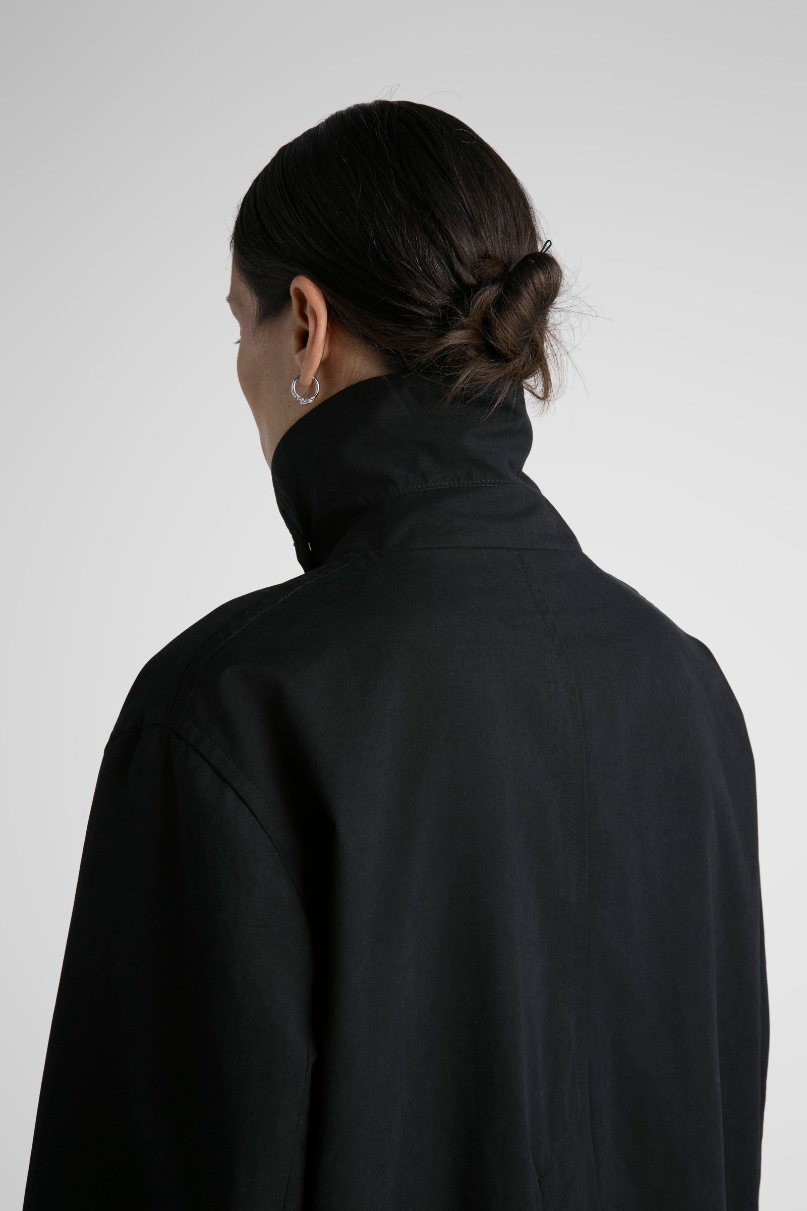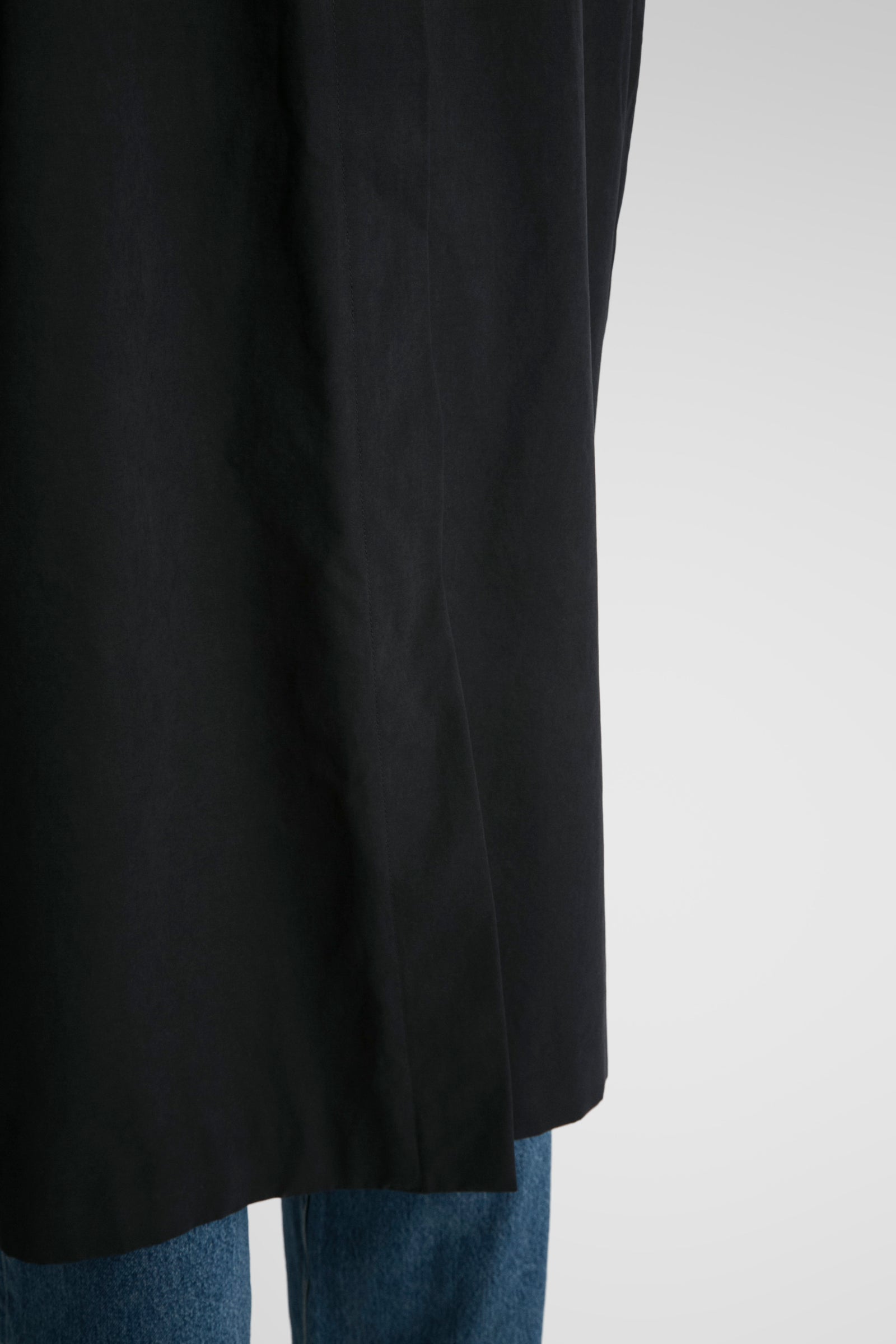 Designed with slightly wide shoulders and a wide body perfect for layering, a long split in the back can be opened and closed with Riri snap buttons.