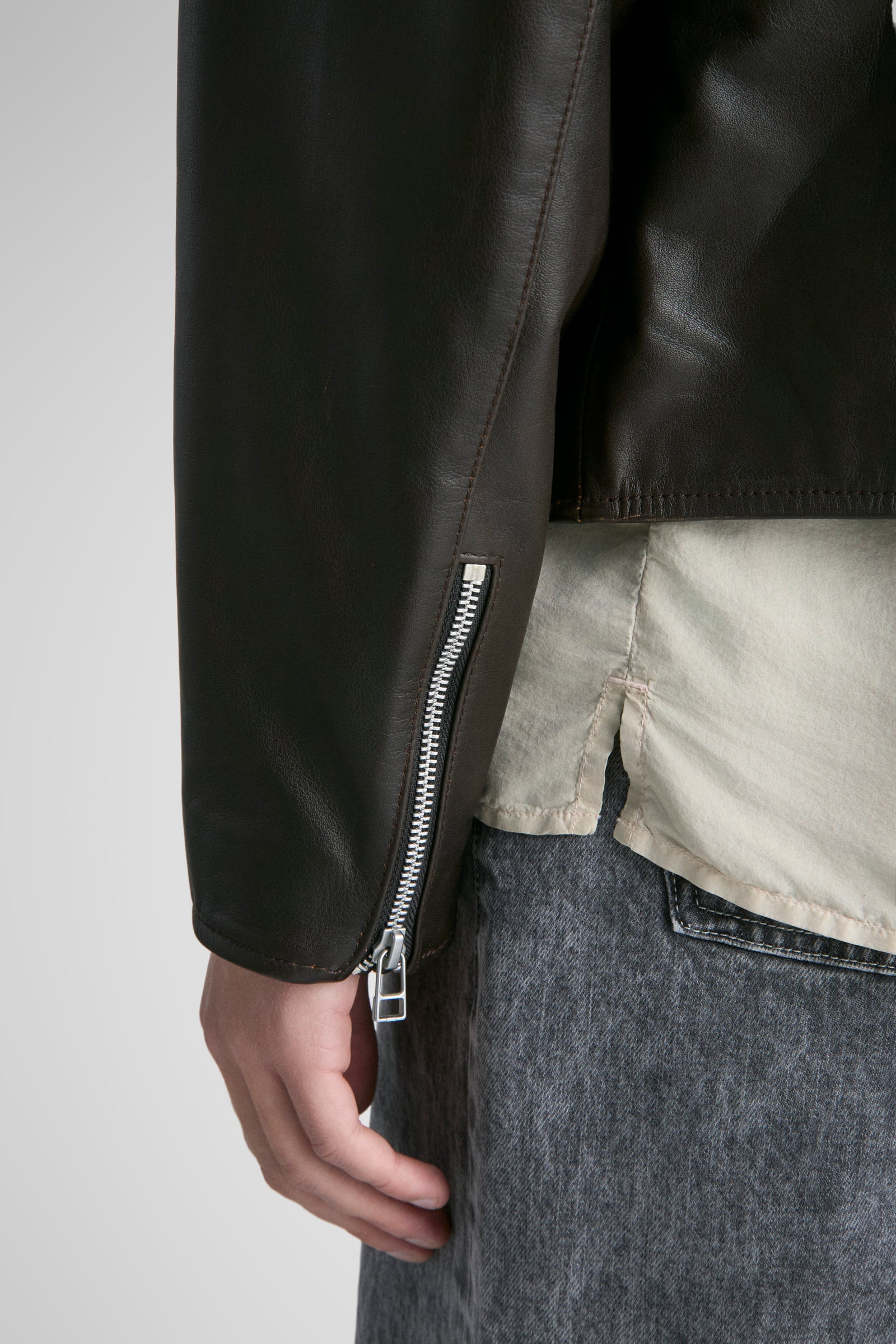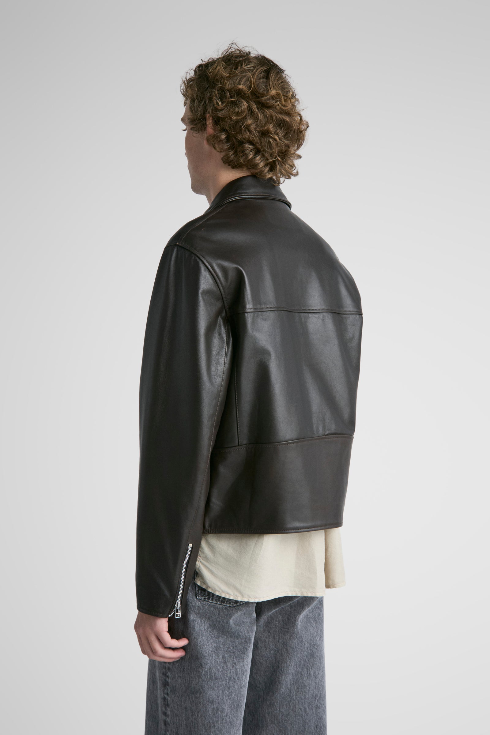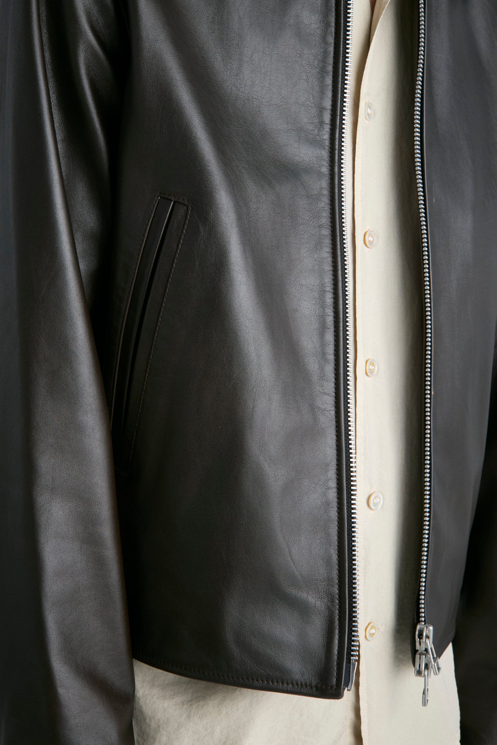 This garment must not be machine-washed. Spot clean with a damp cloth, or clean professionally at a professional cleaner well versed to leather.