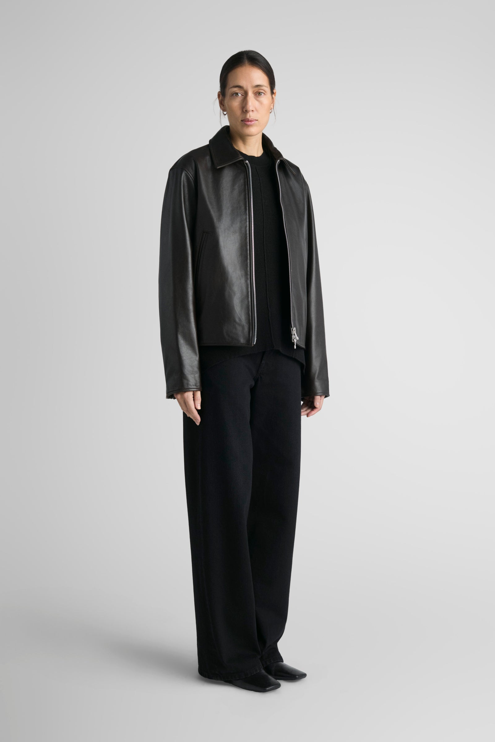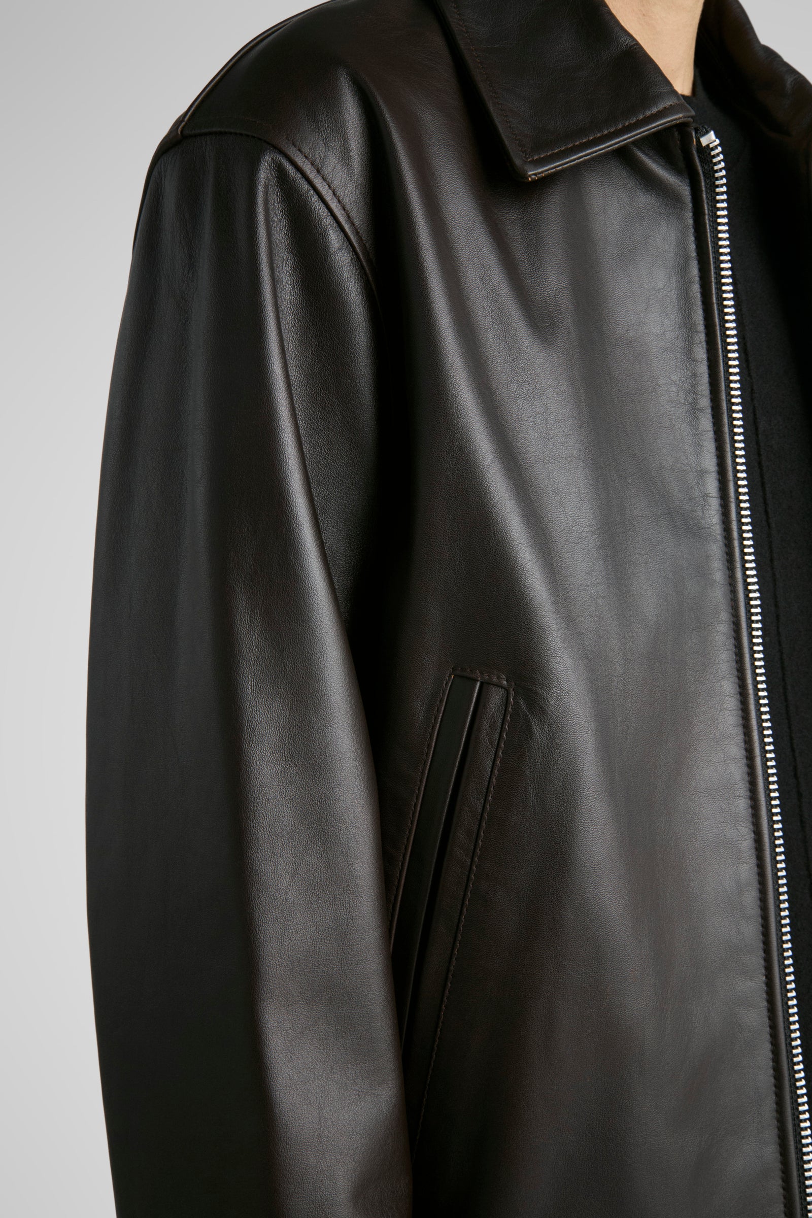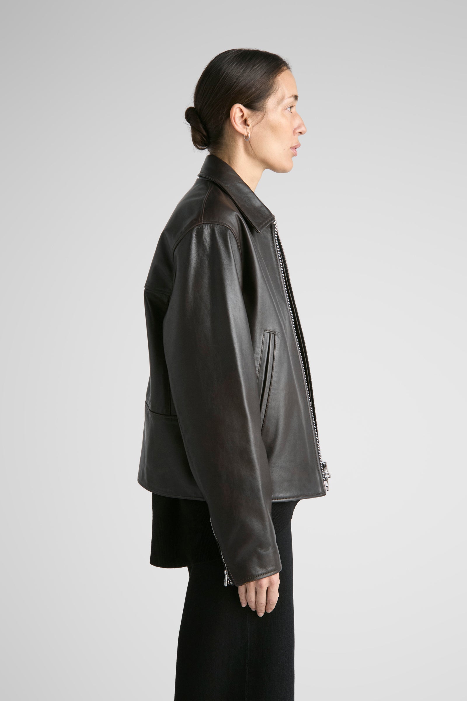 This garment must not be machine-washed. Spot clean with a damp cloth, or clean professionally at a professional cleaner well versed to leather.