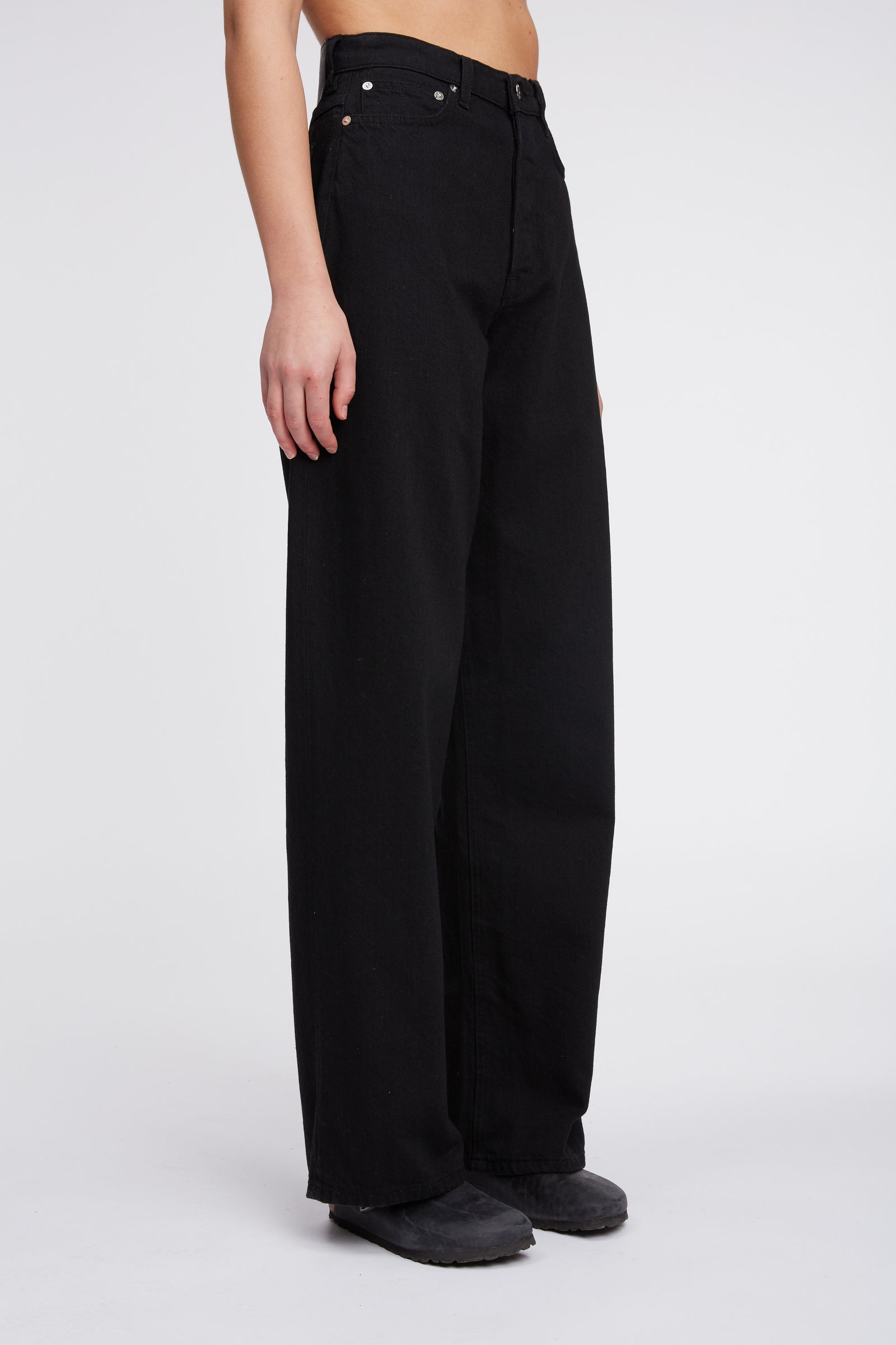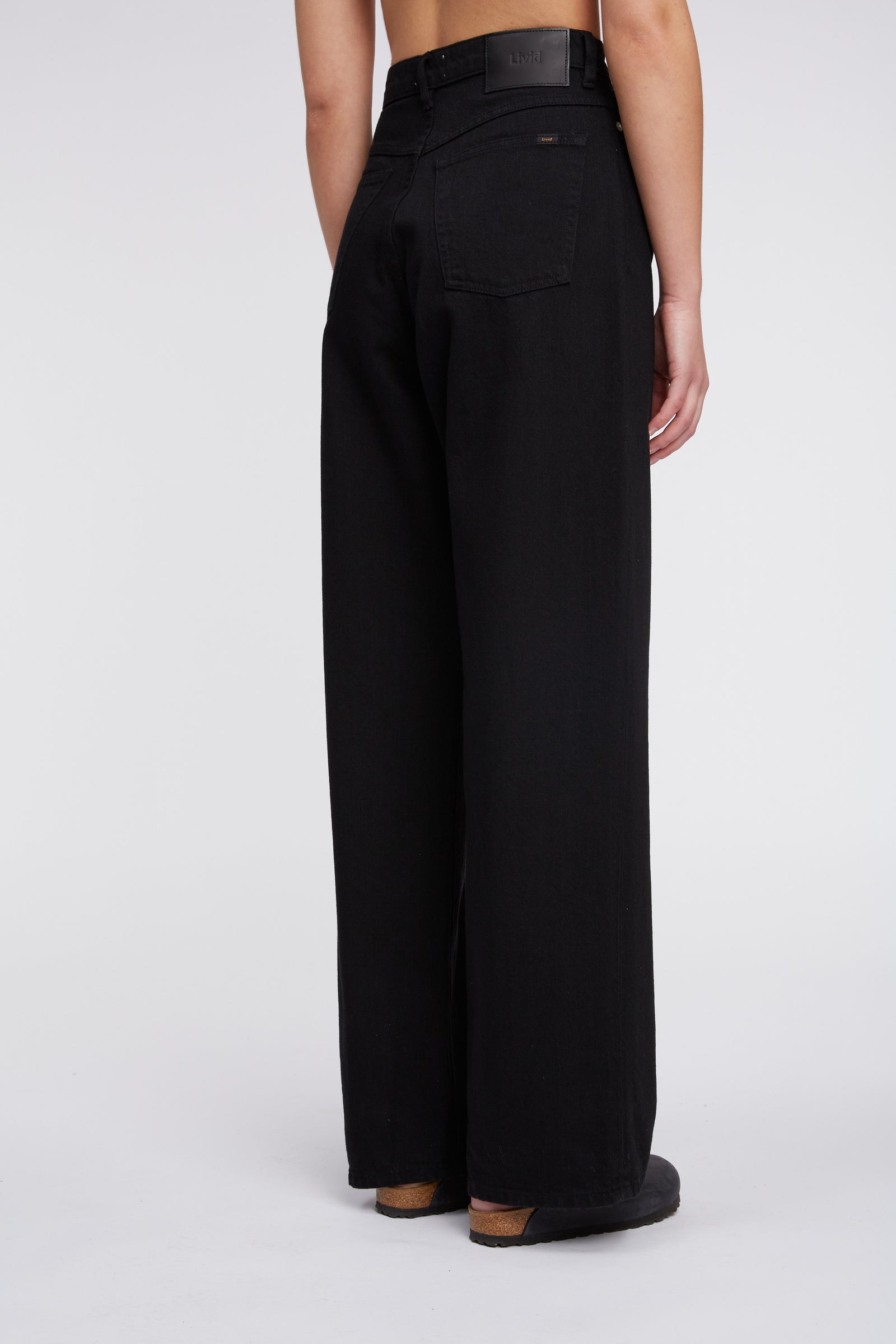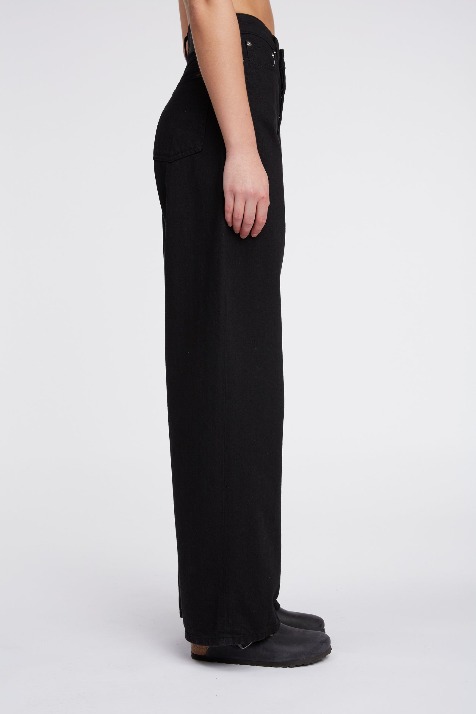 Joelle is super high-waisted, wide and straight from the hips down, giving a slightly flared or wide straight silhouette. Joelle is curved and narrow at the waist, relaxed over the hips, and wide all the way down.