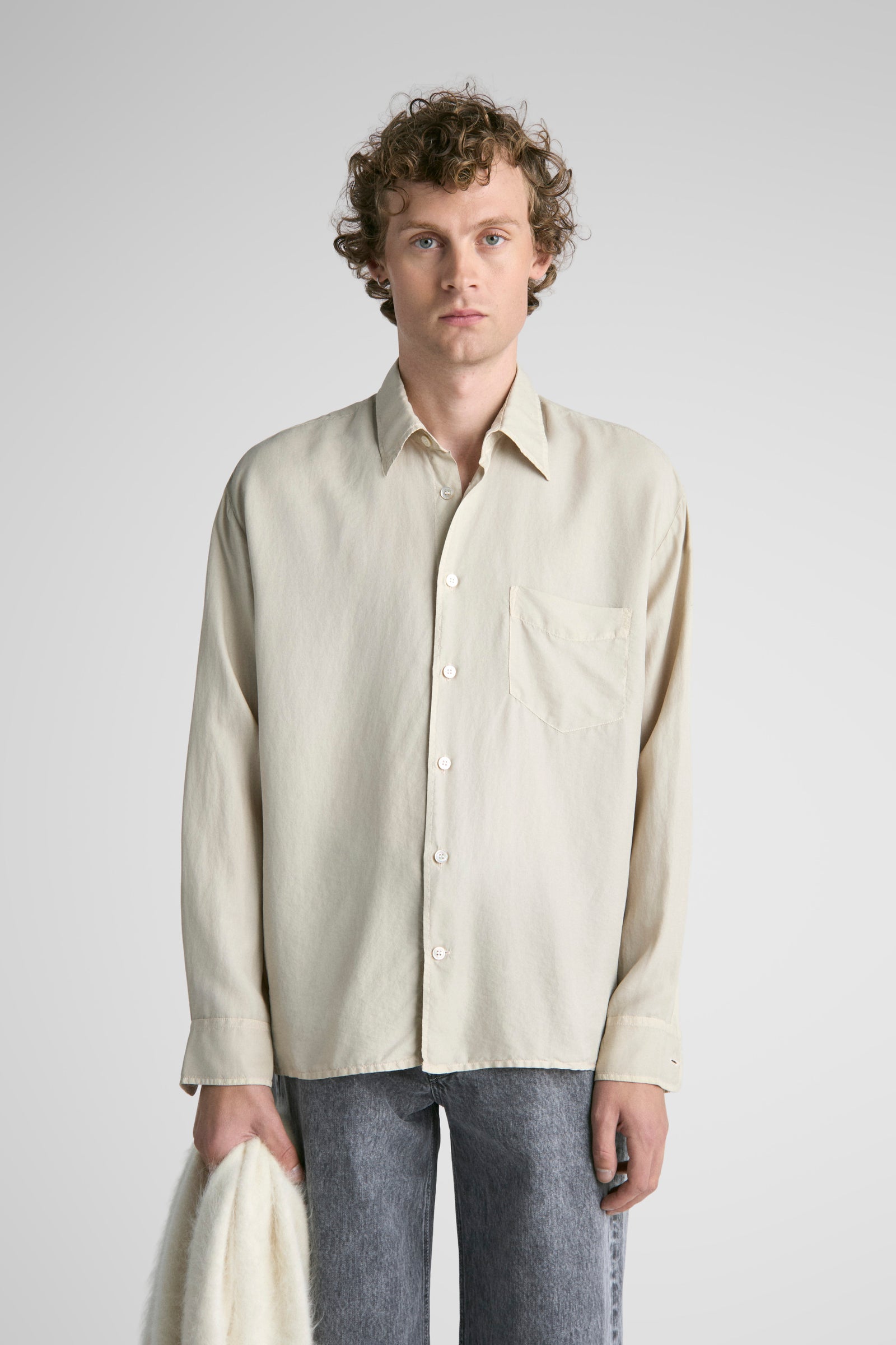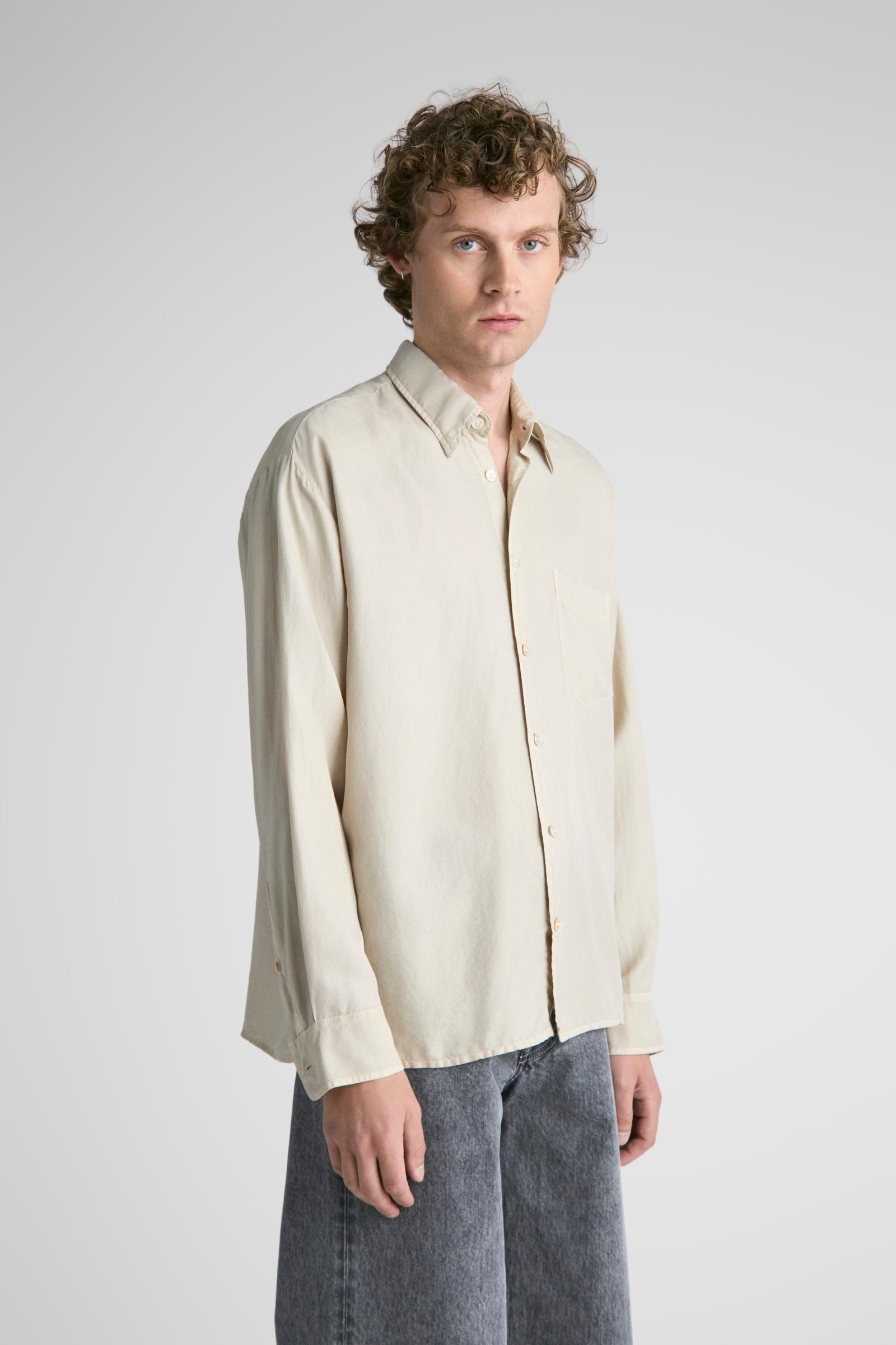 Our box-fit shirt Keen, in fine silk.