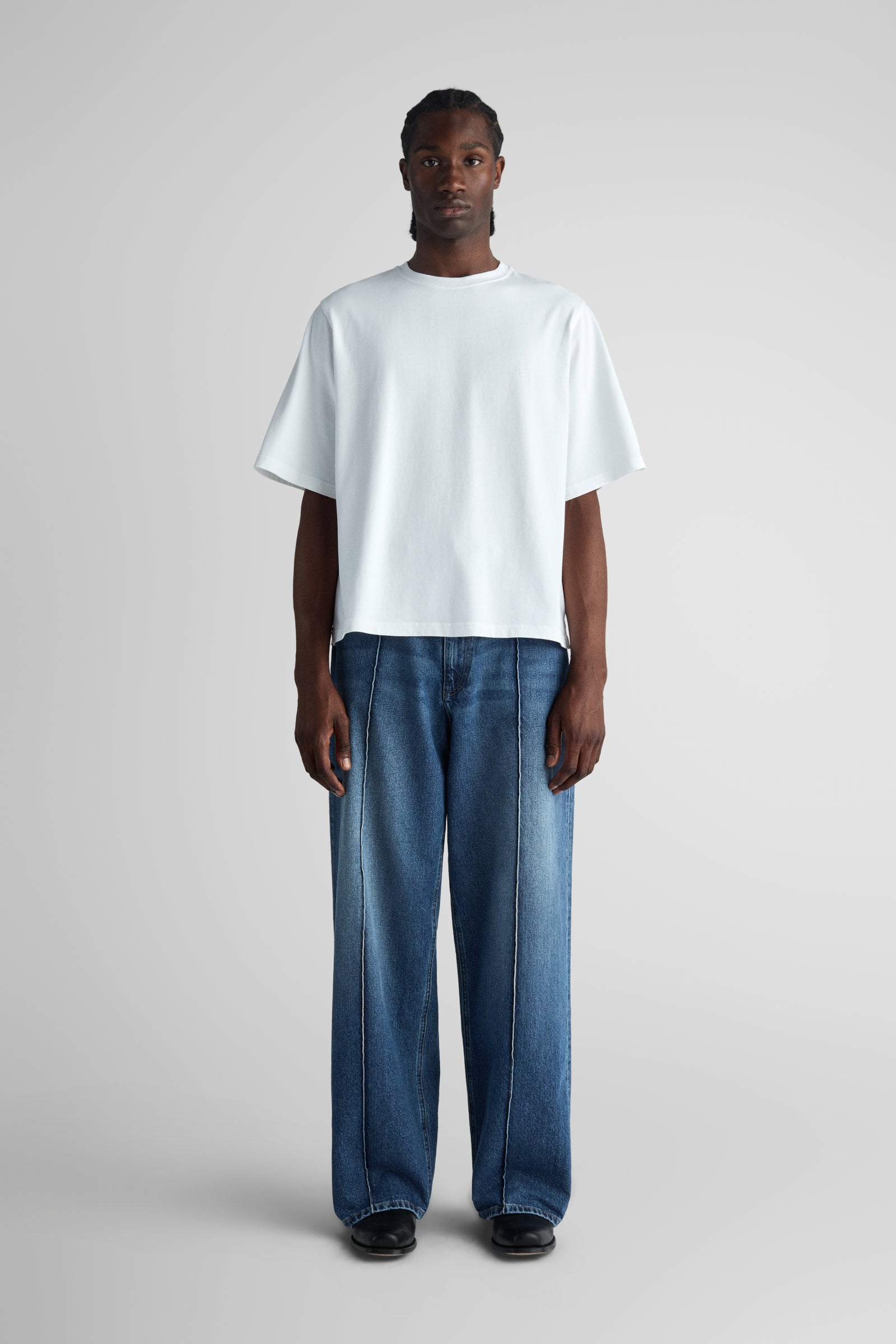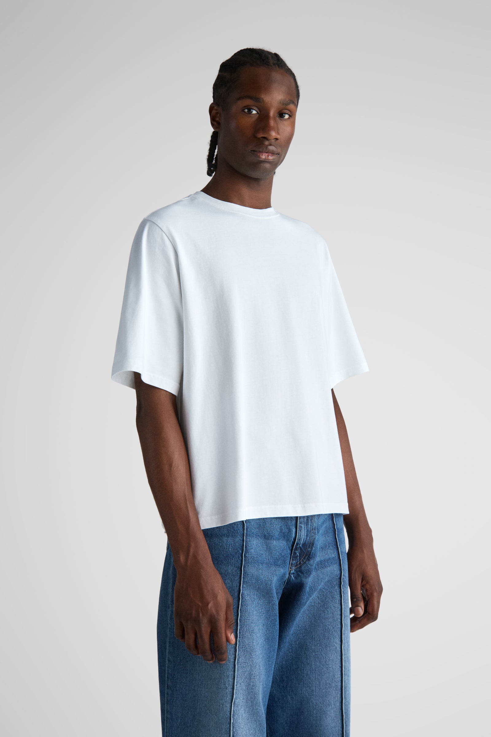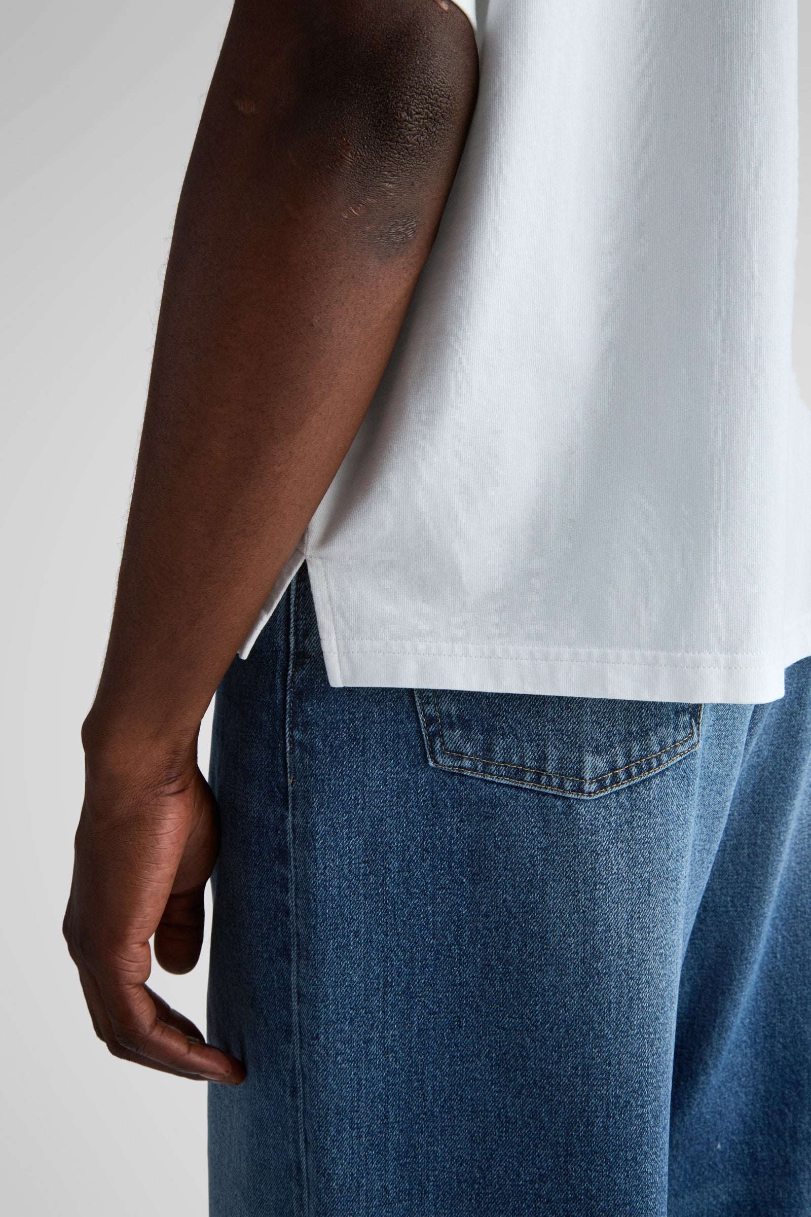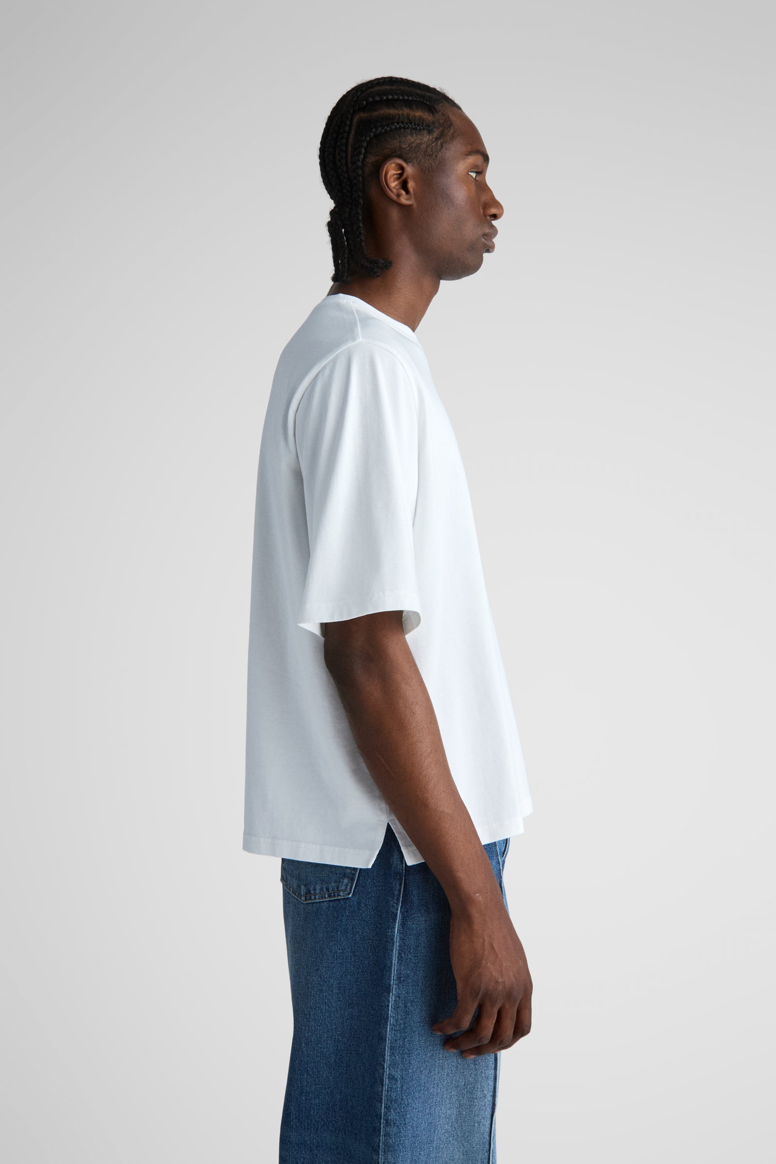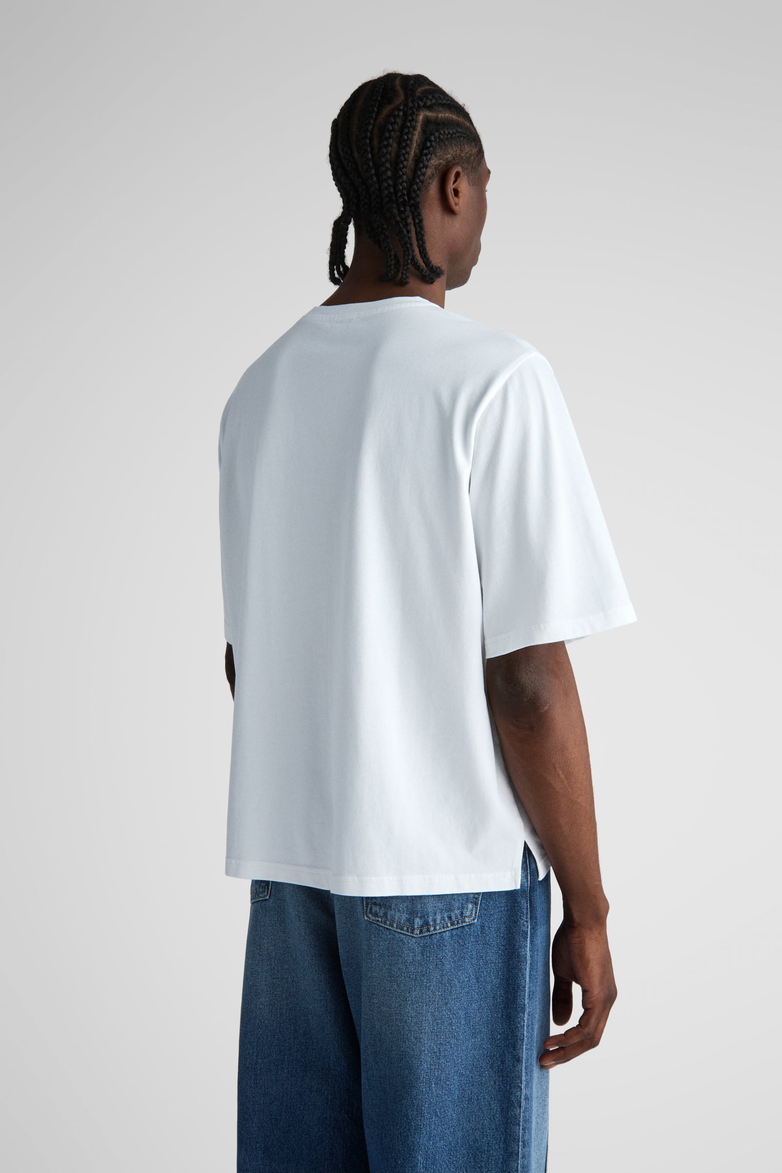 Keller features a wider, shorter body for a loose box-fit, but sits more dialed in at the shoulders and upper chest compared to an ovesized tee.