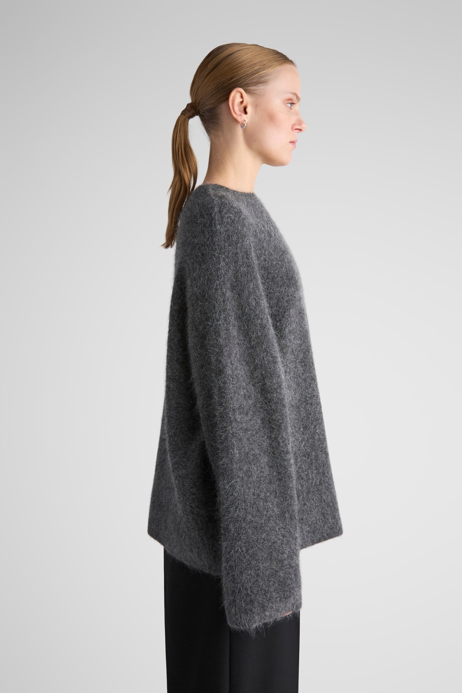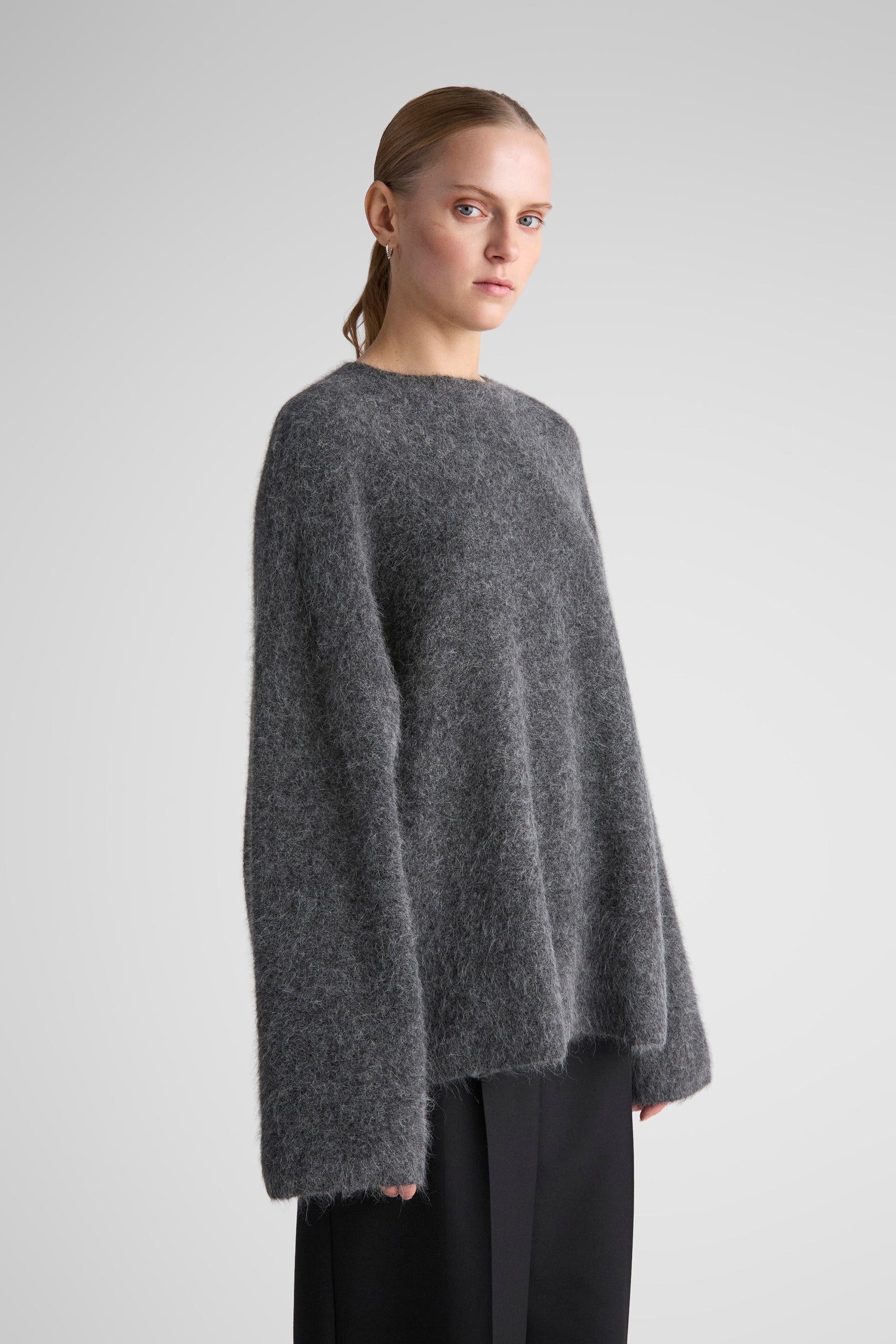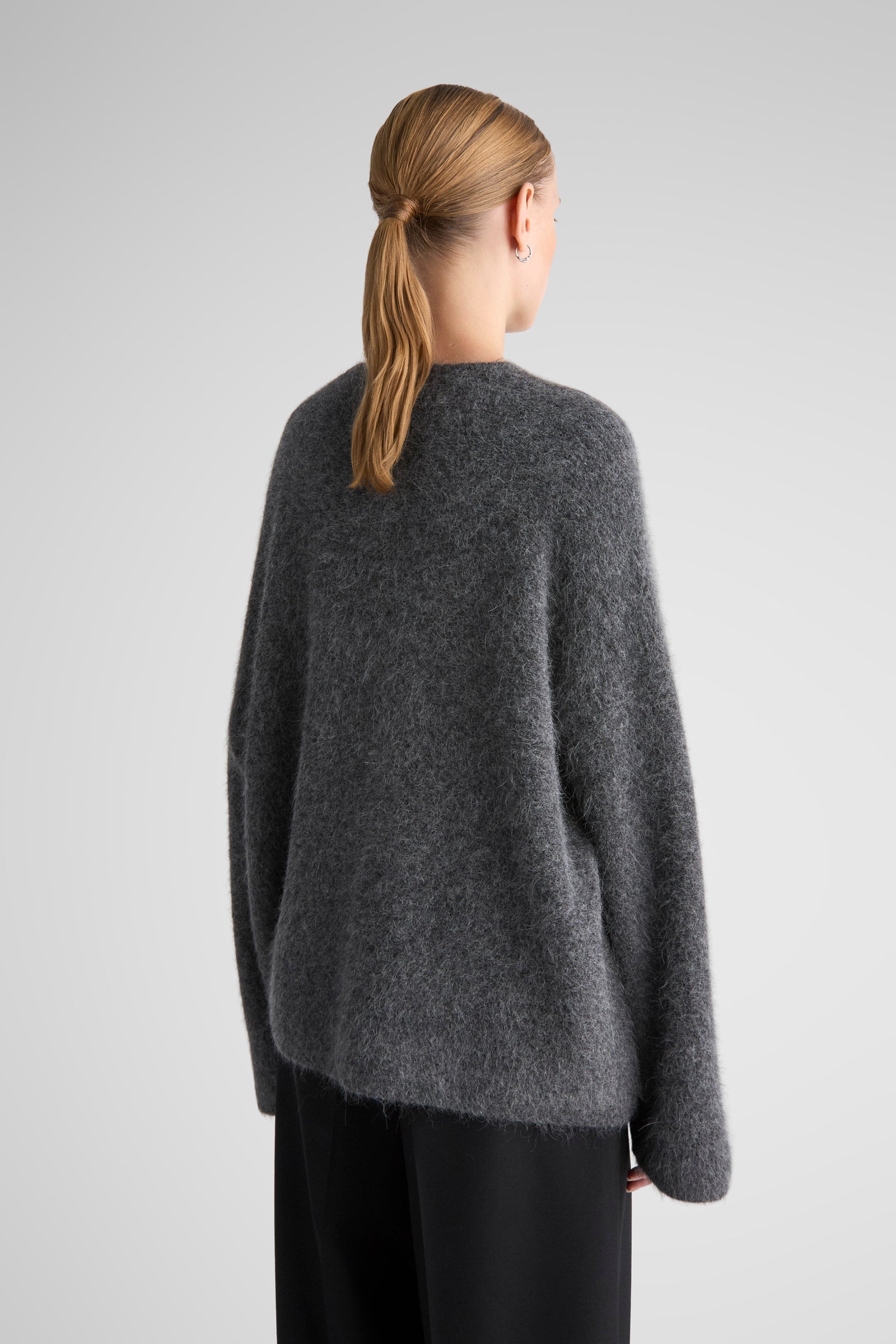 Effortlessly draped sweater, knitted in a super soft brushed alpaca yarn. Constructed with wide sleeves, dropped shoulders and relaxed, long body. The Kerin is a go-to sweater for the whole autumn/winter season.
