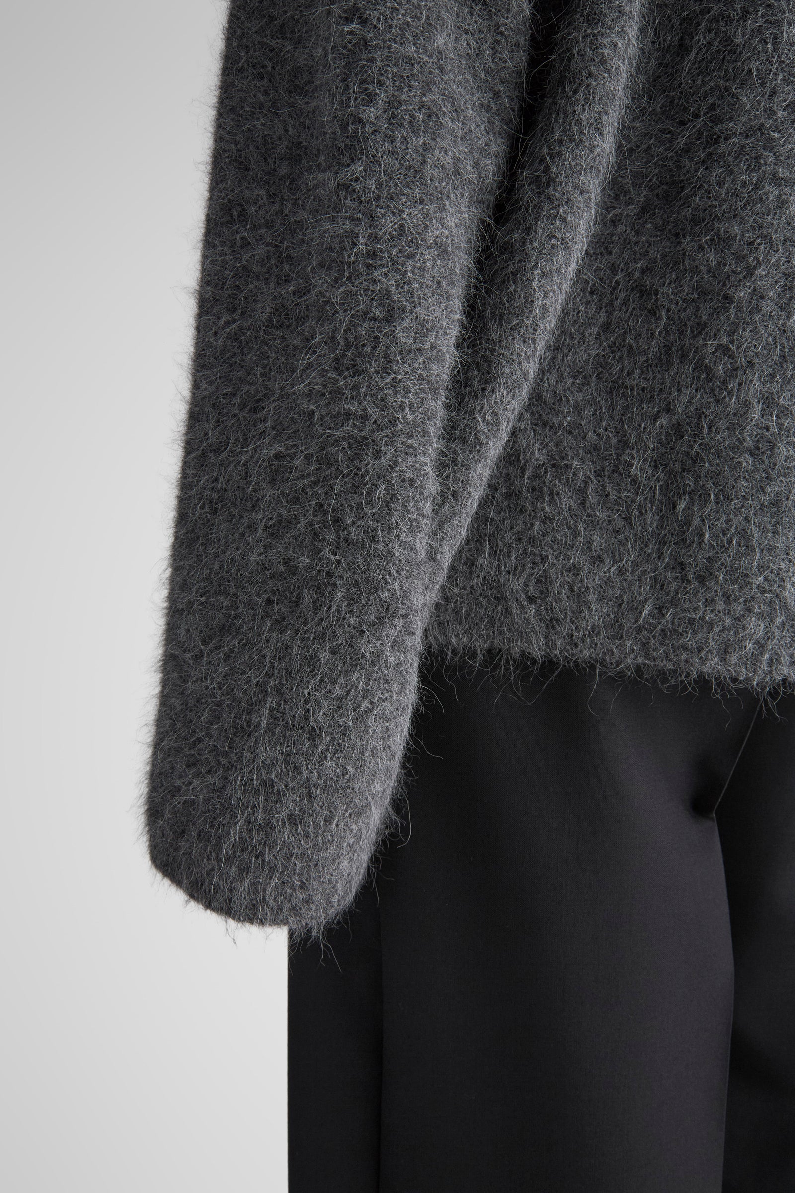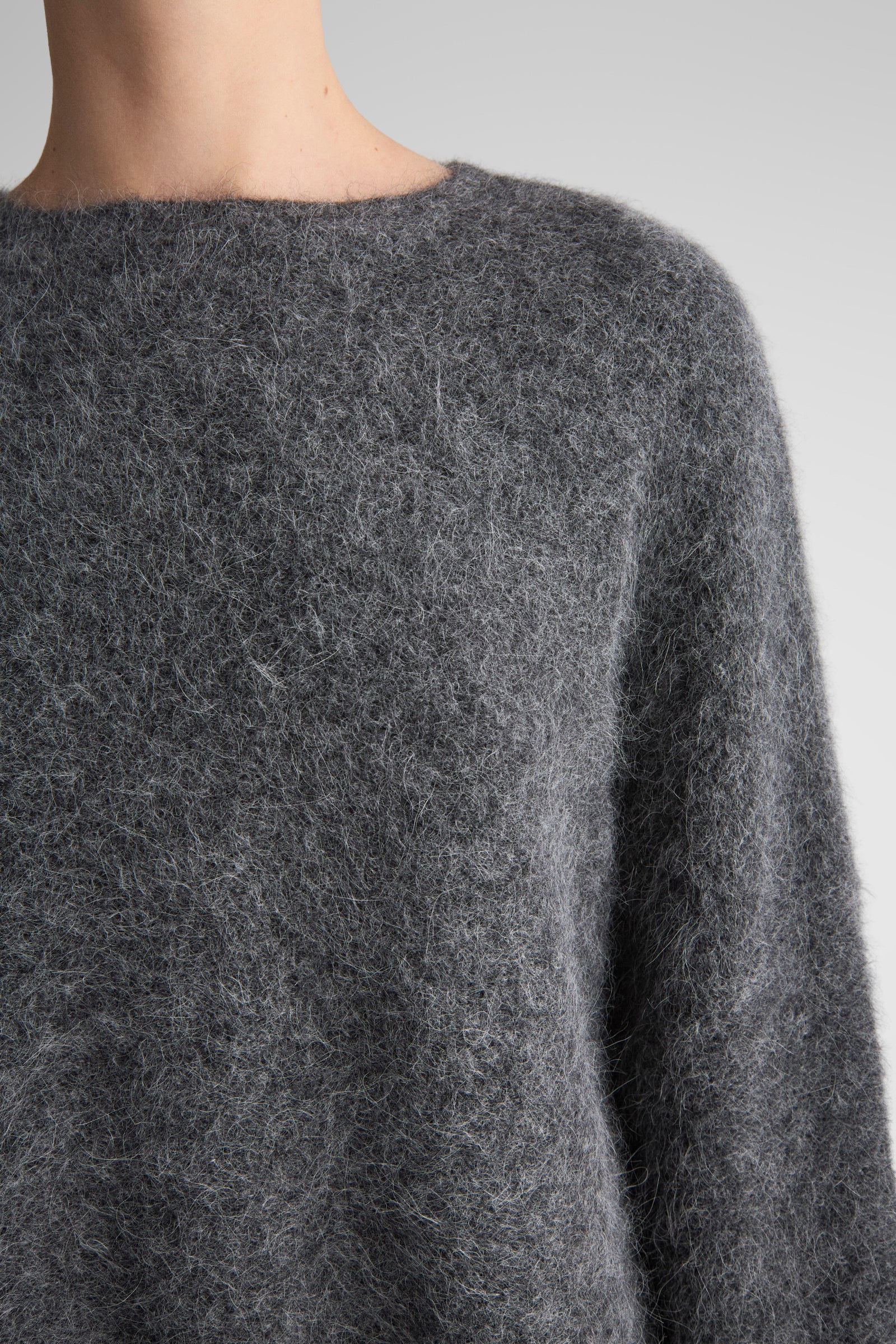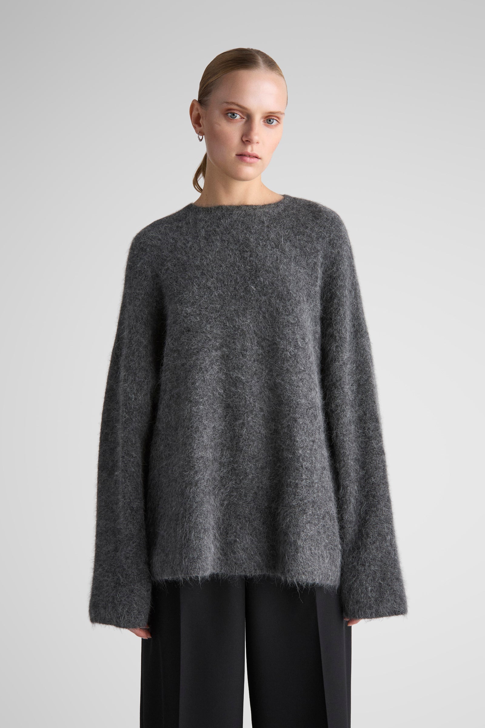 Effortlessly draped sweater, knitted in a super soft brushed alpaca yarn. Constructed with wide sleeves, dropped shoulders and relaxed, long body. The Kerin is a go-to sweater for the whole autumn/winter season.