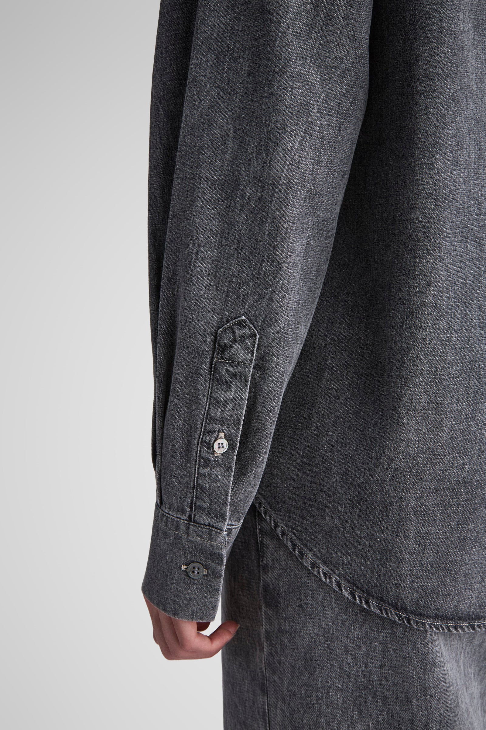 Made in a 7 Oz. denim woven by the artisinal denim mill Collect in Japan washed to a structured grey. Finished with mother of pearl buttons.