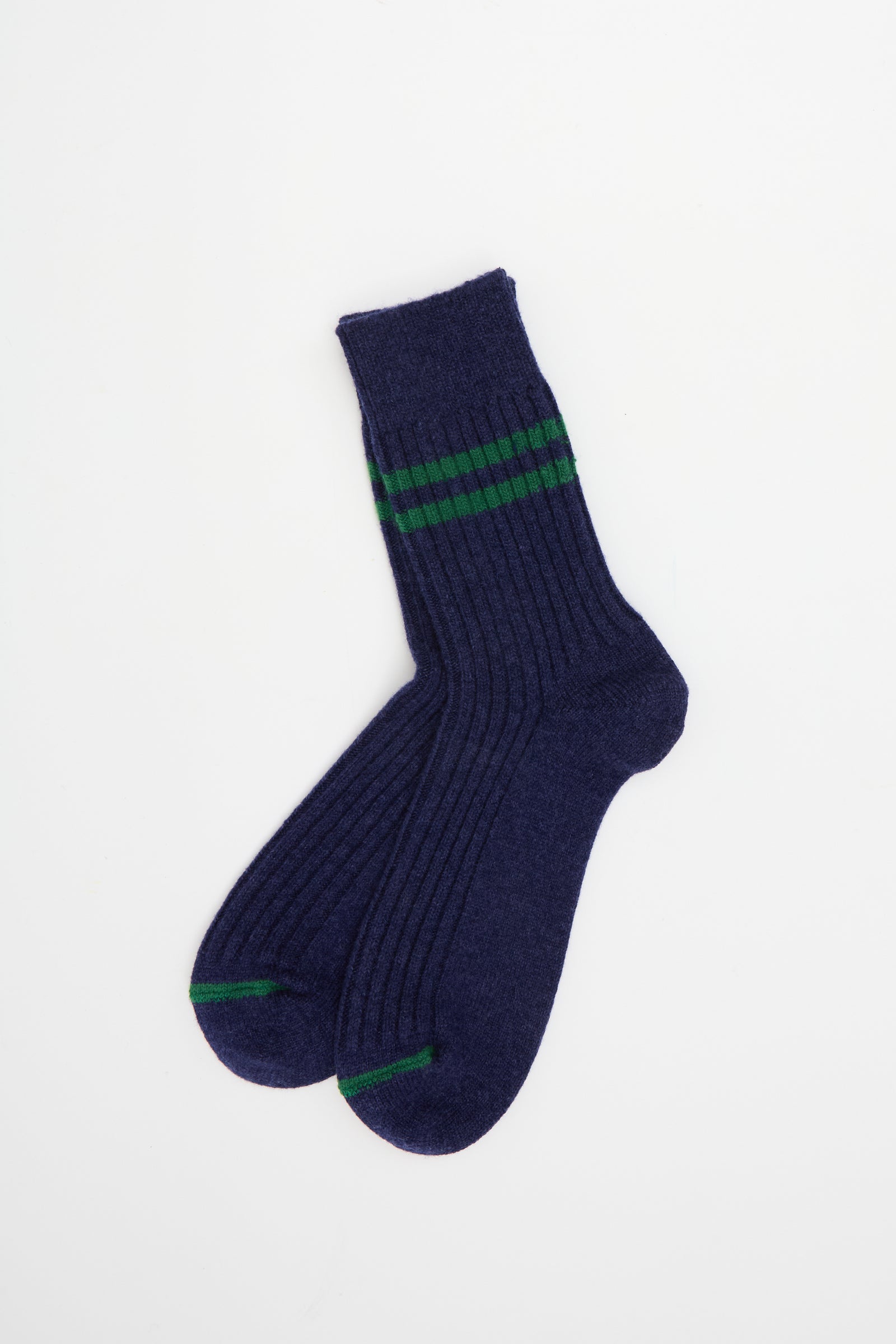 Sporty stripe socks in bold colours, in a high quality merino. Expertly knitted in Japan on traditional machinery, in a soft and warm merino wool yarn, spun around a nylon core for durability.