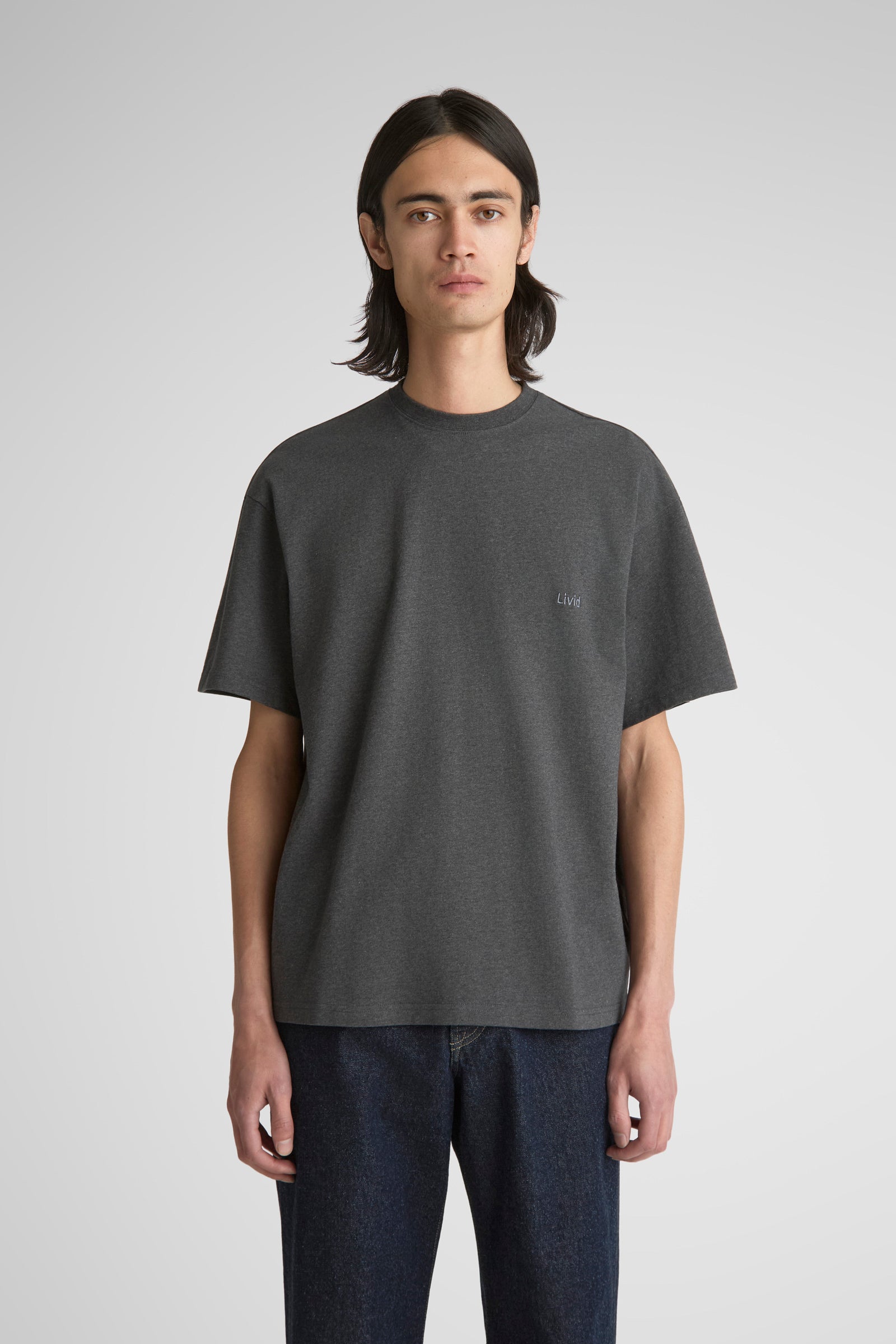 Our box fit tee Nelson. Designed with dropped shoulders and a relaxed straight body, with a slightly shorter length than our slimmer basic tee Richmond, giving a boxier relaxed look.