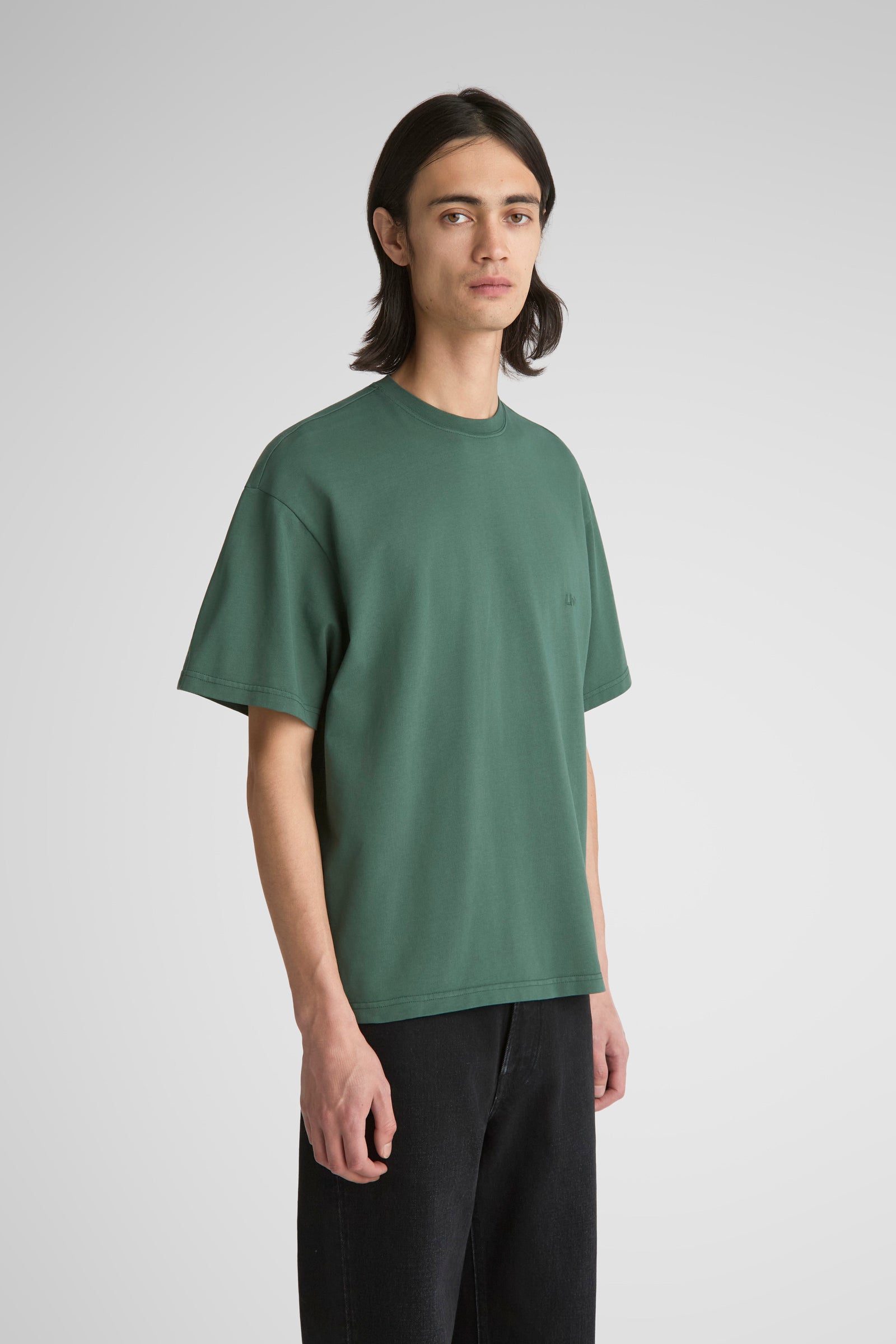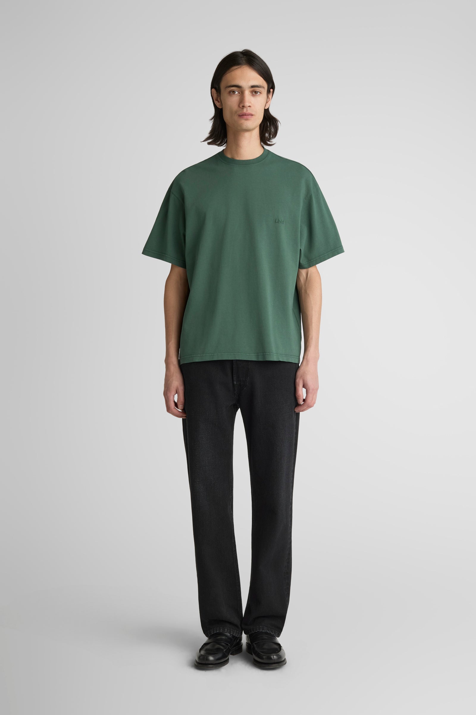 Our box fit tee Nelson. Designed with dropped shoulders and a relaxed straight body, with a slightly shorter length than our slimmer basic tee Richmond, giving a boxier relaxed look.
