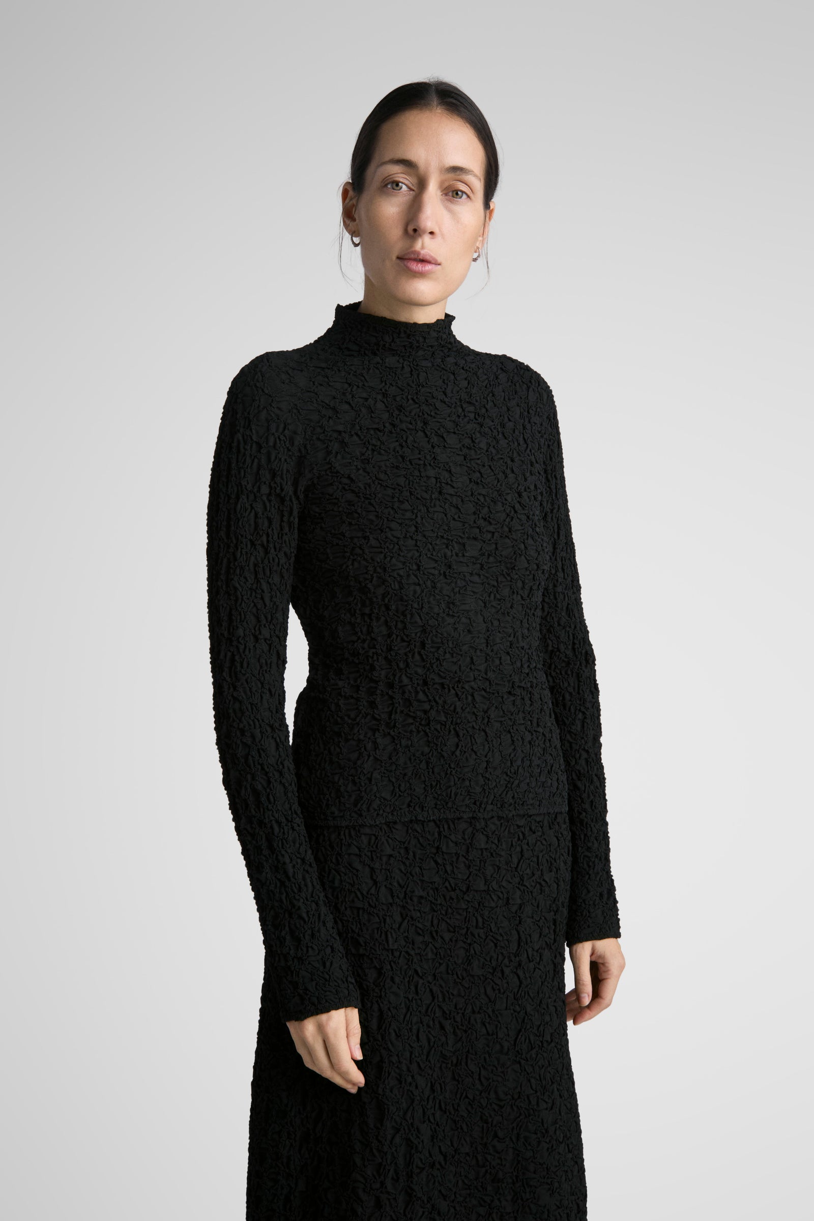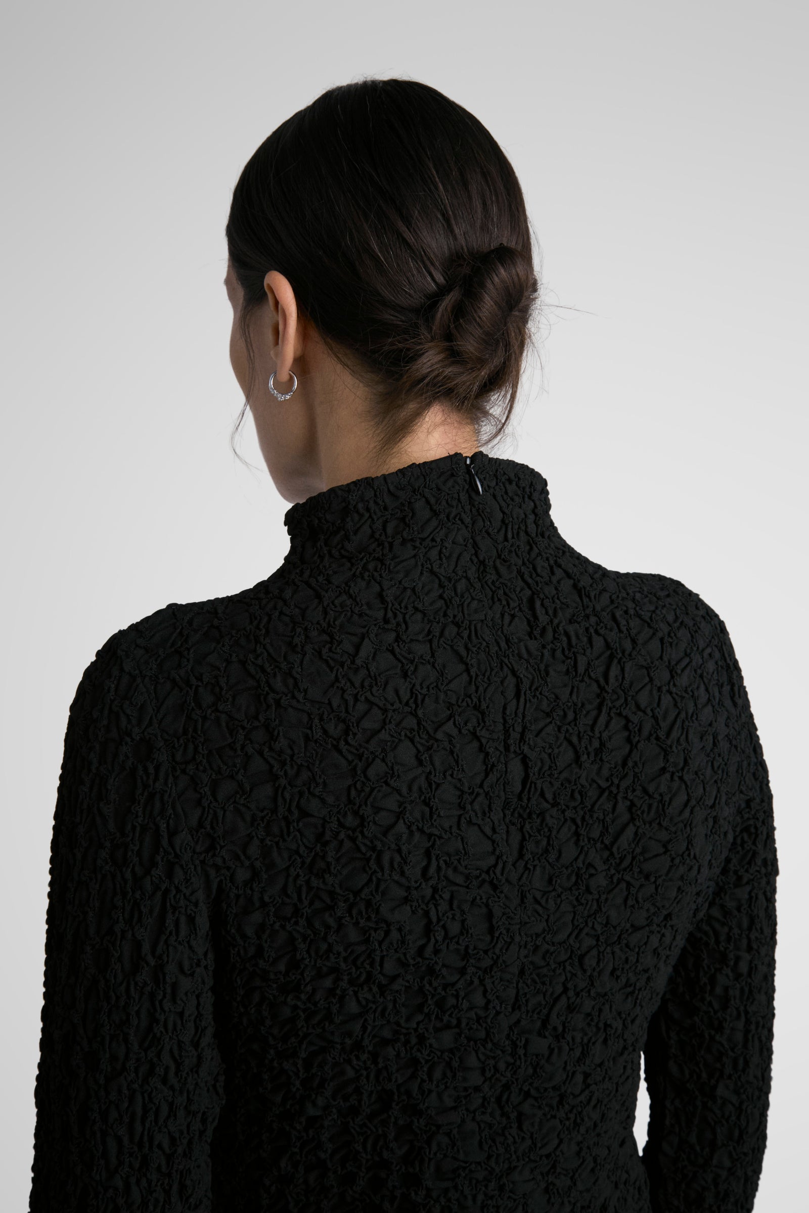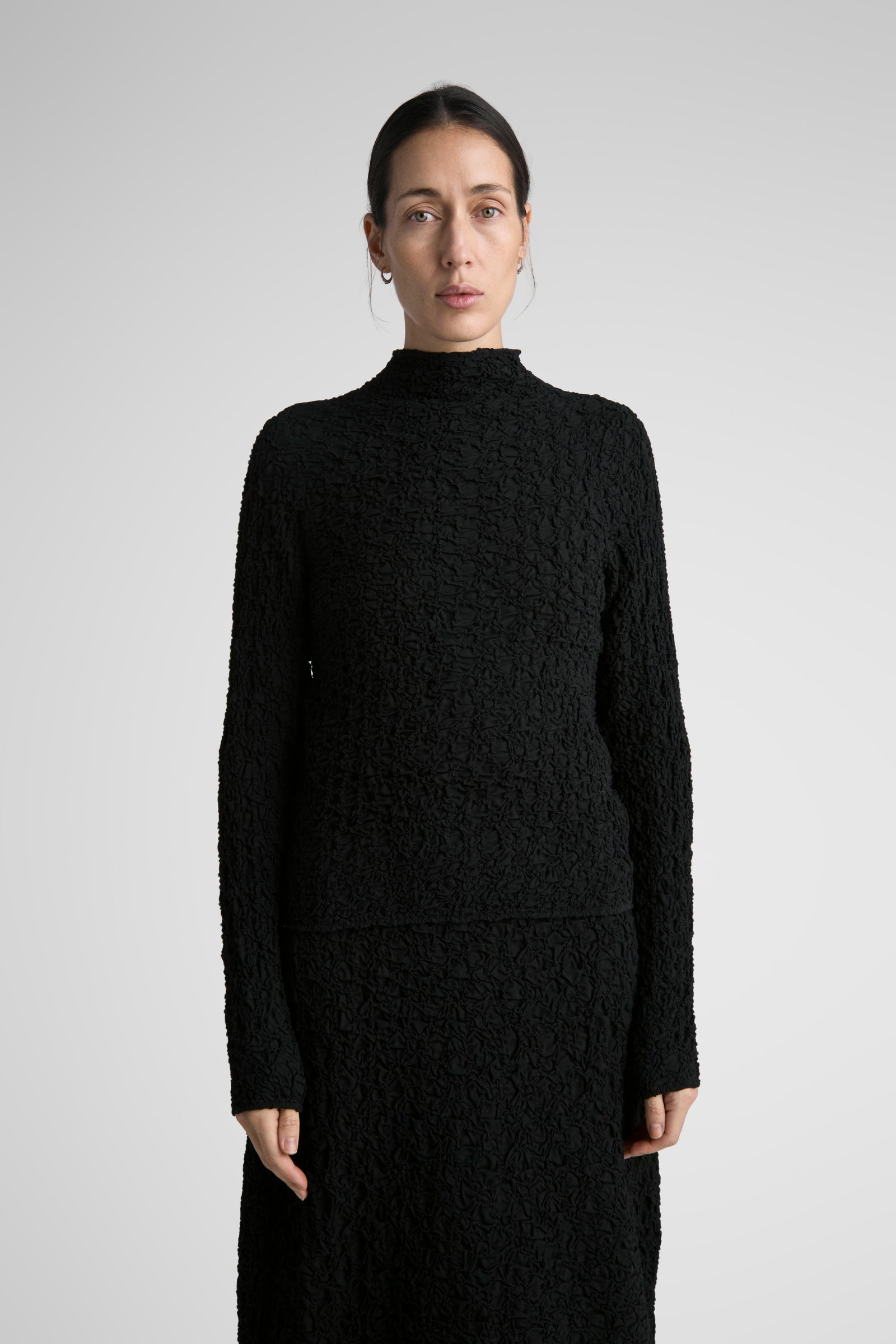 Noni features a funnel neck, bubbly texture with a comfortable stretch. Fits a variety of shapes, and mold to the body.
