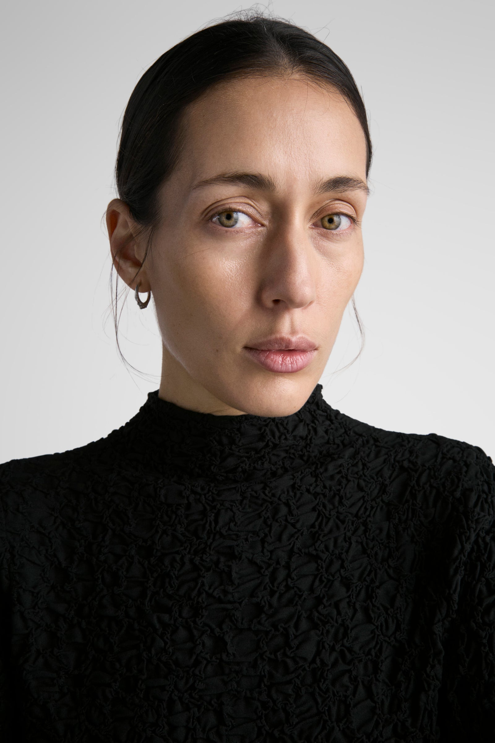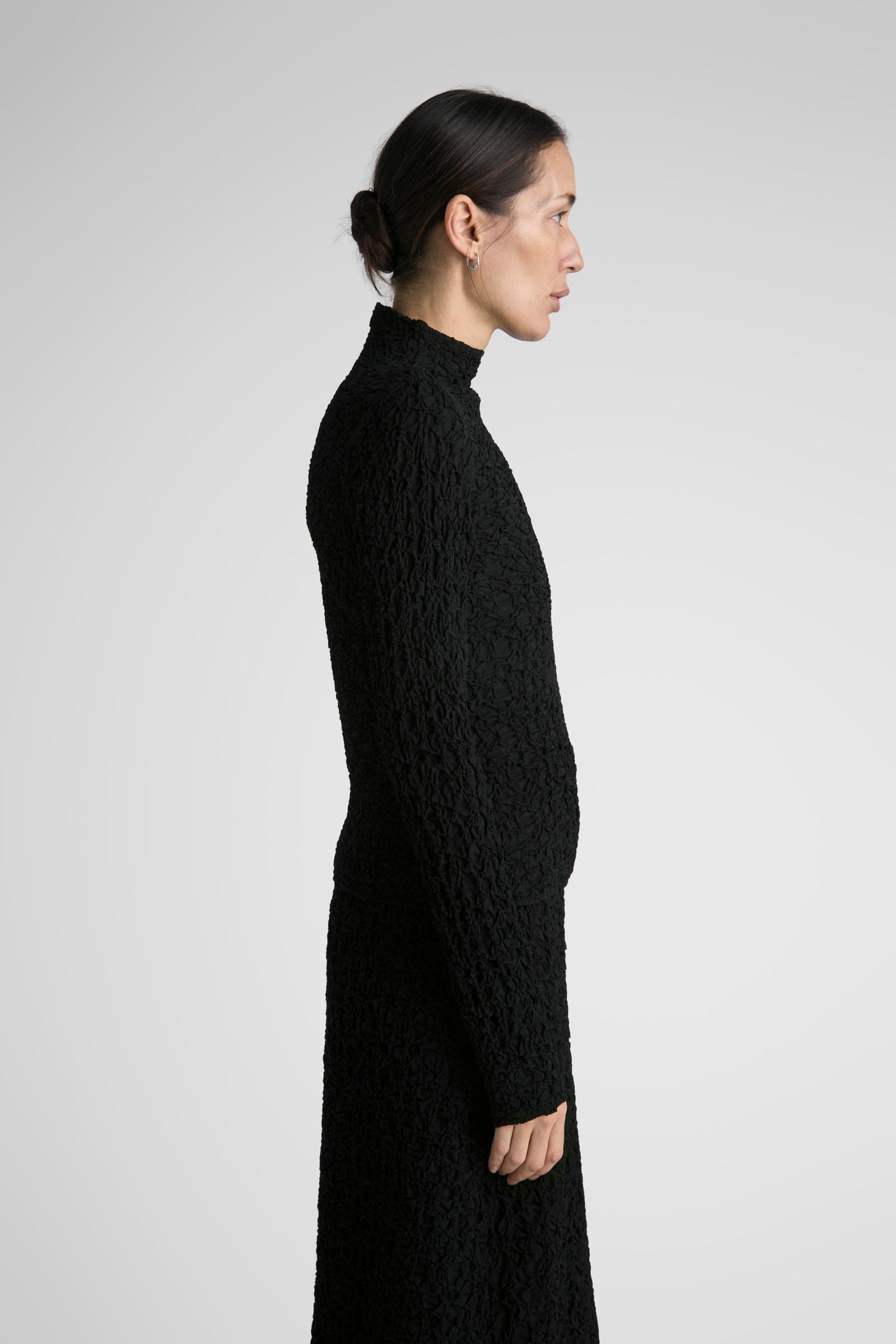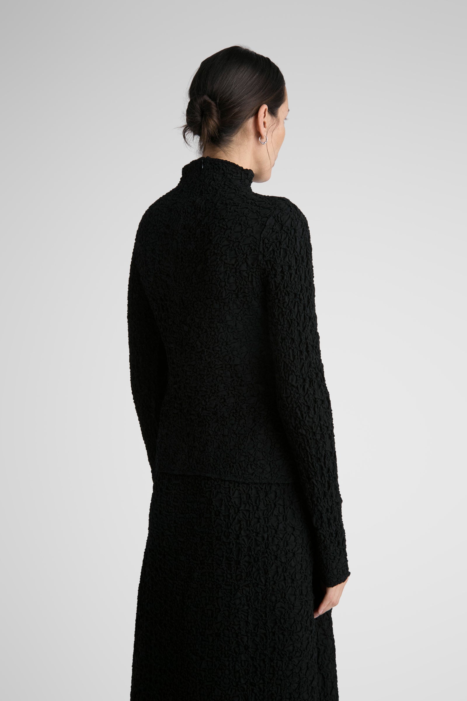Noni features a funnel neck, bubbly texture with a comfortable stretch. Fits a variety of shapes, and mold to the body.