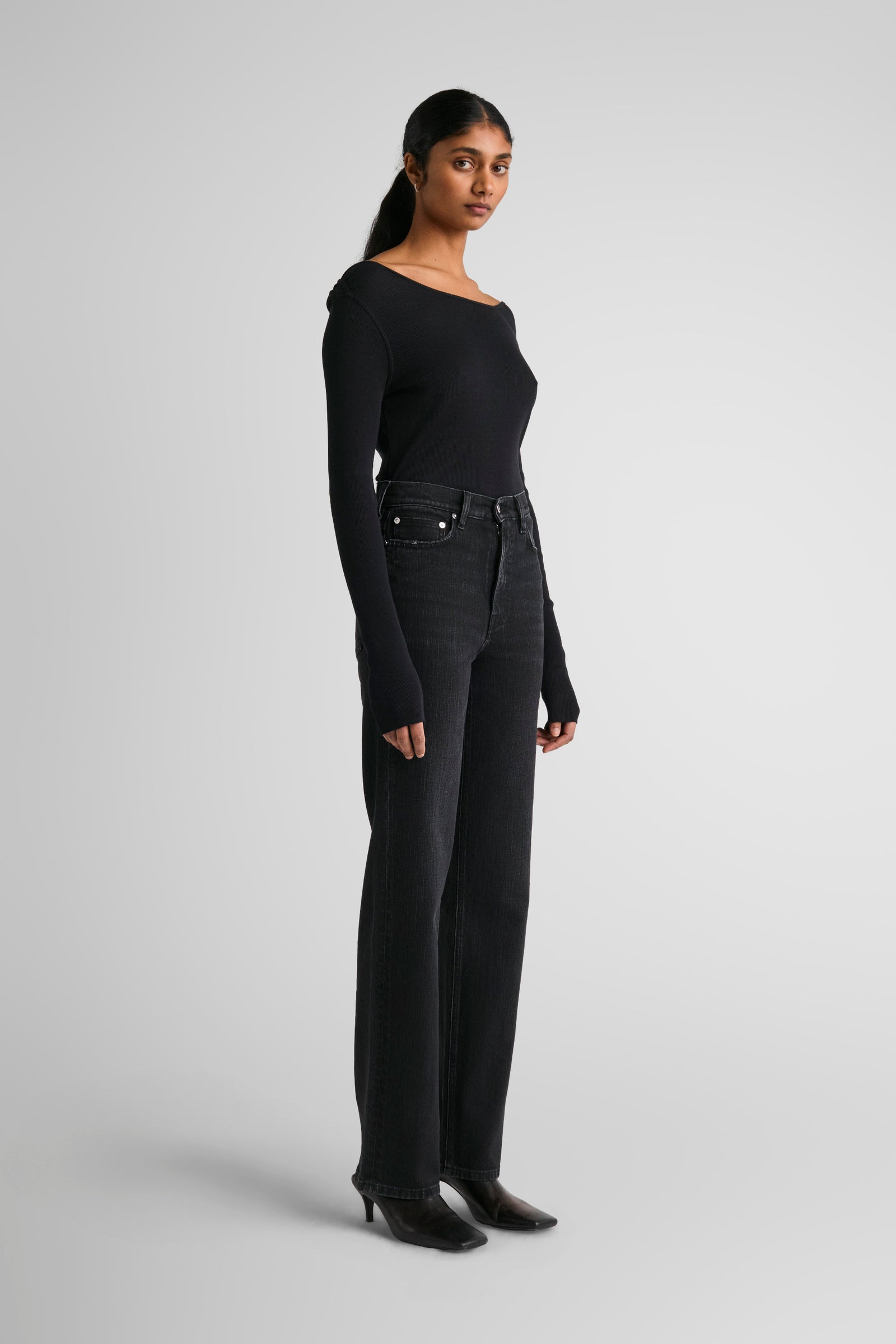 Page features a slim straight silhouette and fit, with a mid-rise. Slim and straight through hip and thigh, and straight from the knee down.