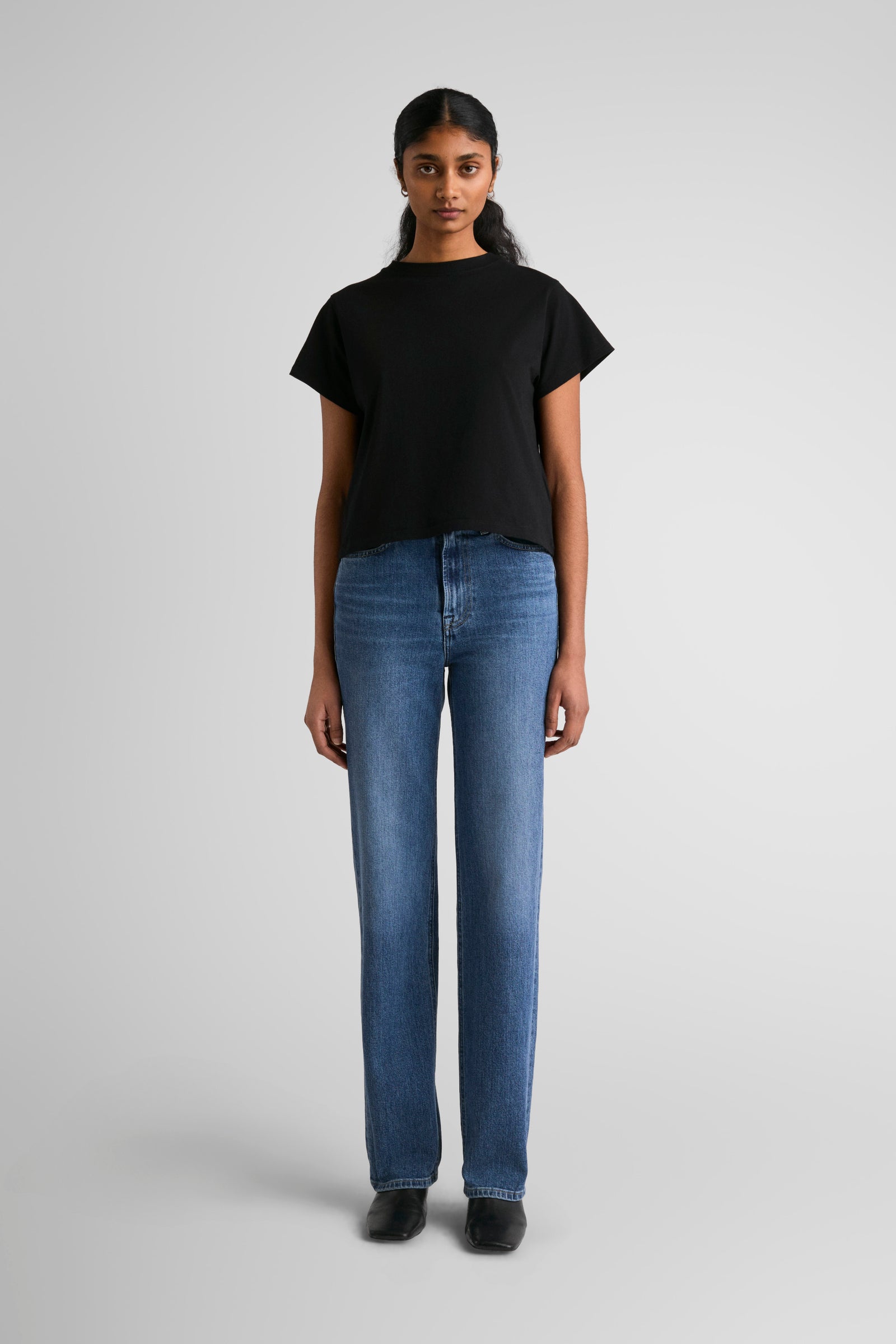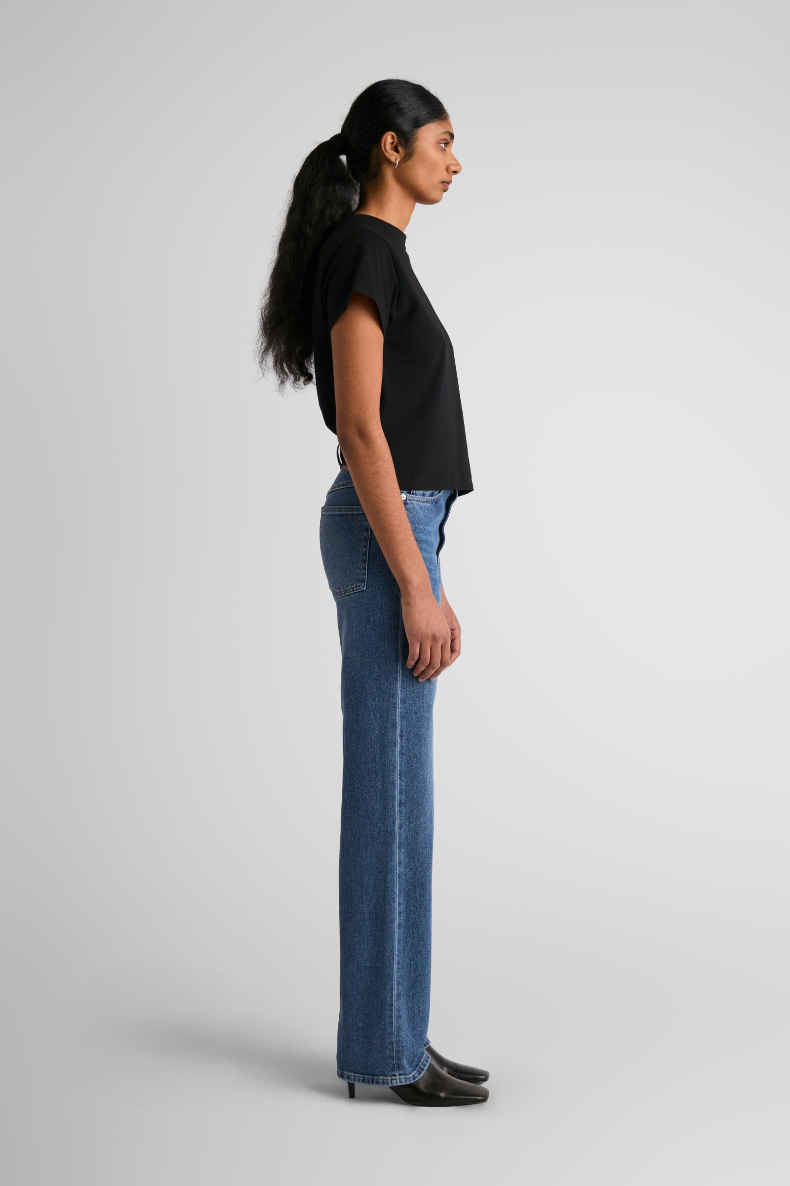 Page features a slim straight silhouette and fit, with a mid-rise. Slim and straight through hip and thigh, and straight from the knee down.