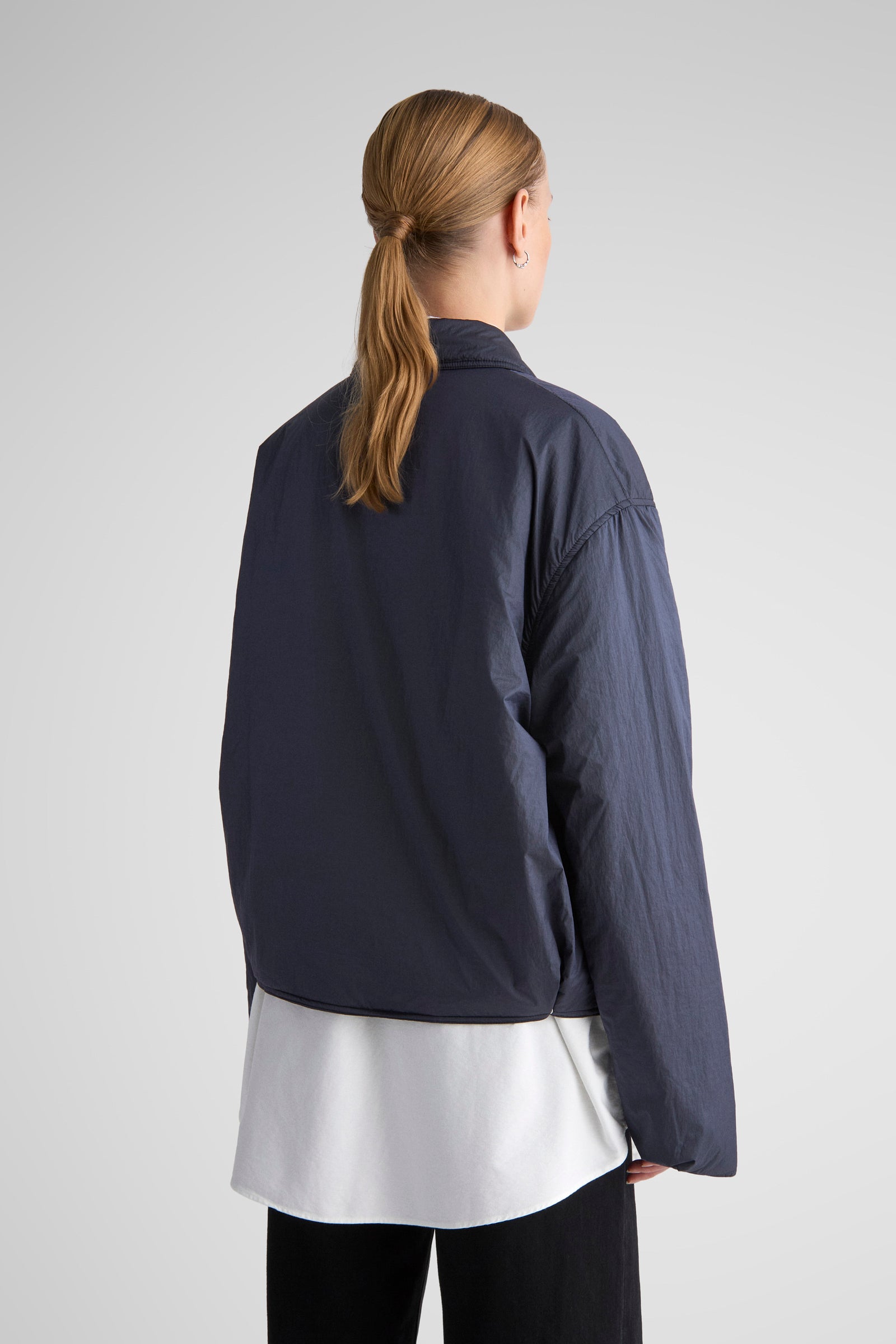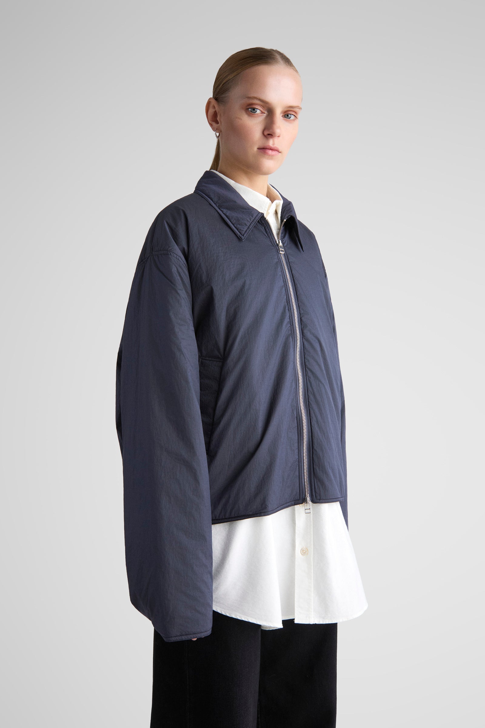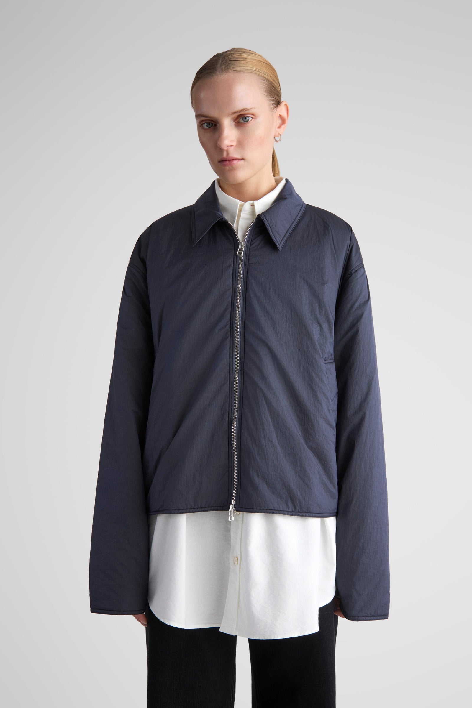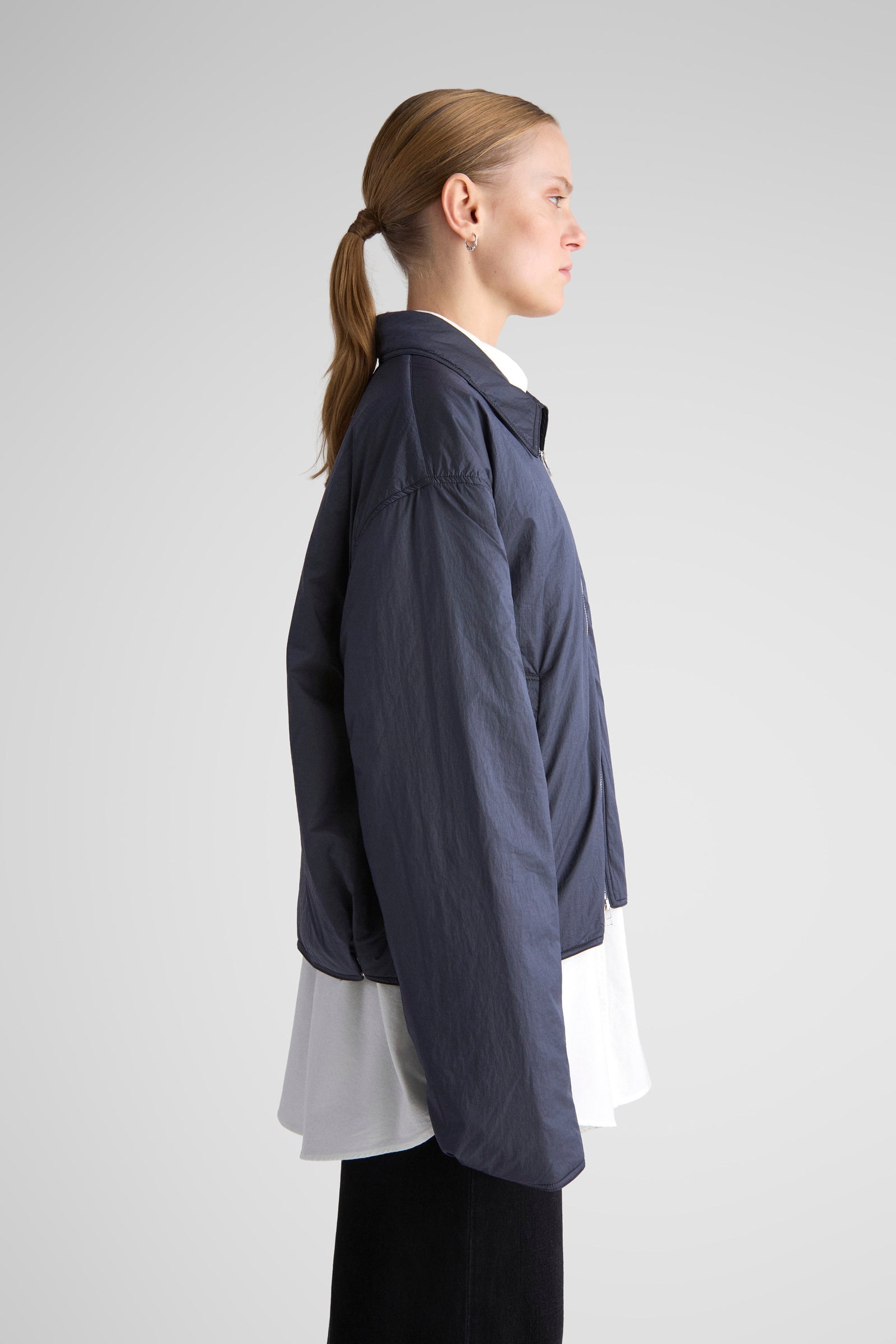 Made with an ultralight technical material made by Olmetex in Italy, and insulated with Primaloft silver, the Pen jacket protects you against the elements with comfortable warmth. The boxy fit with dropped shoulders, a relaxed body and slightly cropped length makes it a perfect layering piece. Riri button fastening at the cuffs and side seams let you easily adjust the fit. Hand warmer pockets at the waist.