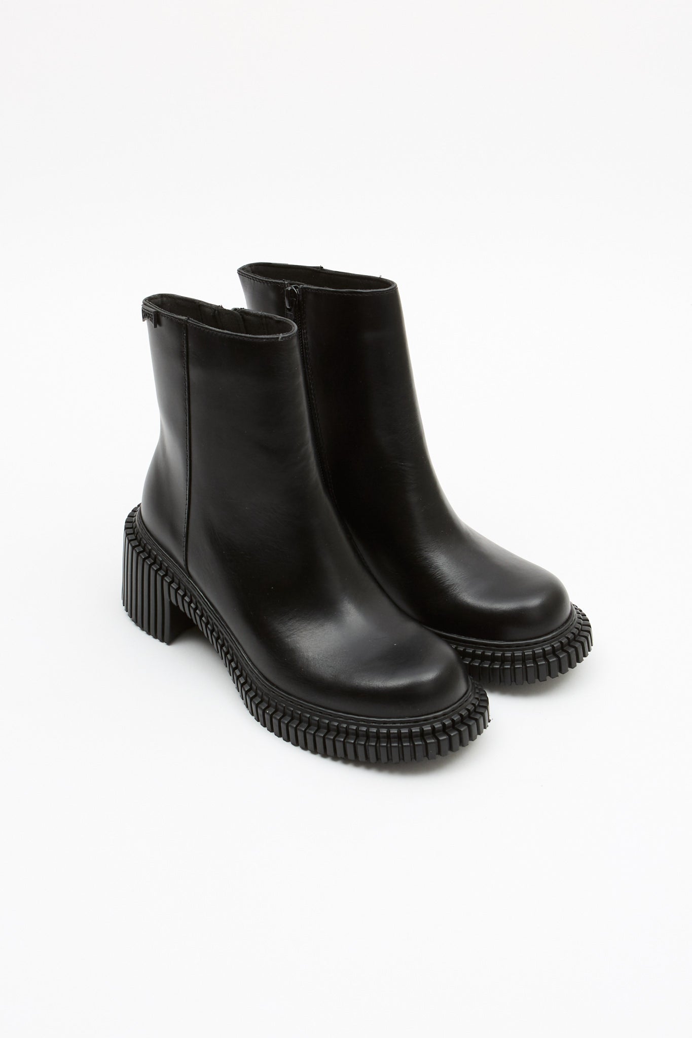 Camper's Pix London side-zip boot features a shiny calfskin upper, matched with a bold and chunky, yet super lightweight platform outsole.