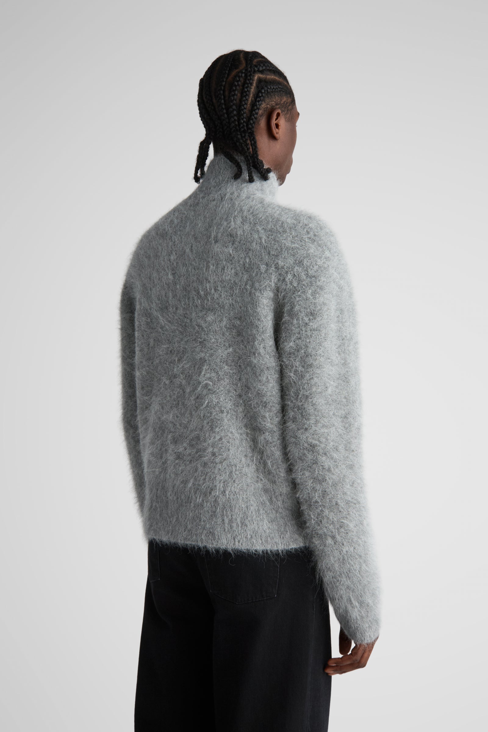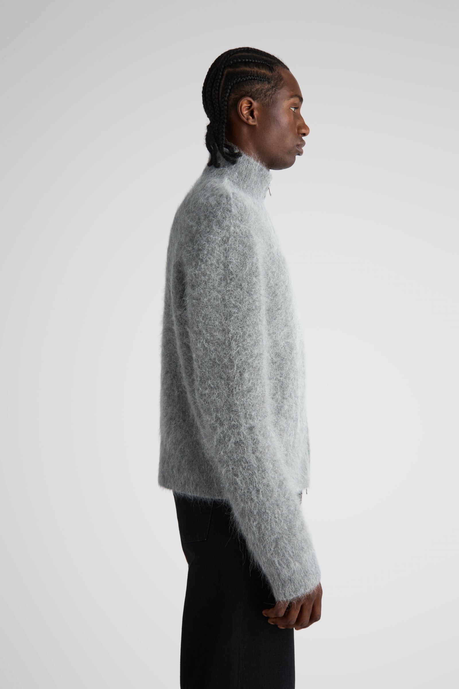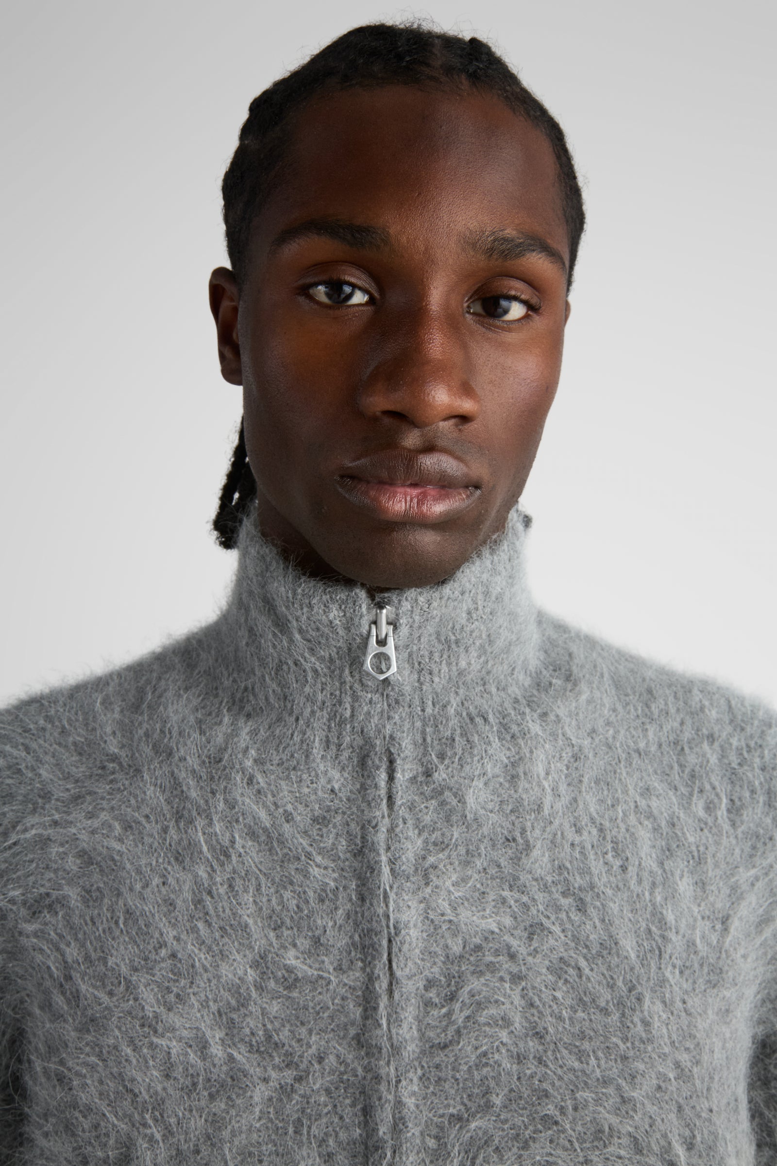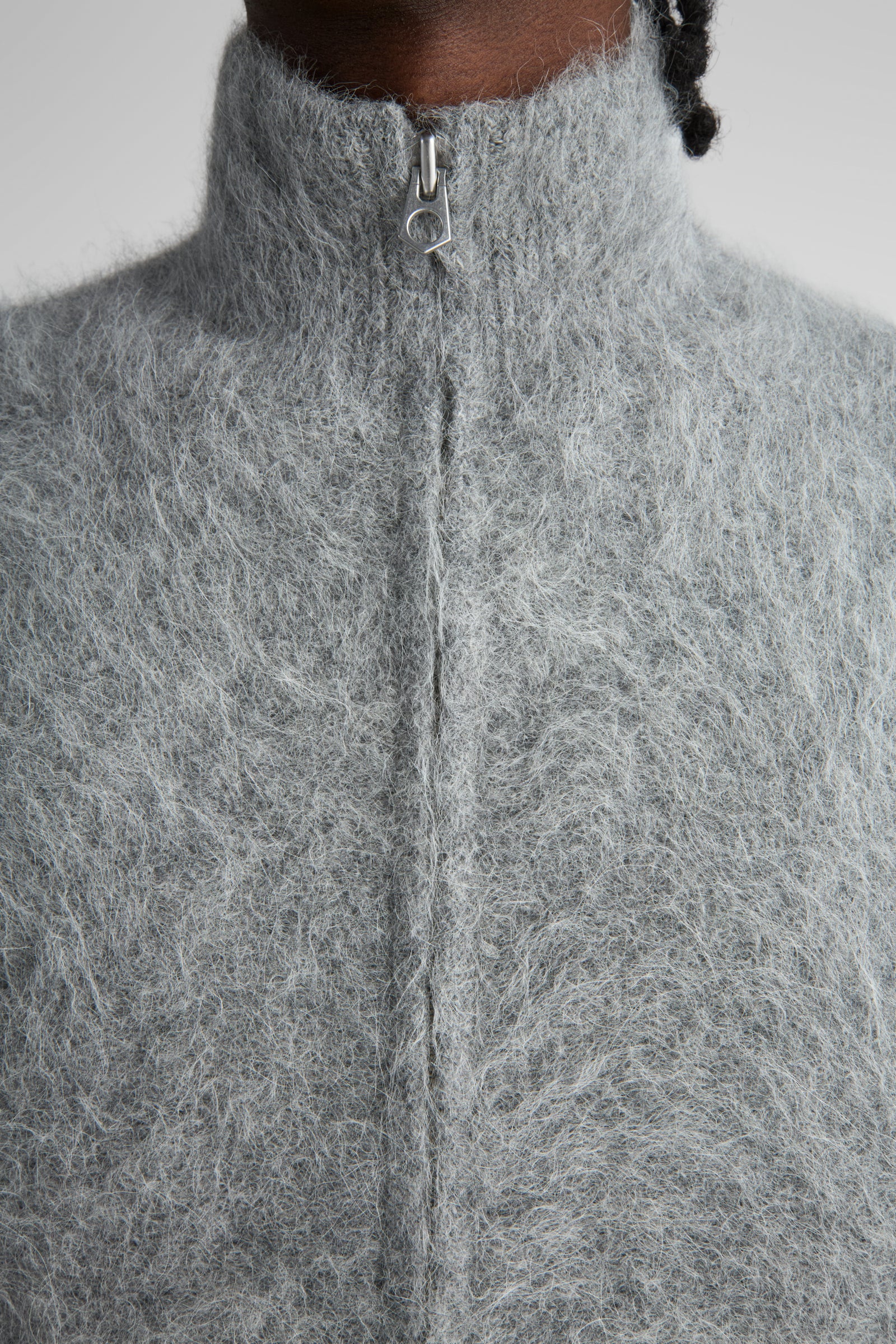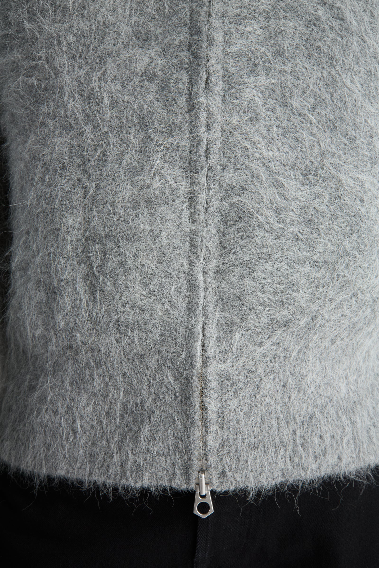 Pull, our hefty alpaca zip-sweater. Made with a stand up collar and a two-way zip, with dropped shoulders, a relaxed fit and a straight hem.