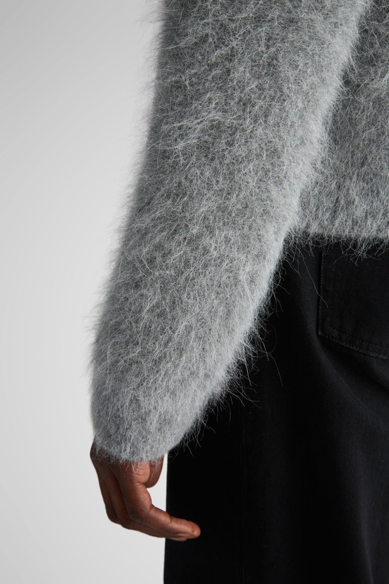 Knitted in a chunky, soft and extra fluffy alpaca yarn. The pure alpaca is spun around a nylon core for durability, with a touch of spandex to keep its shape over time.
