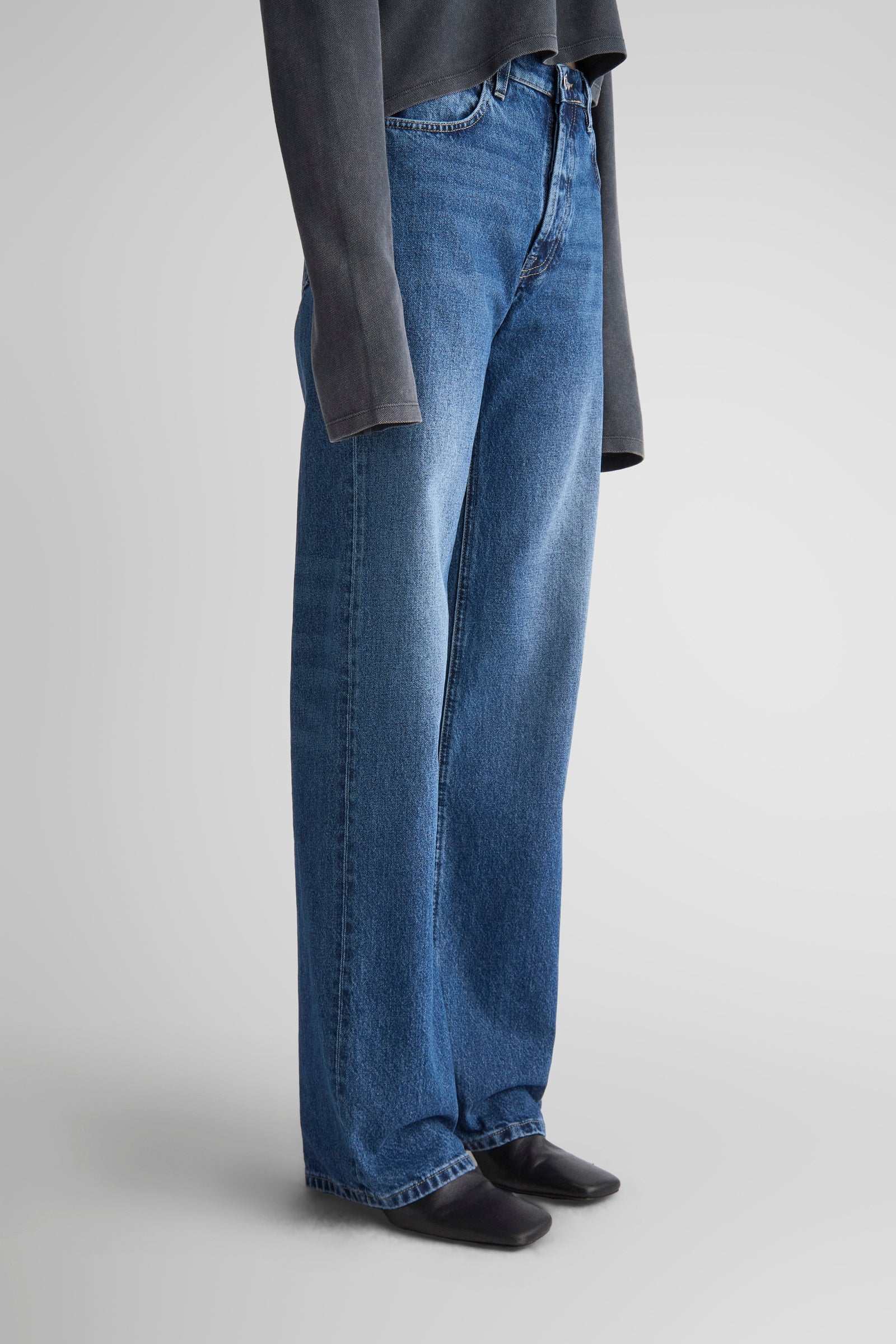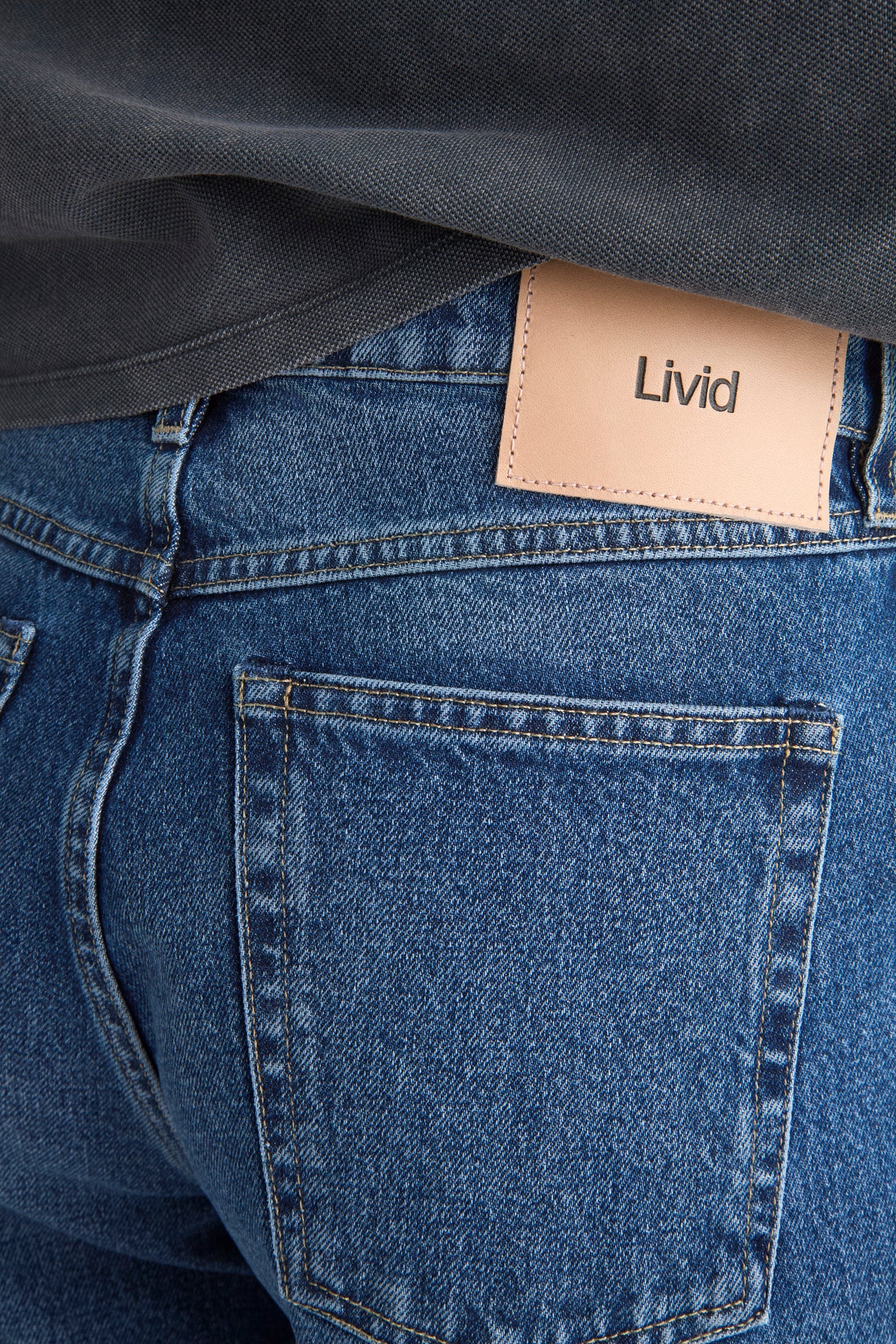 - Mid-blue washed rope-dyed indigo denim