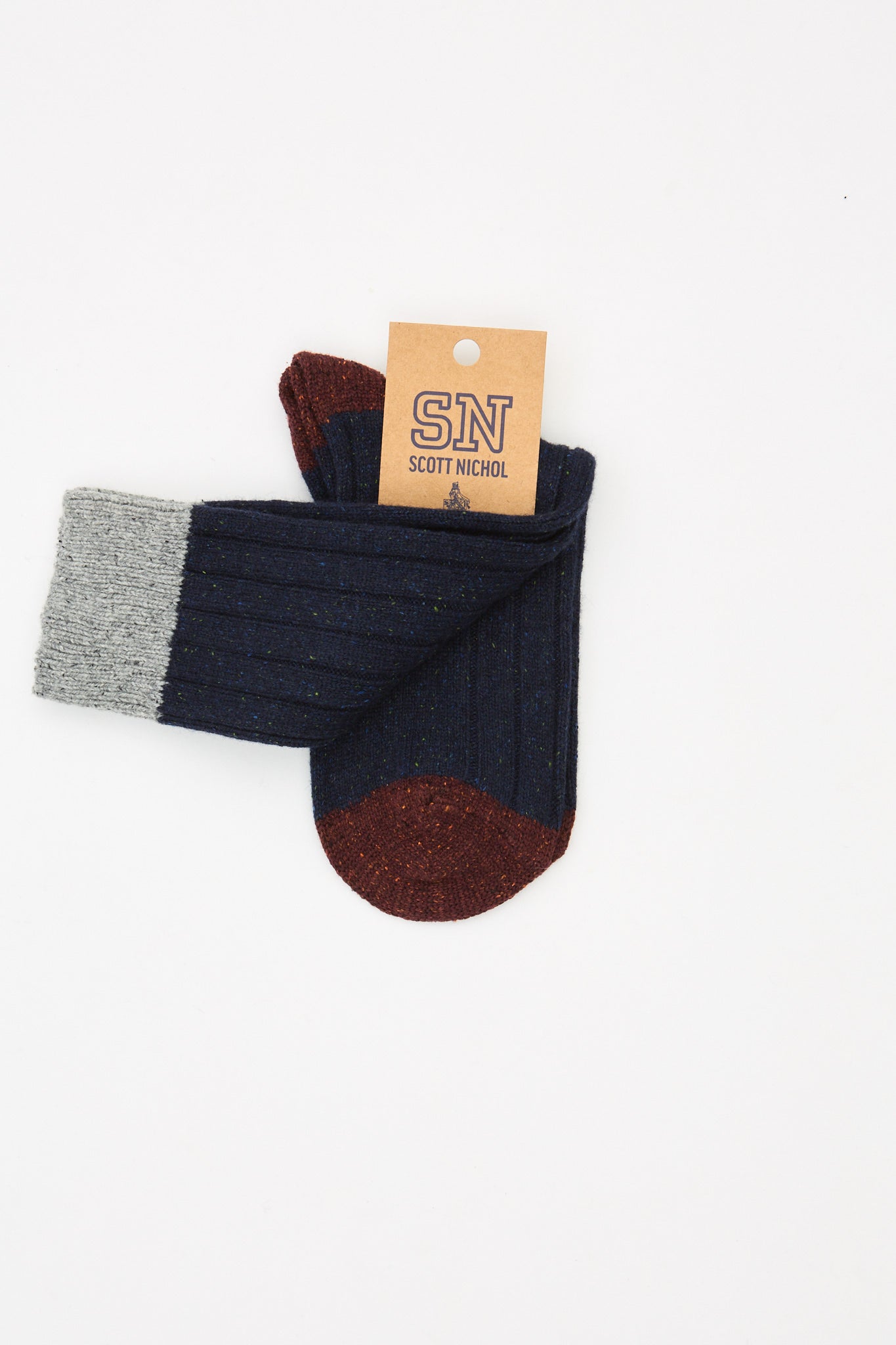 These Scott-Nichol wool socks are knitted in a warm and soft merino/silk blend, with a touch of nylon for added fit and longevity.