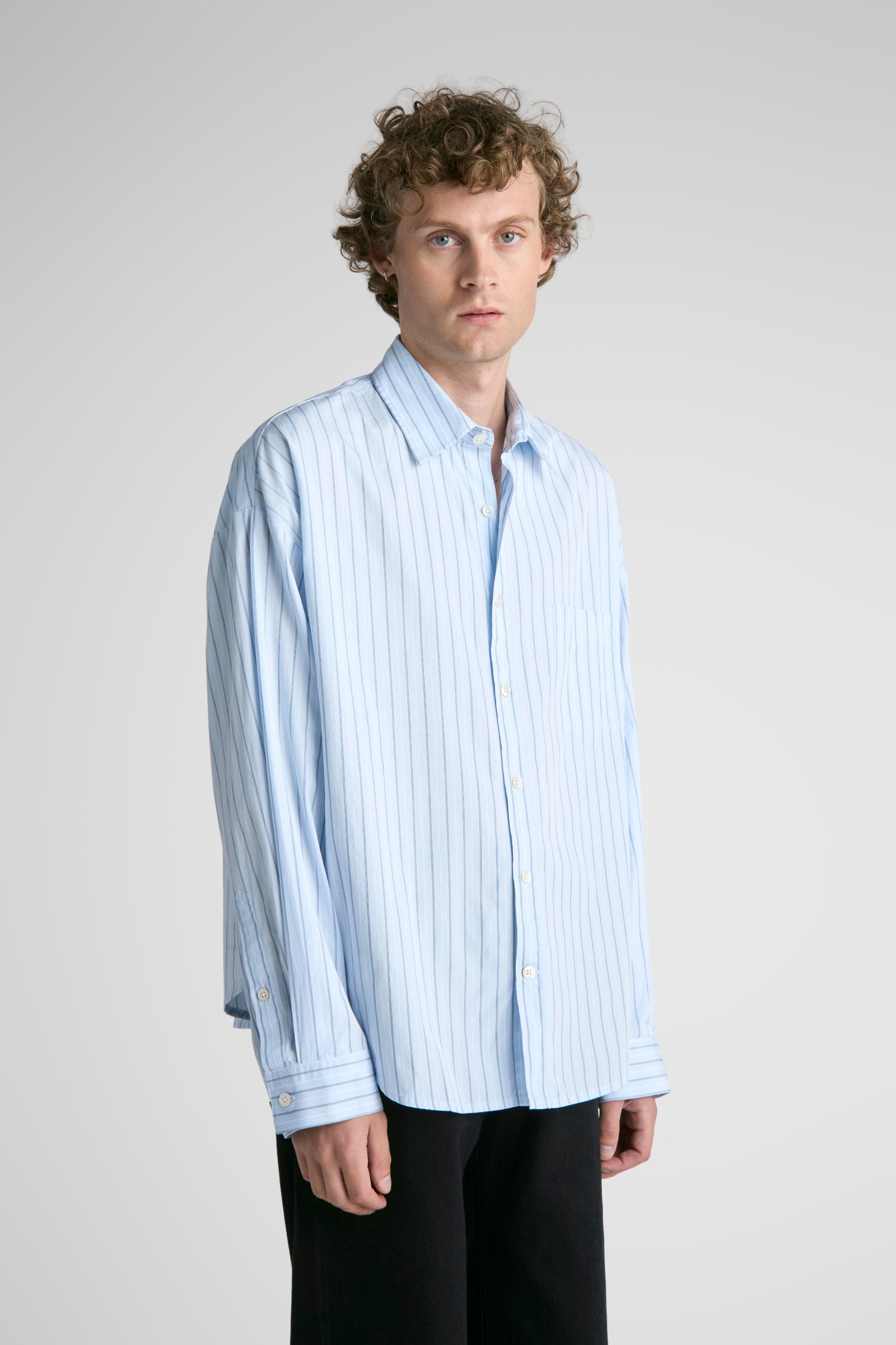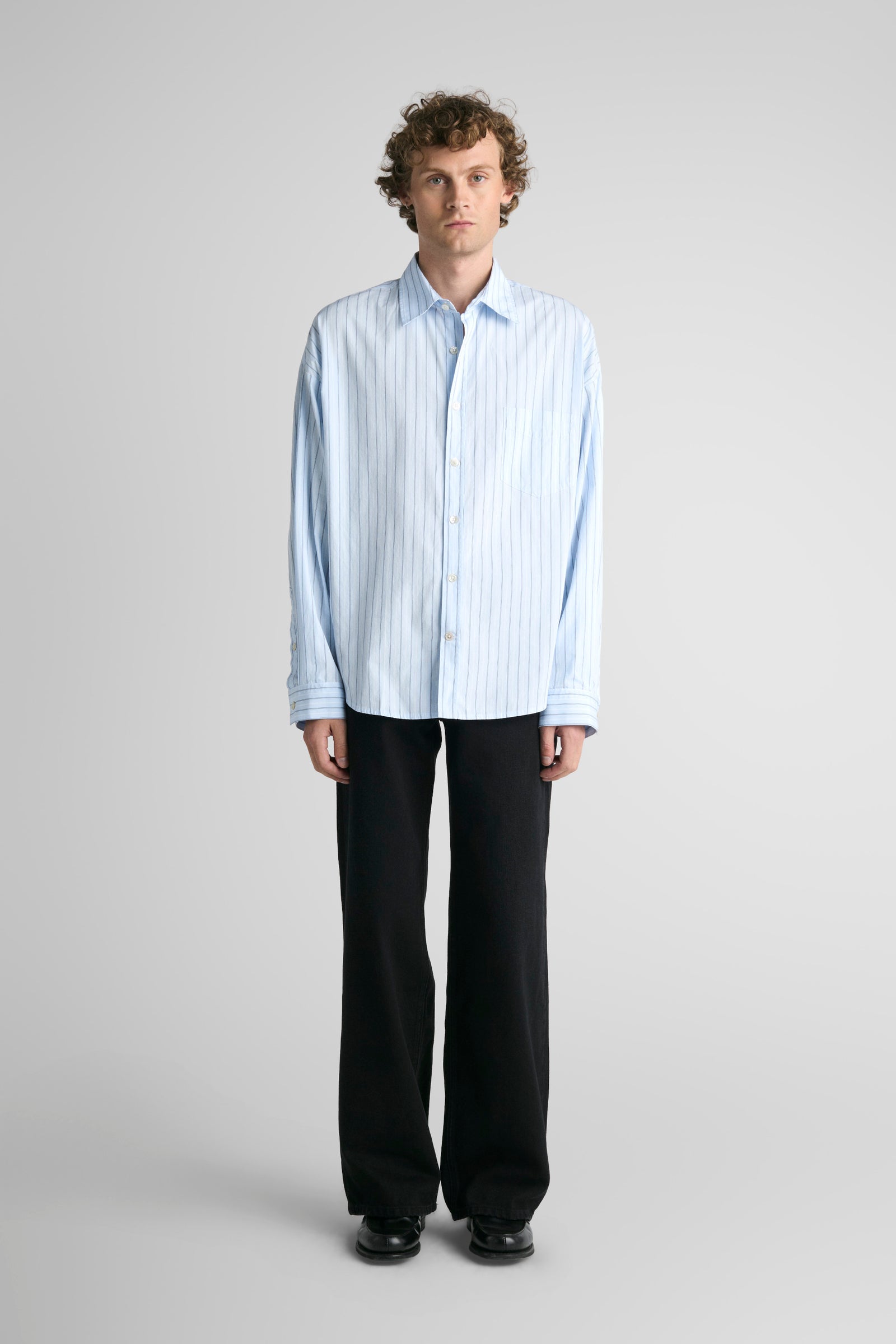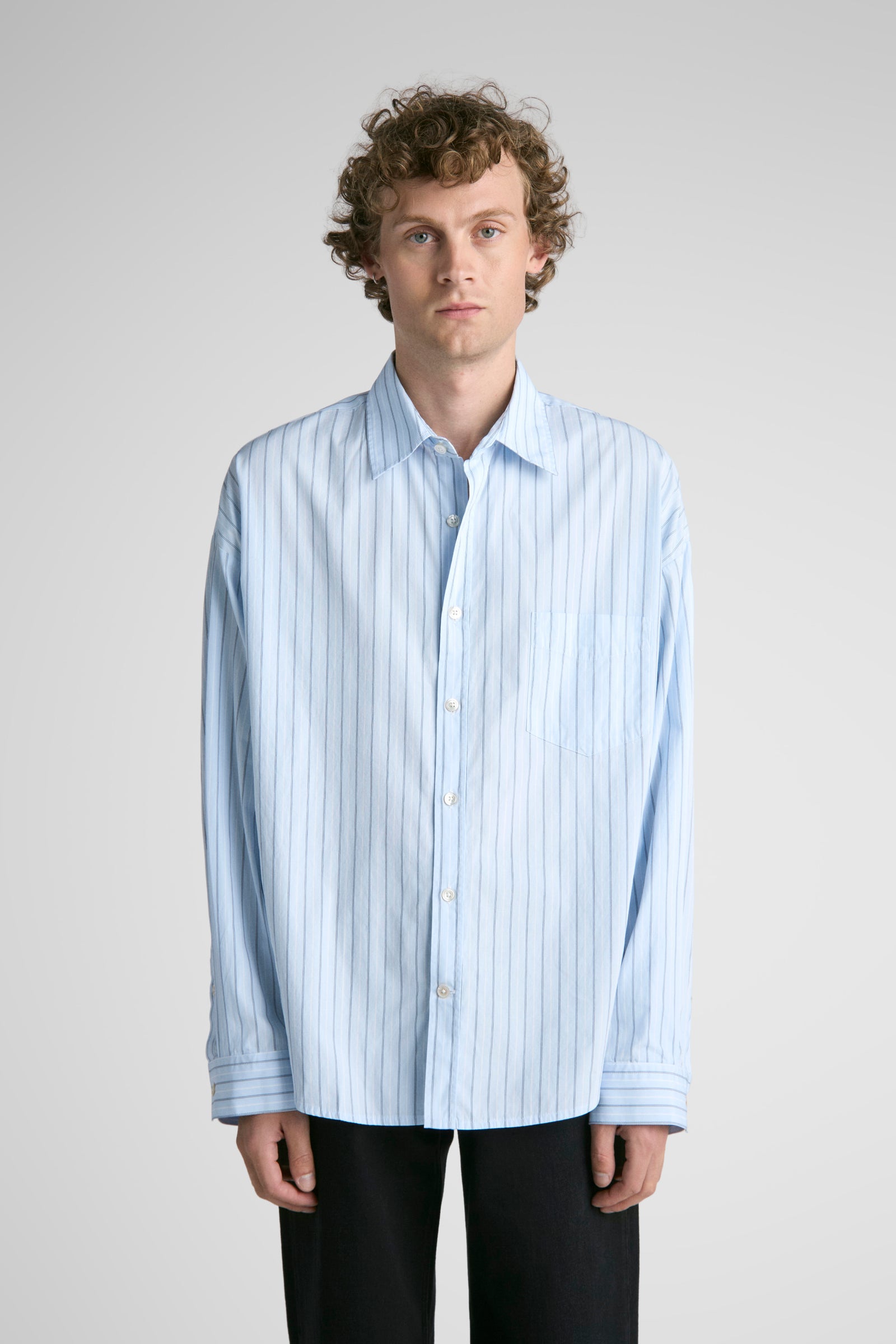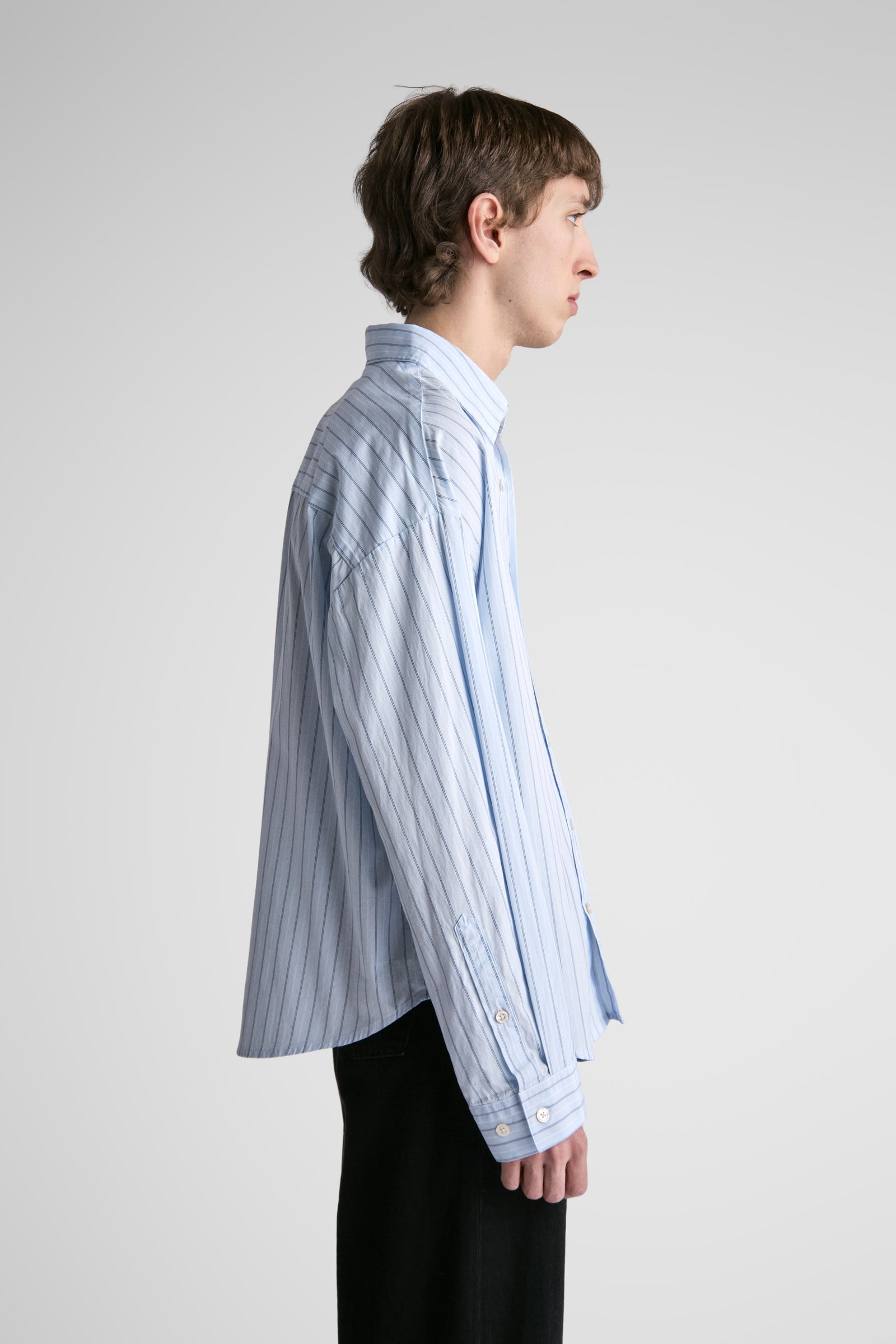 Tim features oversized proportions, dropped shoulders, bigger/wider body, with classic length and a softer curved hem. A shorter version of our unisex big shirt.