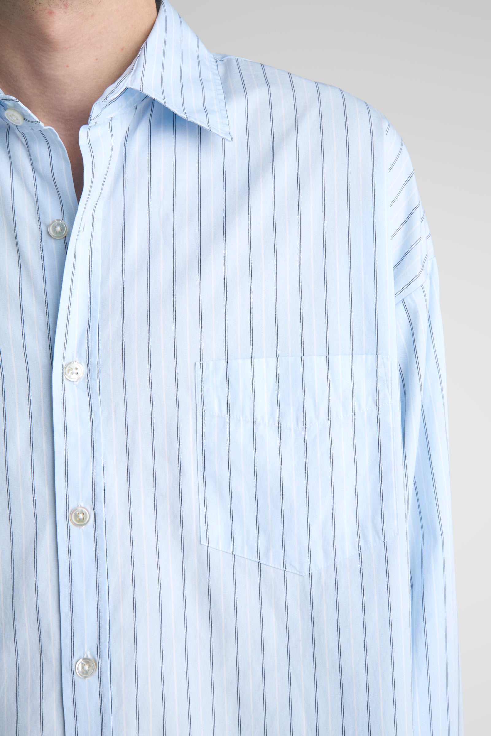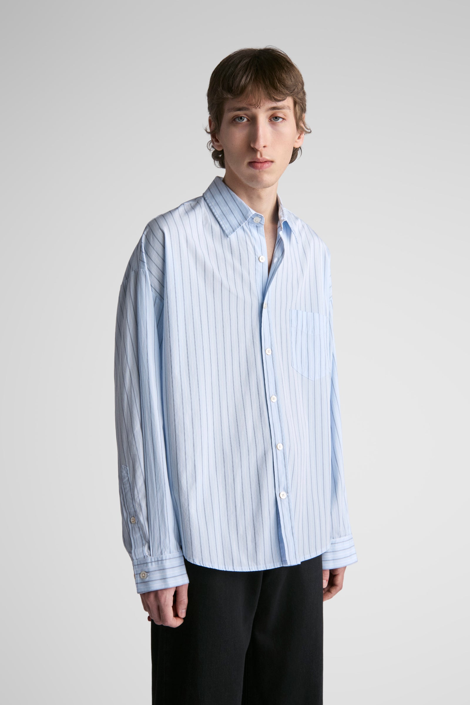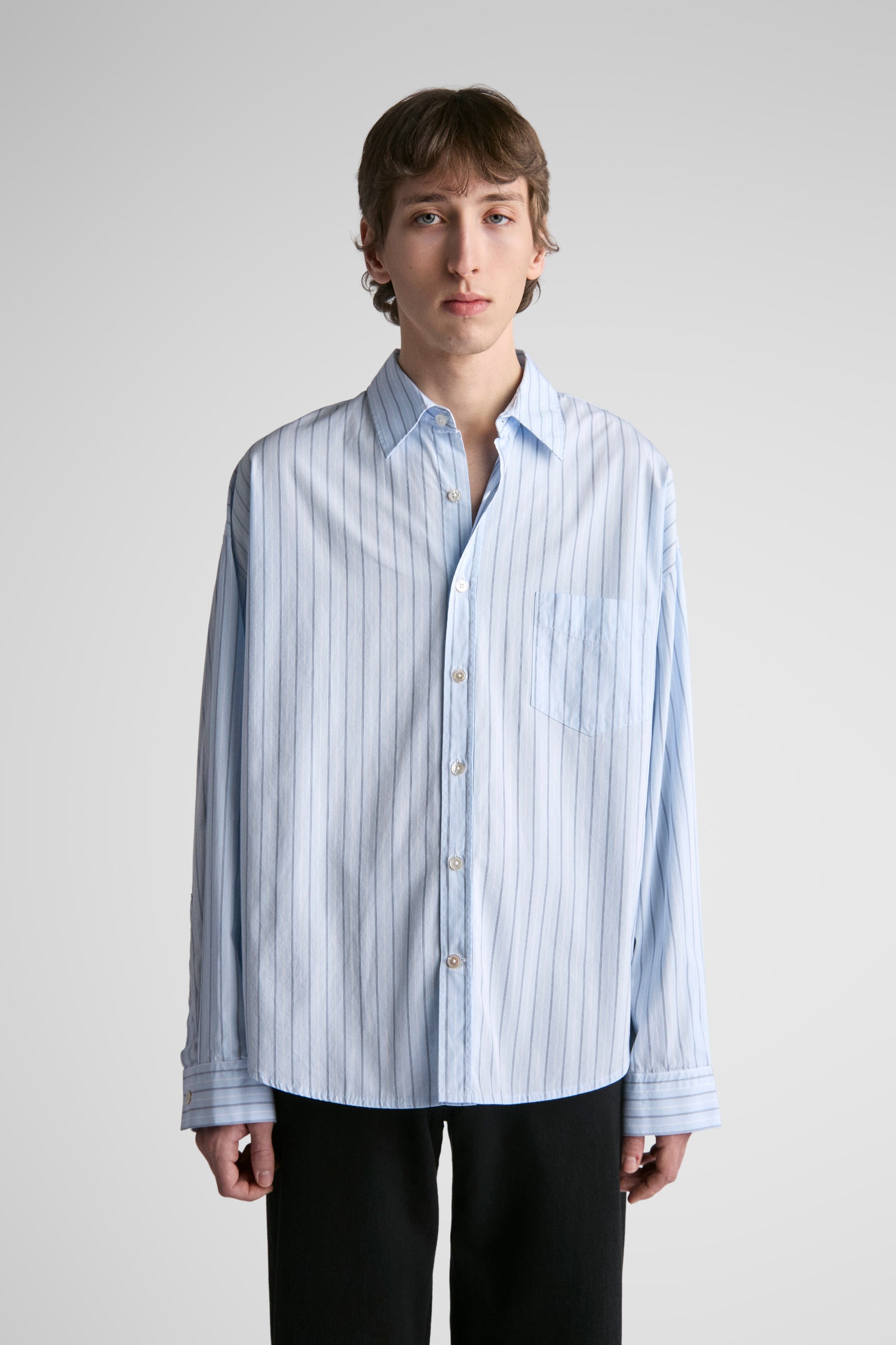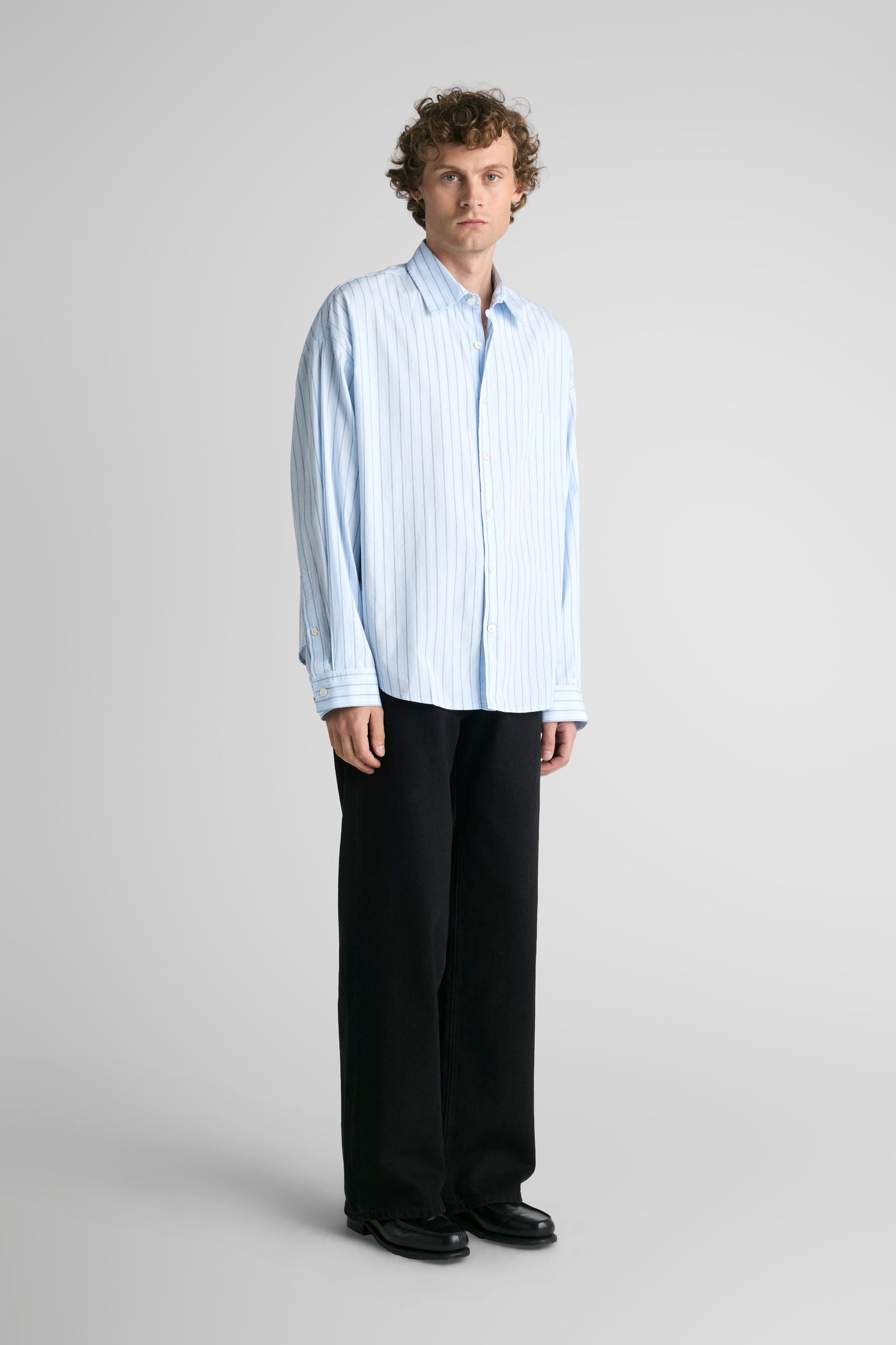 Tim features oversized proportions, dropped shoulders, bigger/wider body, with classic length and a softer curved hem. A shorter version of our unisex big shirt.