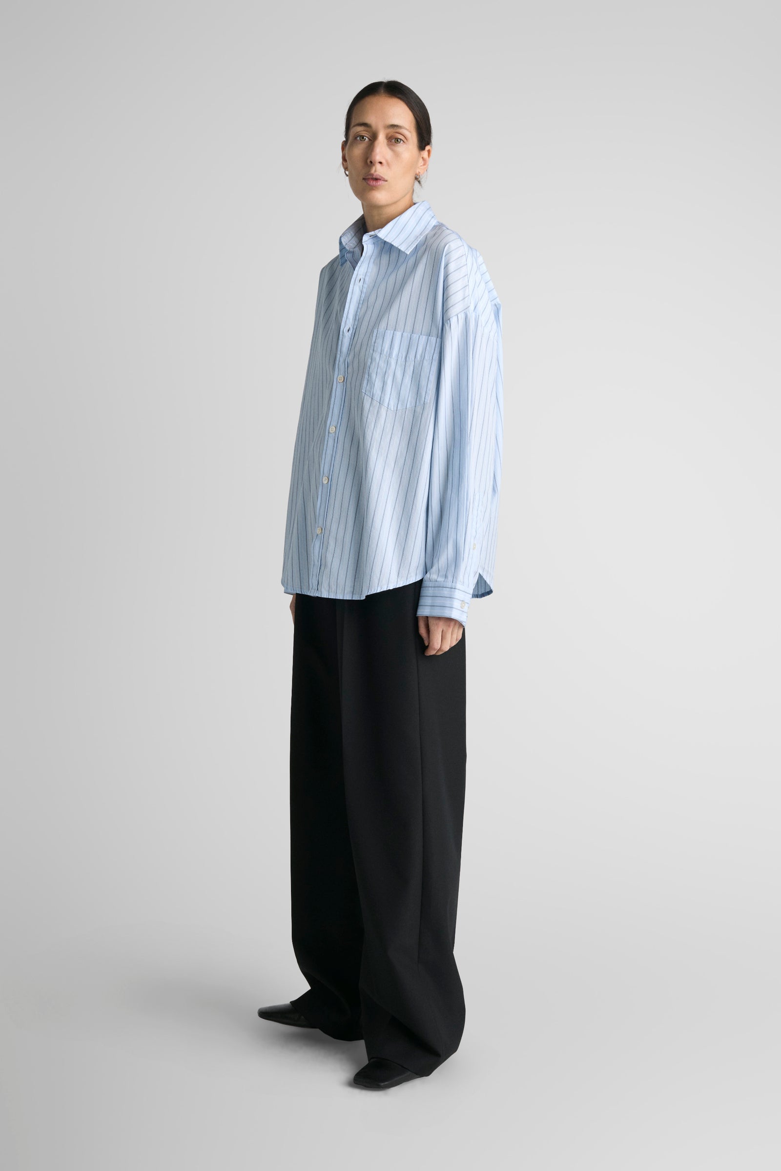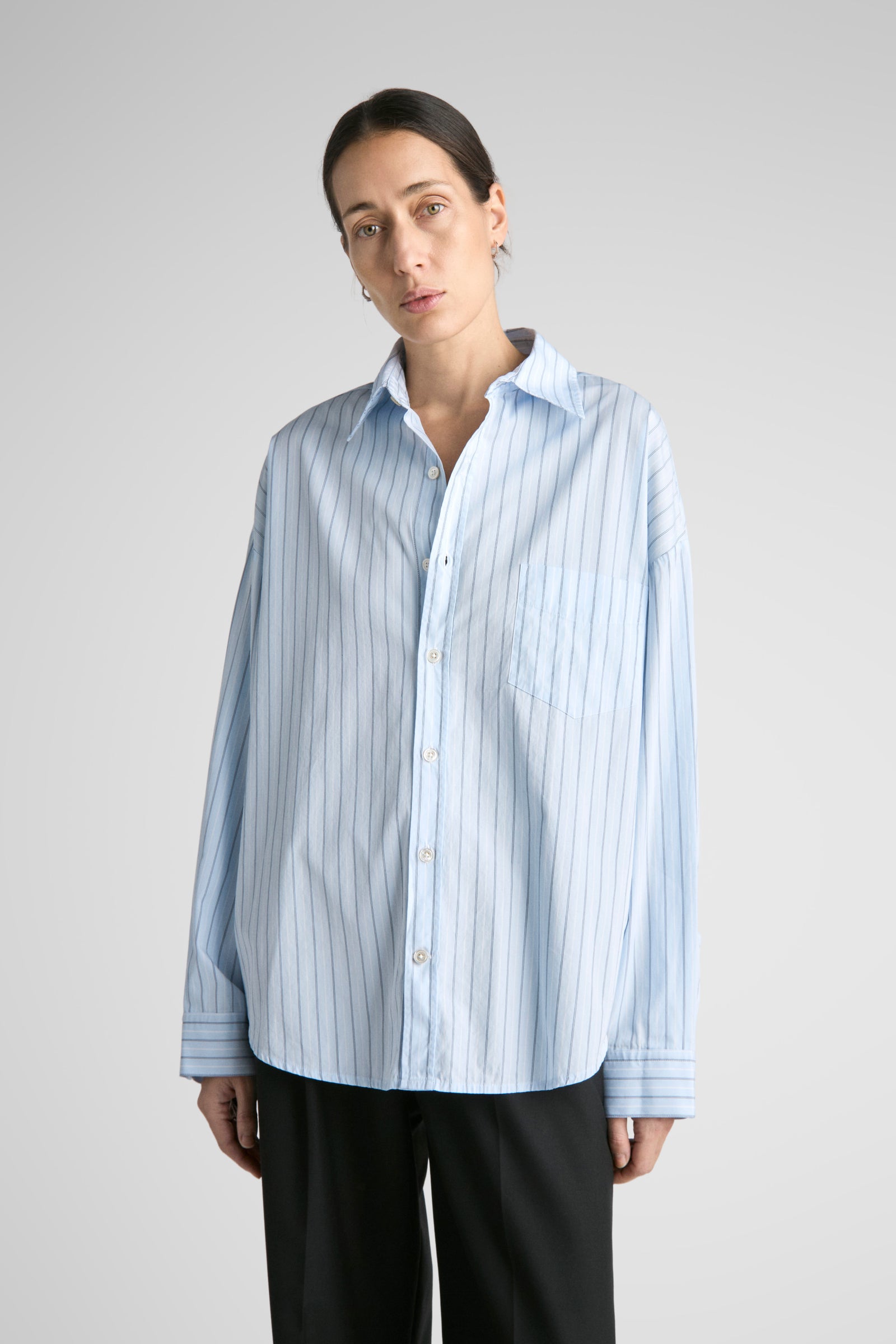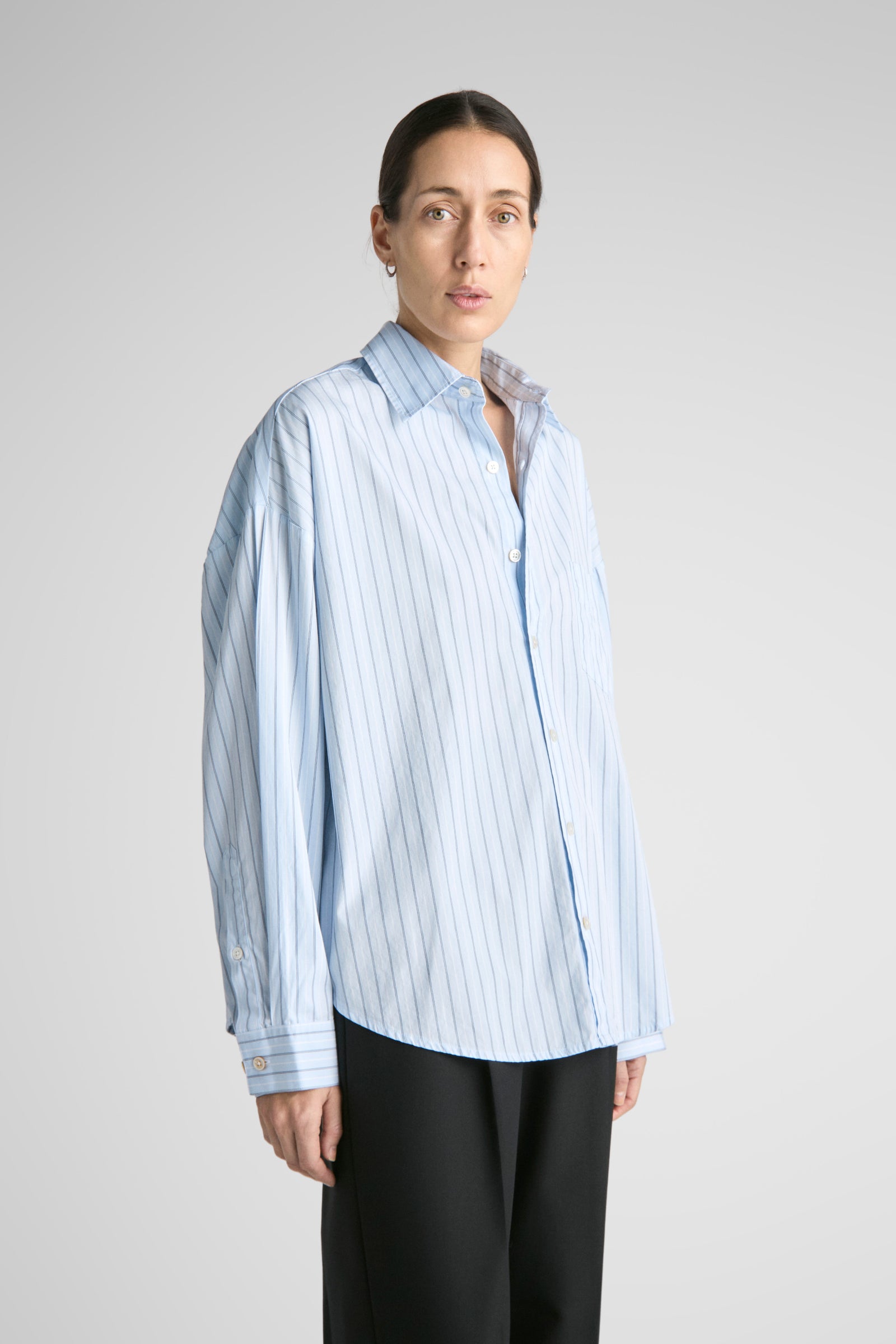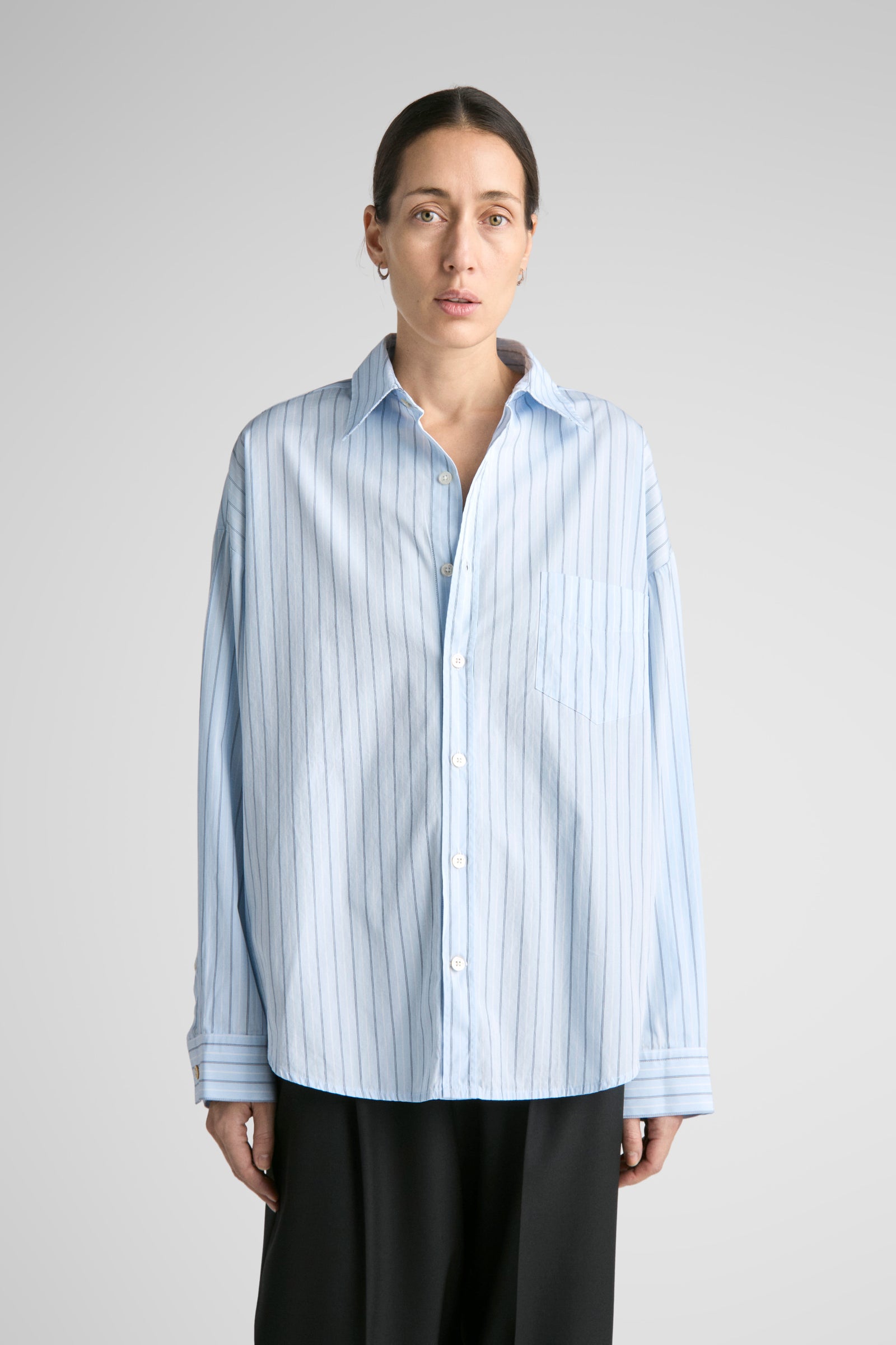 Tim features oversized proportions, dropped shoulders, bigger/wider body, with classic length and a softer curved hem. A shorter version of our unisex big shirt.