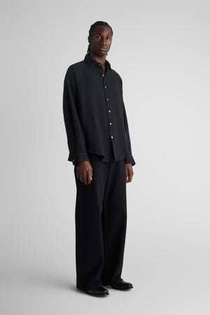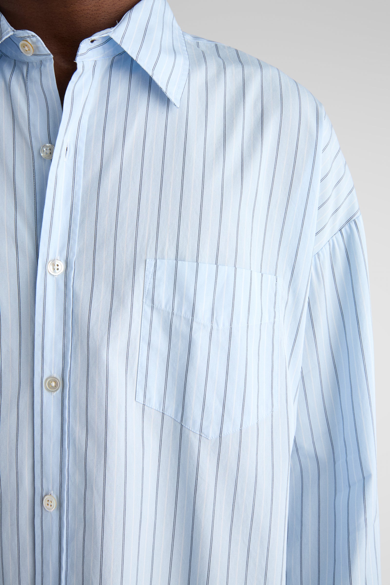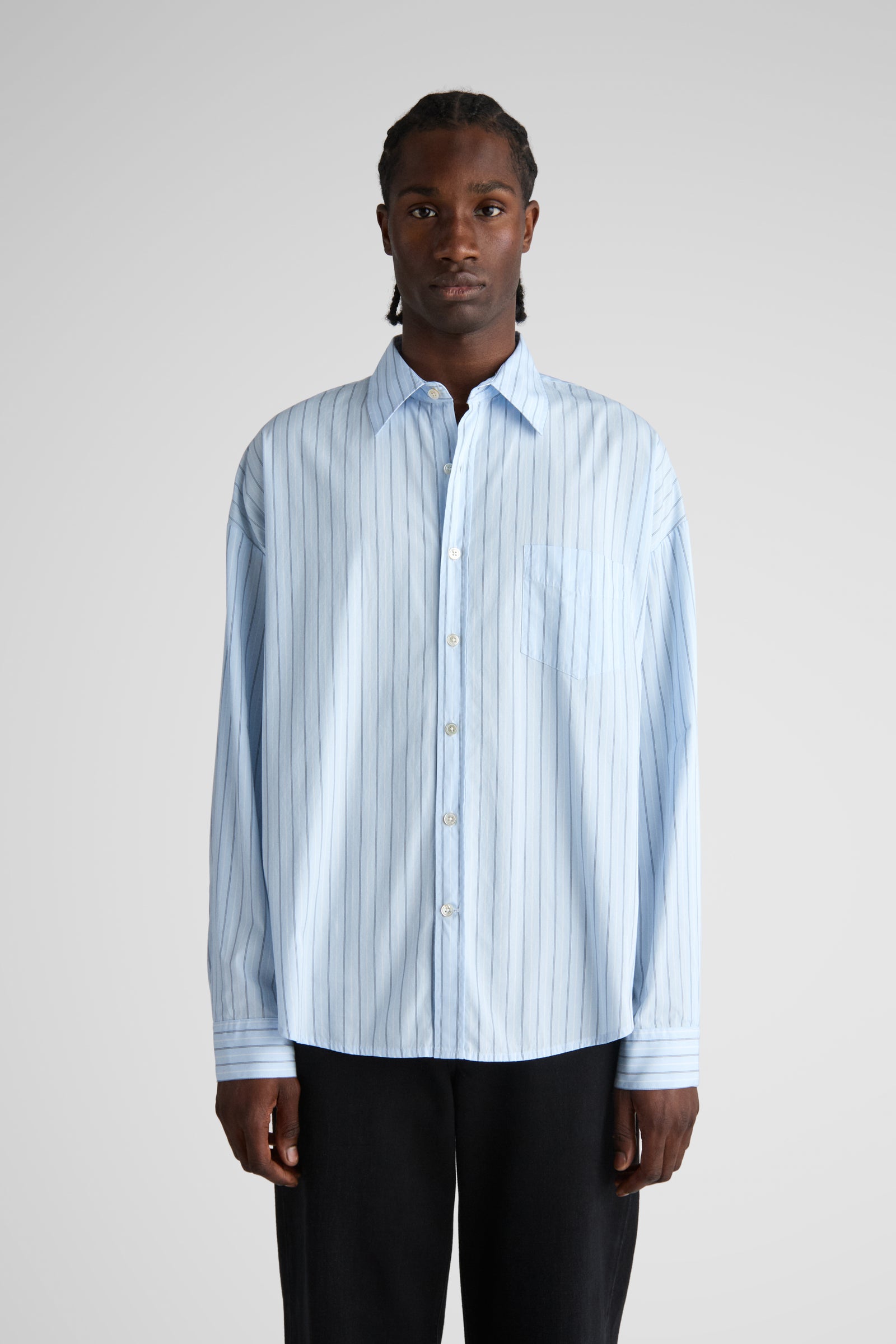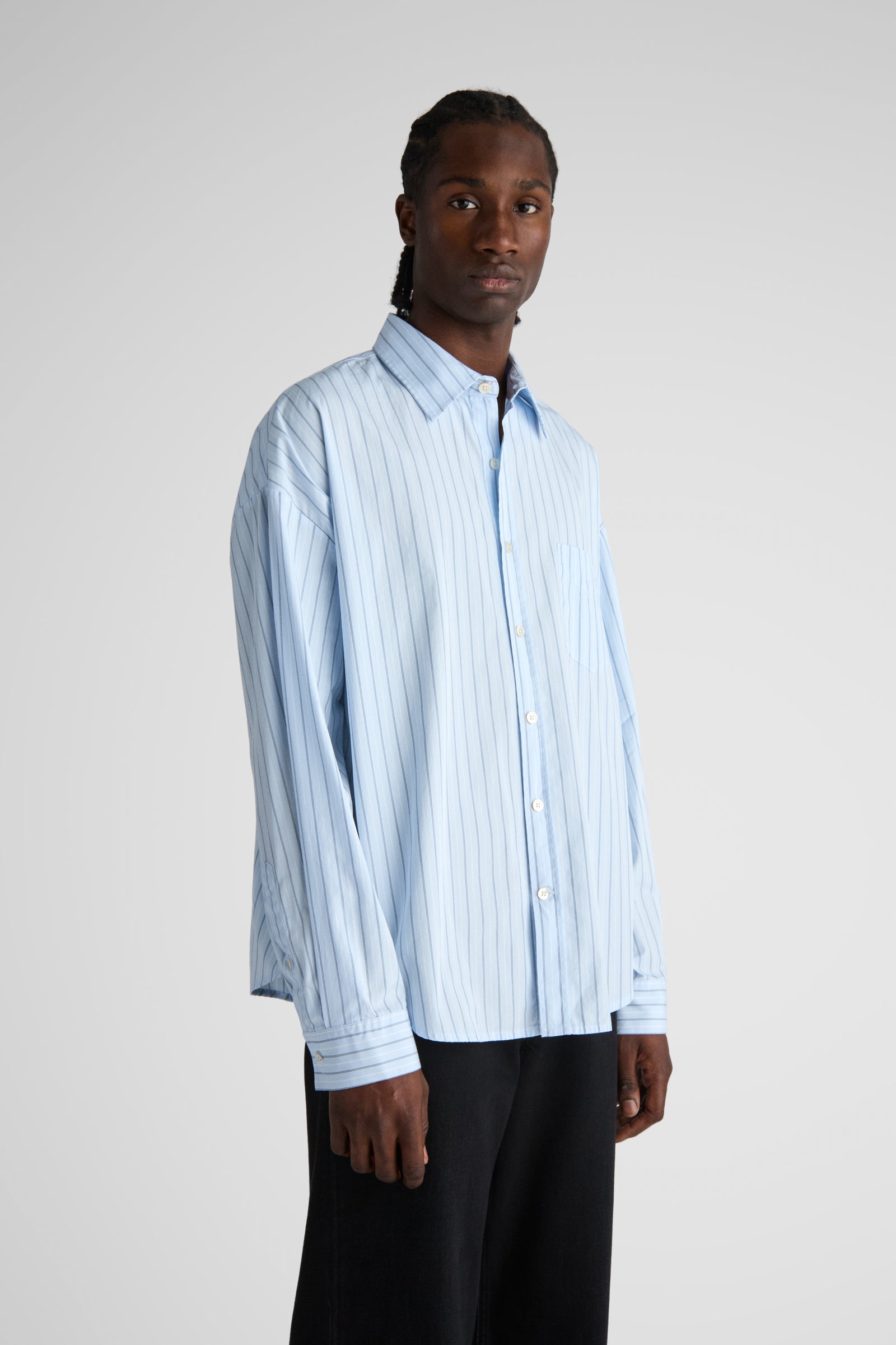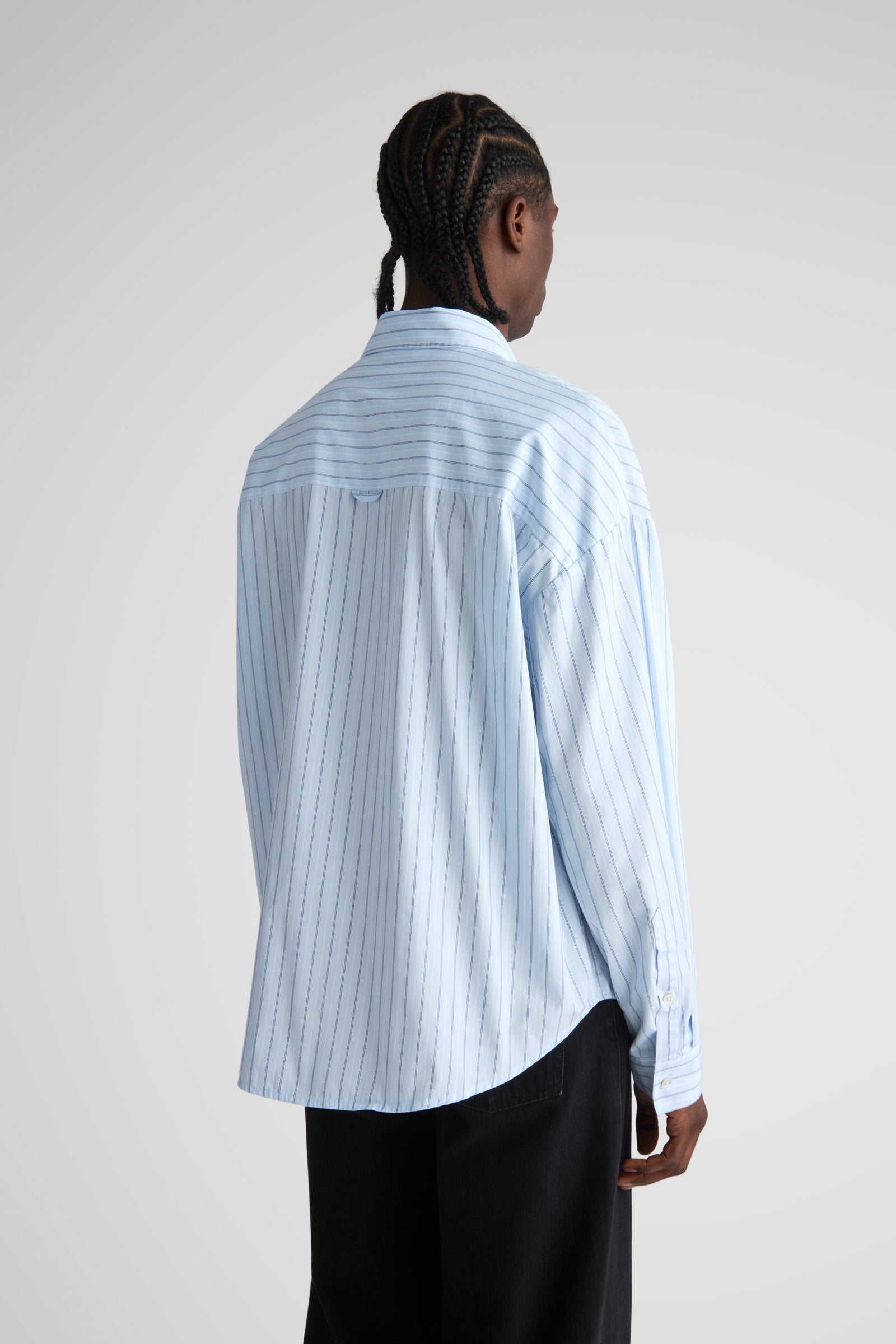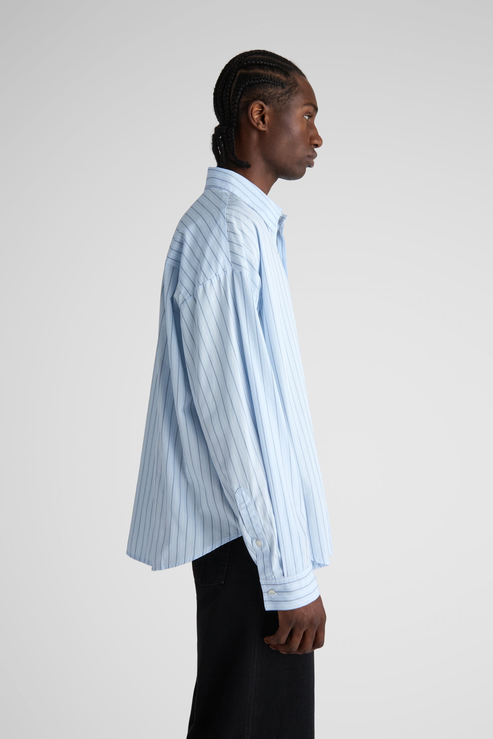 Tim, a shorter version of our unisex big shirt. Tim features oversized proportions with very dropped shoulders and a very wide body, but with a classic length and a softer curved hem.