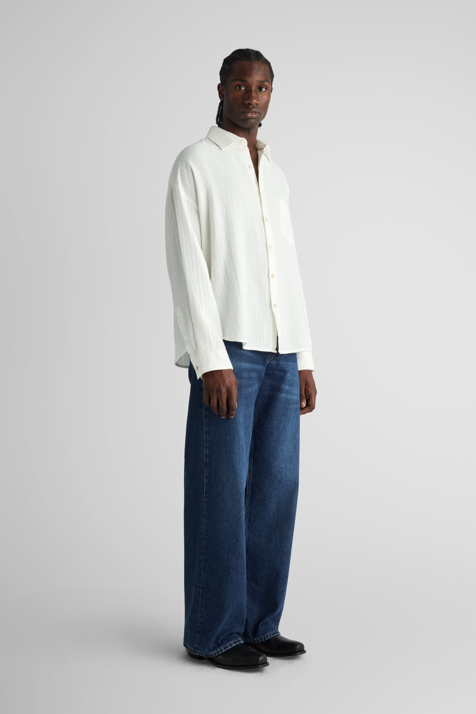 Tim, a shorter version of our unisex big shirt. Tim features oversized proportions with very dropped shoulders and a very wide body, but with a classic length and a softer curved hem.