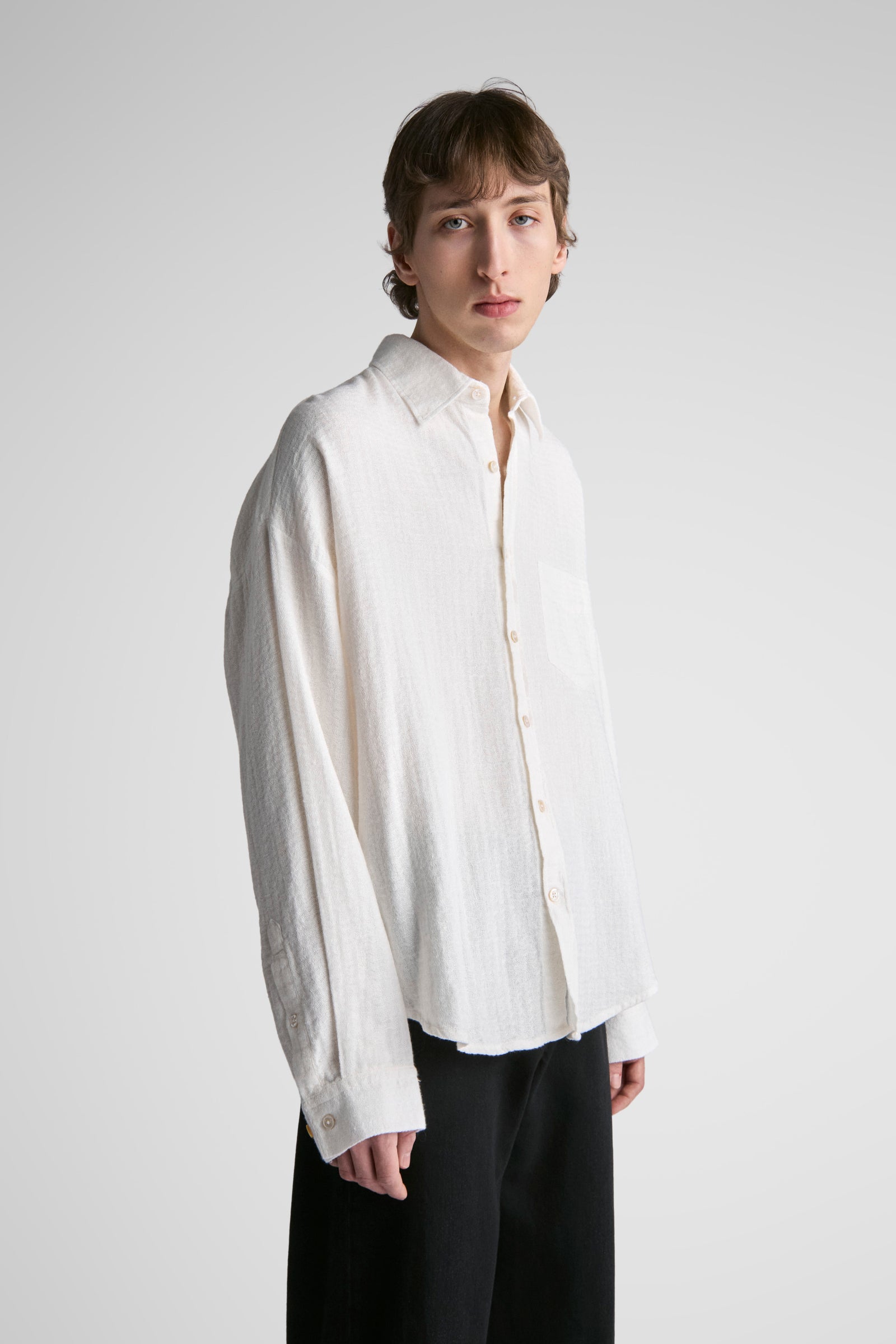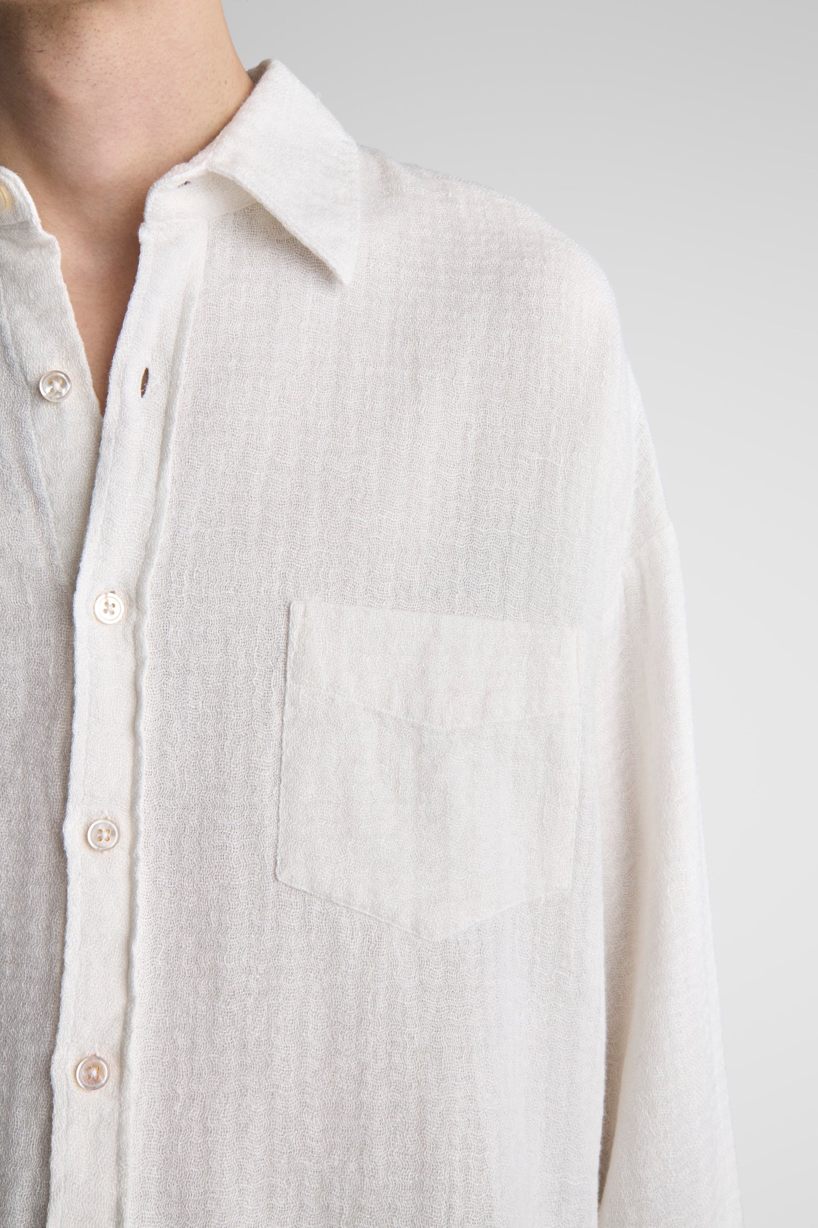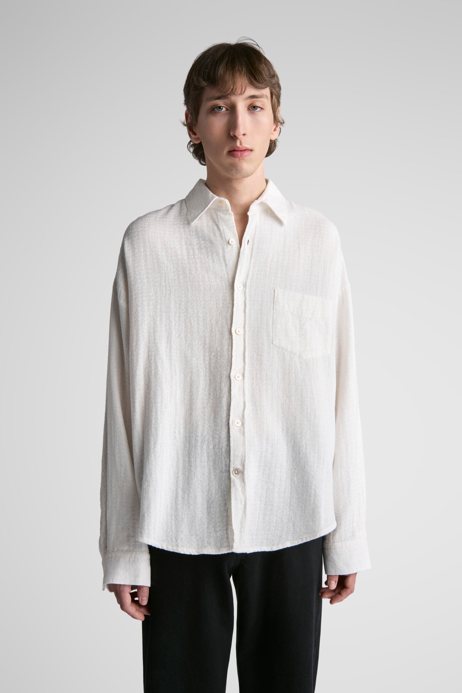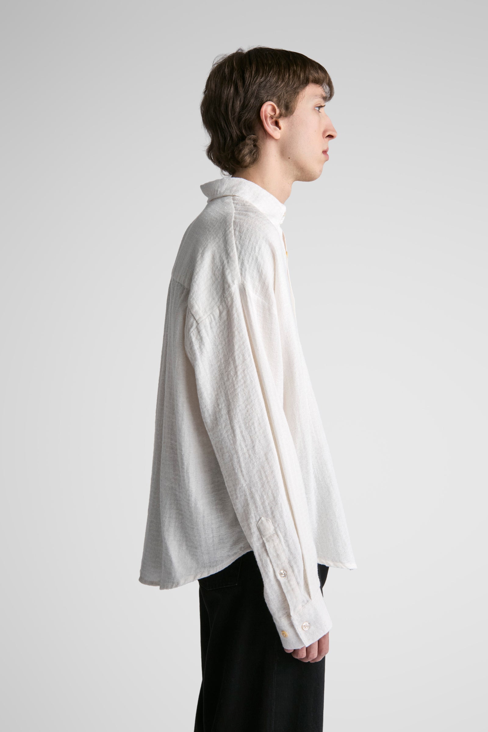 Tim features oversized proportions, dropped shoulders, bigger/wider body, with classic length and a softer curved hem. A shorter version of our unisex big shirt.