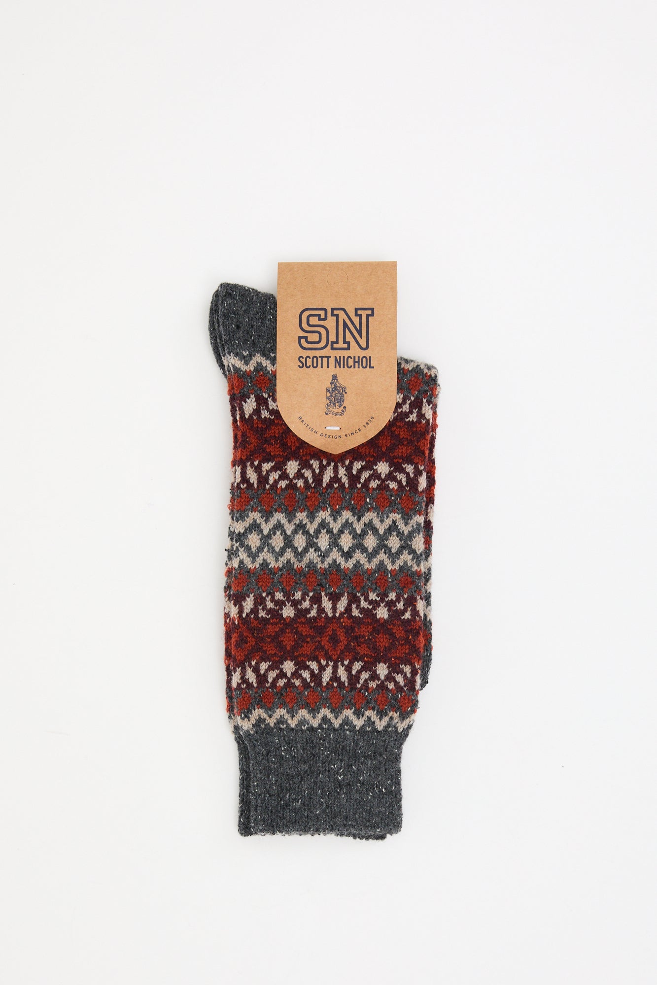 Part of Pantherella's Scott-Nichol collection, Fellcroft is a leisure weight wool sock with a classic fairisle pattern.